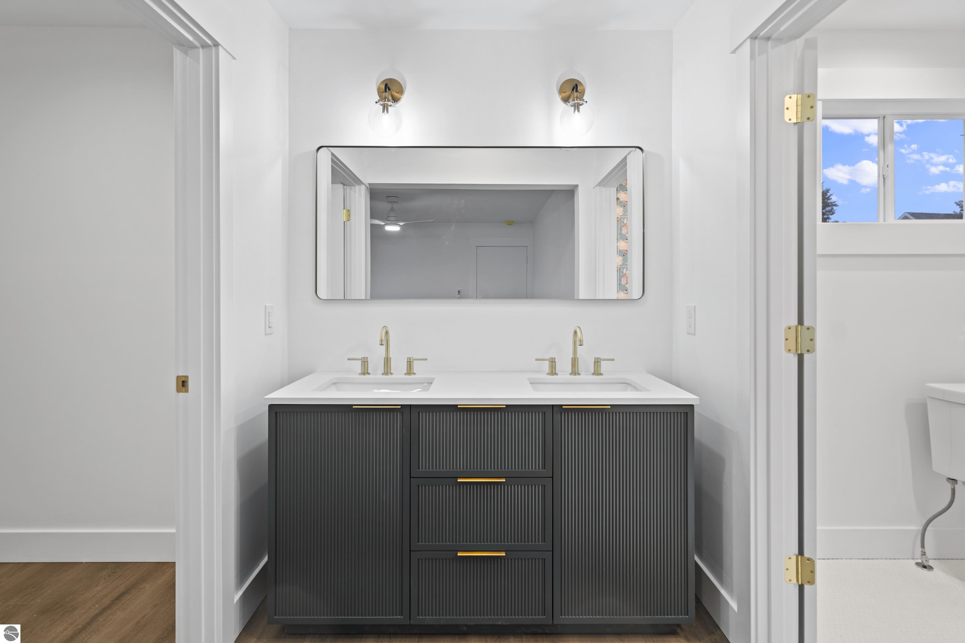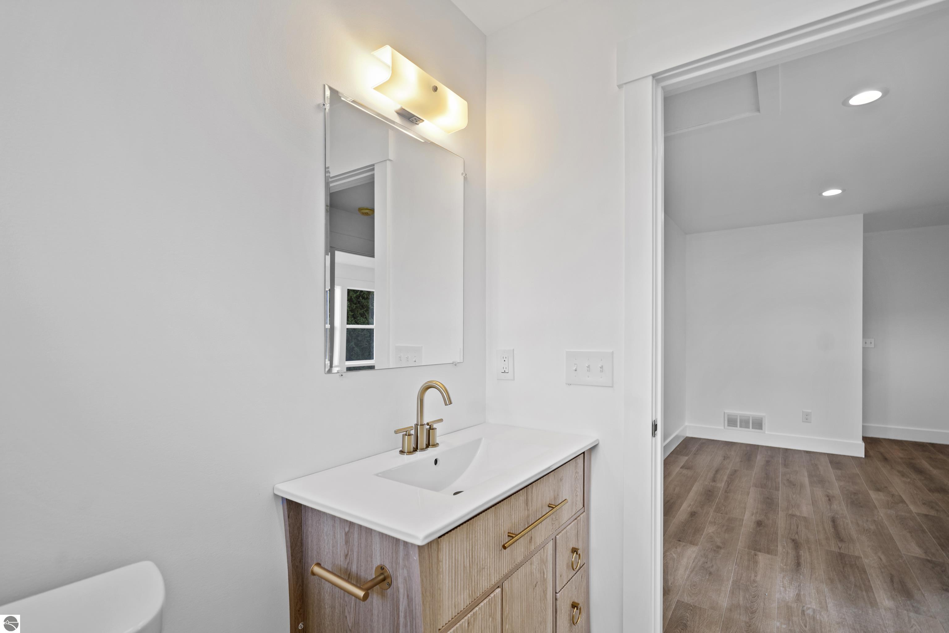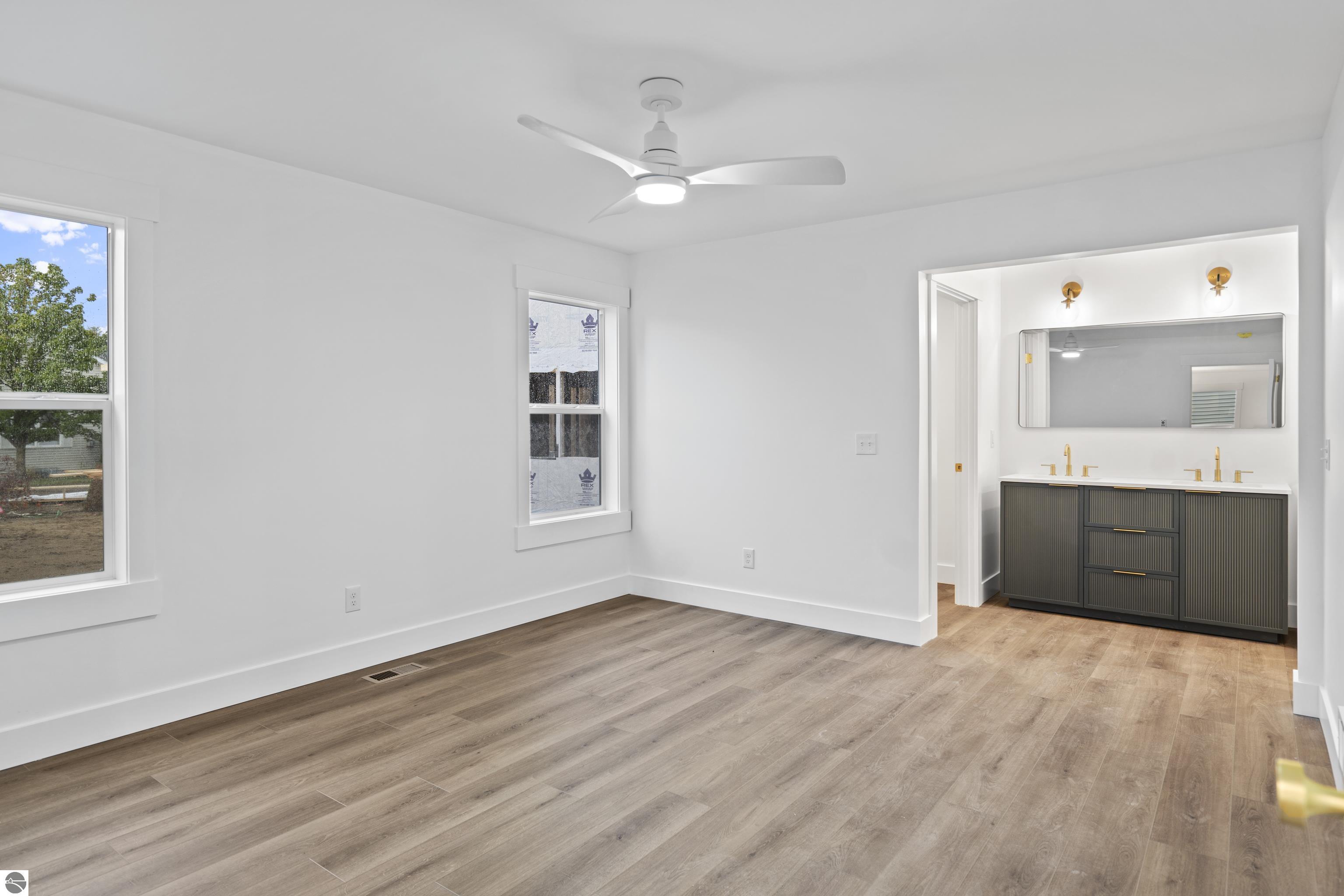 Welcome to thoughtful craftsmanship and modern comfort just minutes from all of Traverse City’s conveniences, tucked within the new Emerald Hills community. This brand-new home stands apart with quality finishes, locally sourced workmanship, as well as smart, efficient design at every turn. The bright, open main-level features a custom kitchen with quartz countertops, custom open shelving, a handcrafted vent hood, panel-wrapped island, and energy-efficient stainless steel appliances. Just off the kitchen (and on the way to the attached, 2 stall garage) sits a convenient mudroom with main-floor laundry and powder room. The private main-floor primary suite offers a double vanity and a large walk-in shower accented with cherry-blossom tile; a sophisticated tribute to the Cherry Capital. Upstairs, you’ll find three bedrooms, including one oversized room that can function beautifully as either a bedroom, bonus/media room, play space, or office. The finished lower level provides wide-open versatility and is ideal for entertaining, a workout space, home office, or guest quarters. Throughout the home, custom window trim and baseboards, closed-cell spray-foam insulation for comfort and efficiency, and quiet, energy-saving ceiling fans reflect a commitment to quality. A porch swing is on the way, ready for quiet mornings or peaceful evenings outdoors. Built by trusted local tradesmen known for craftsmanship, not shortcuts, this home offers thoughtful design and timeless durability. This property is a standout opportunity in a neighborhood of newer builds.