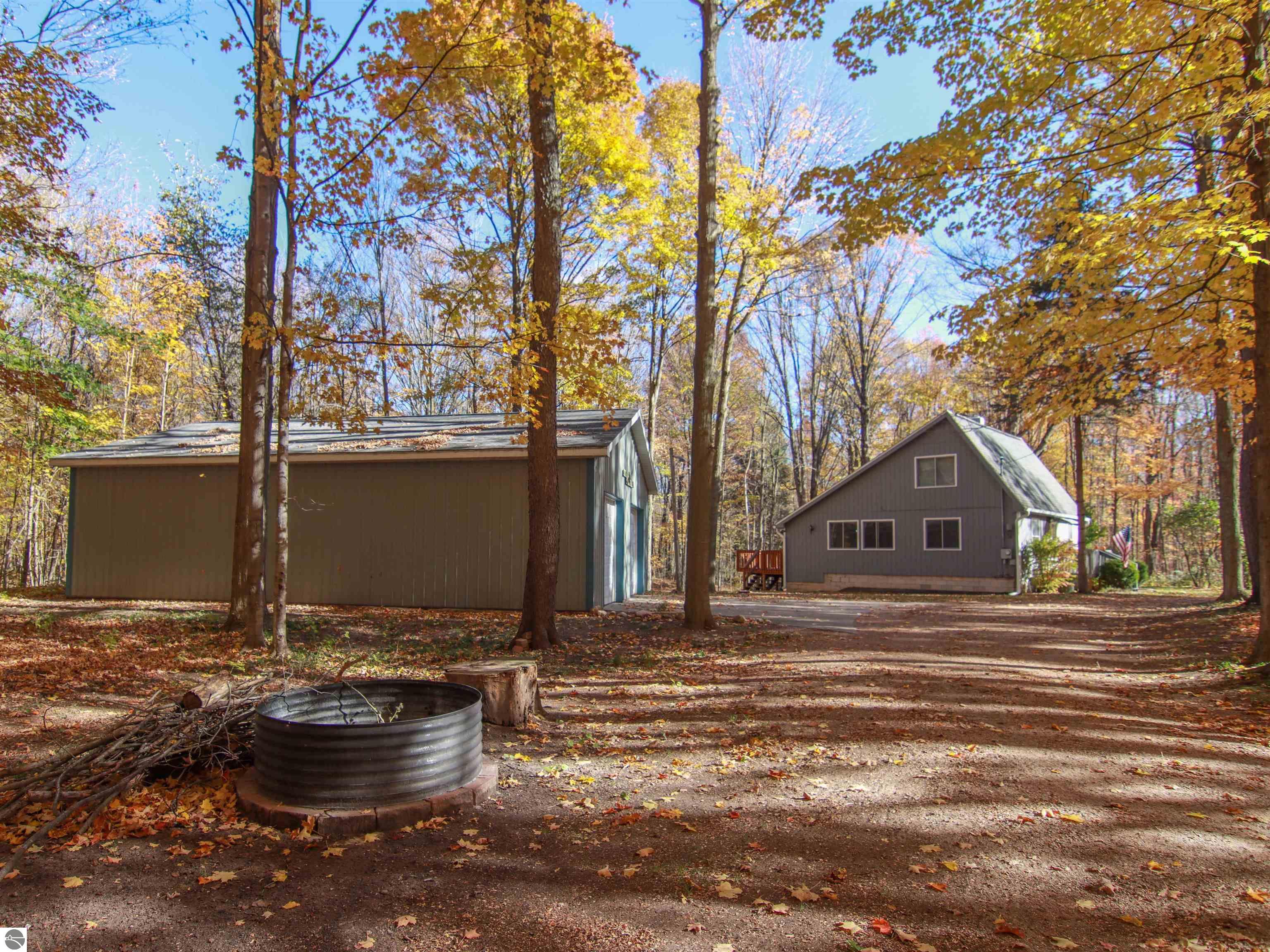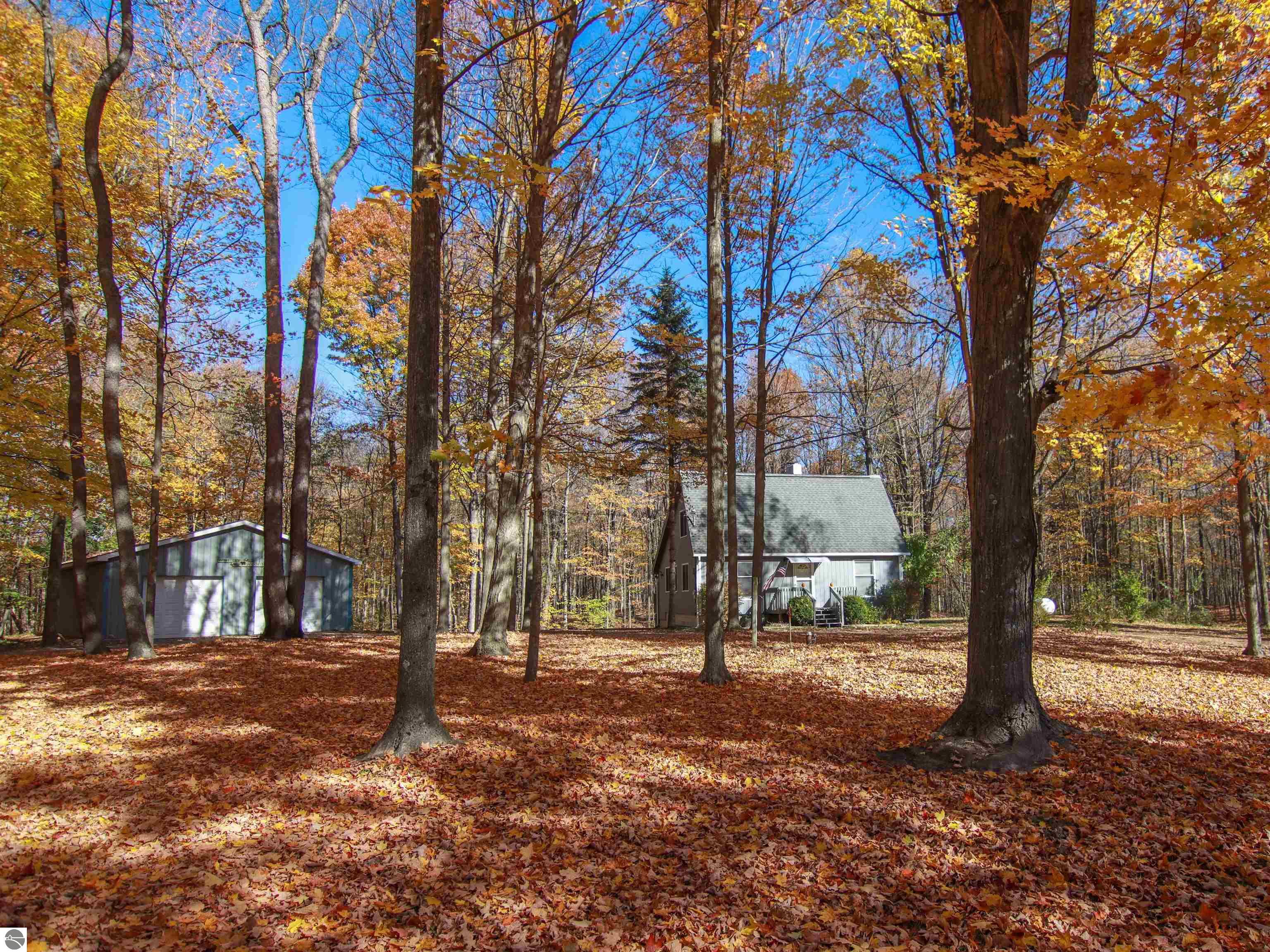 This welcoming 3-bed/2-bath saltbox style home is set on just under 9 acres. Drop your worries at the door and relax in the woodstove-warmed living space, which naturally flows into the sunlit kitchen and dining space. A bedroom and full bathroom complete the main floor. Upstairs includes two bedrooms, a bonus closet/storage space and bathroom. The lower level provides more storage; and the fully finished room could be a media room, hobby area, or another bedroom. The detached 30x40 pole barn offers space for 2 + vehicles and storage. Enjoy views of the wooded rolling hills from the 12x 26 rear deck. Conveniently located—easy access to Traverse City, Manistee, or Cadillac. And Crystal Mountain is just 10 mins away. Make this rare combination of move-in ready, meticulously maintained, charming home yours!