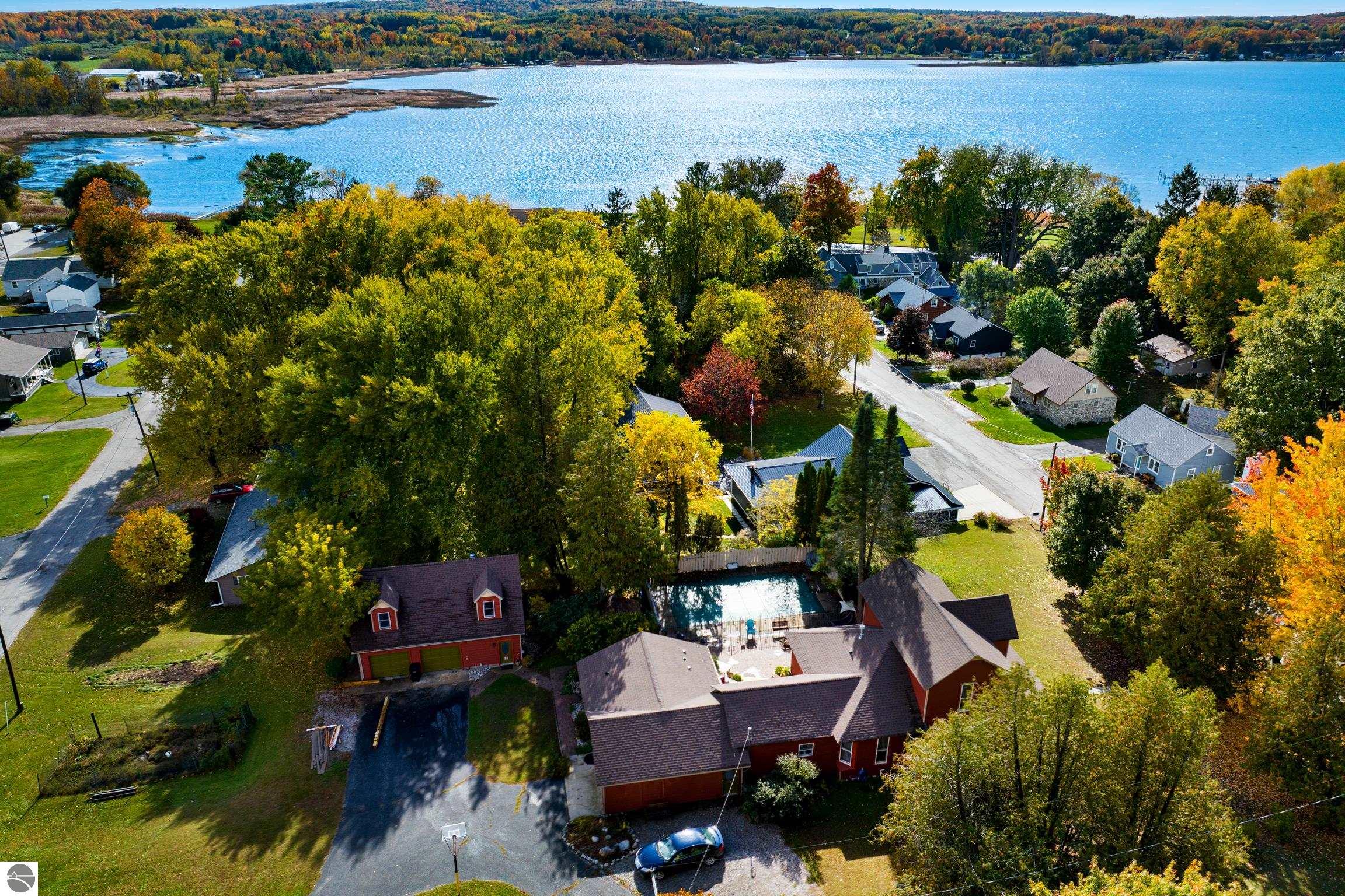 Step into timeless charm with this beautifully preserved Victorian in the heart of Onekama. Set on nearly an acre, this 1880 home radiates character with original wood trim, high ceilings, and the inviting warmth of a bygone era—balanced by modern updates including new siding, roof, deck, and doors, with new windows on order. Currently used as a bed and breakfast, the home comes fully furnished and features 5 bedrooms, 3 baths, and nearly 2,900 square feet of living space. A self-contained 1-bed, 1-bath apartment offers flexibility for a caretaker, guest suite, or rental opportunity. Enjoy a resort-style backyard with an in-ground pool, dry sauna located in the 2-car garage, and serene views of Portage Lake from the porch. The property’s location can’t be beat—walkable to the public beach and village shops, and just a short drive to the Lake Michigan shoreline, Arcadia Dunes, and Manistee. Whether you’re dreaming of continuing its use as a B&B, creating a family retreat, or simply embracing Victorian charm in a lakeside village, this property is truly one of a kind.