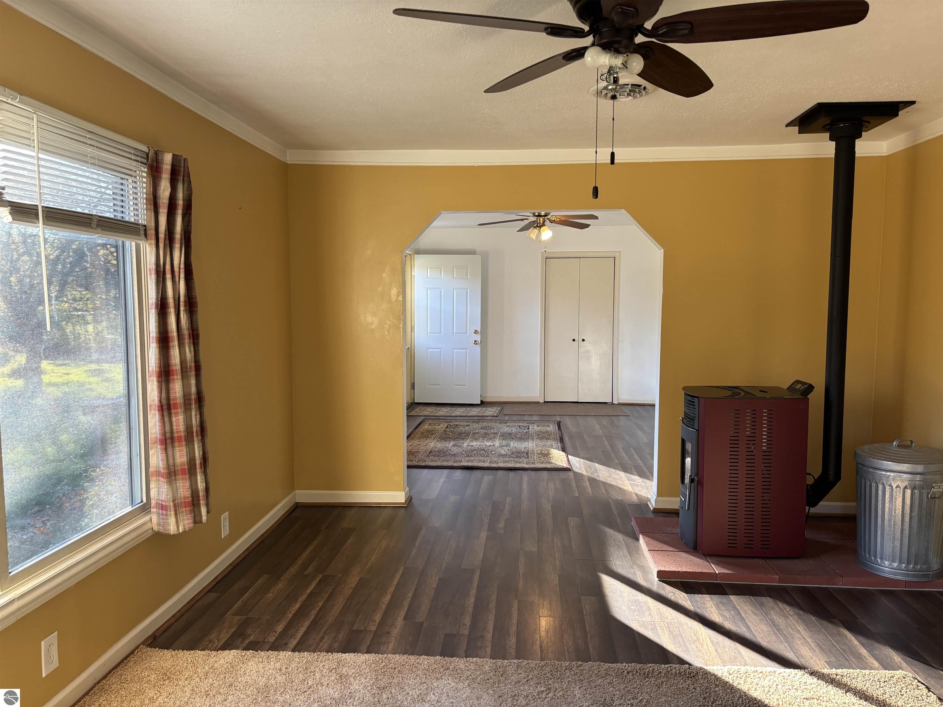 This is a great family home setting on three acres with lots of room for your garden and pets. There are many up dates including plumbing, furnace, hot water heater, water pump, roof, flooring in the master bedroom, kitchen, and hallway, pellet stove, back and front doors, screen outside eaves, all walls and ceilings, new shelves, electrical, new chimney, and a covered porch for your summer grilling. You are only 15 minutes to shopping, schools, hospital, and Lake Huron, but the space and feeling of the country life.