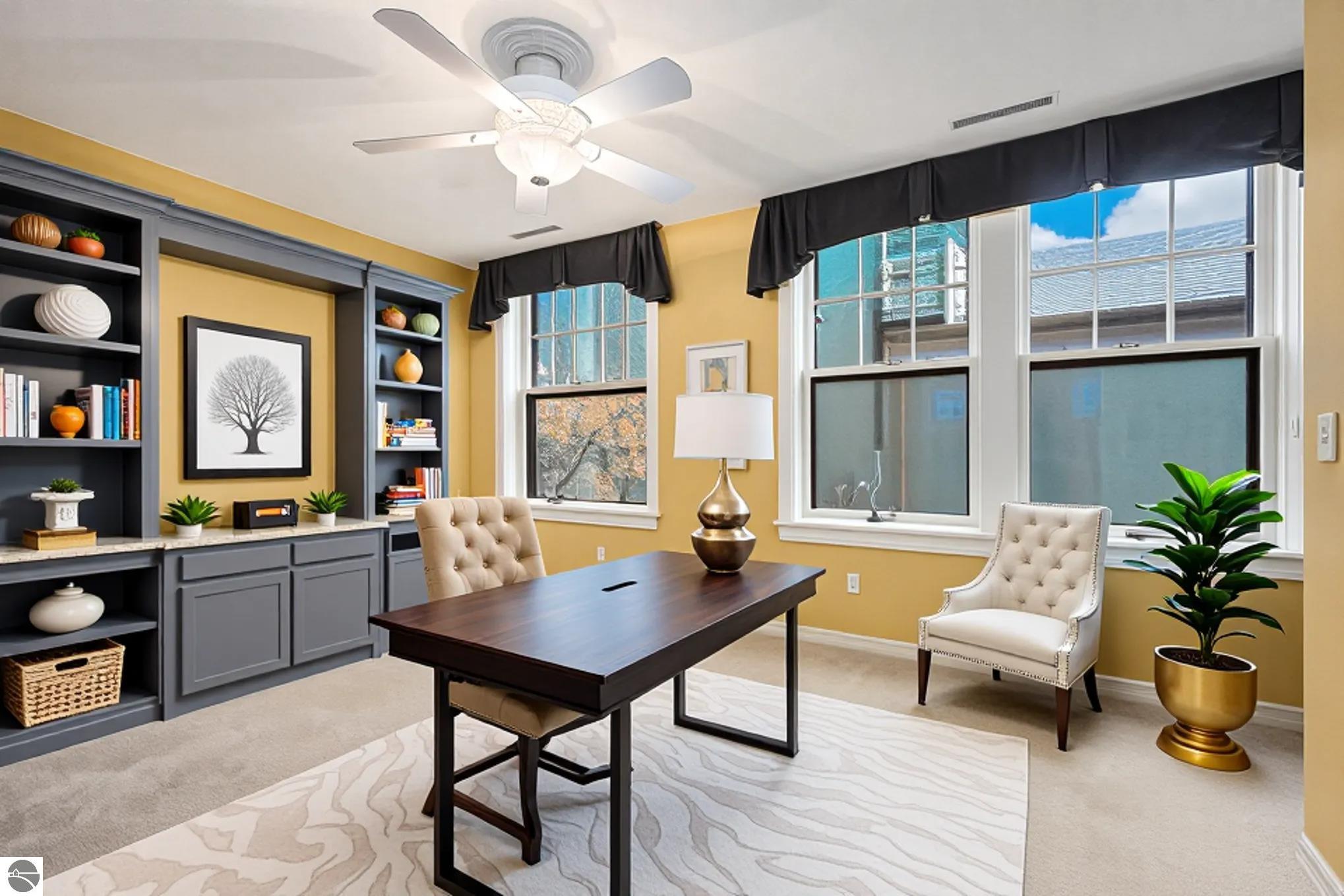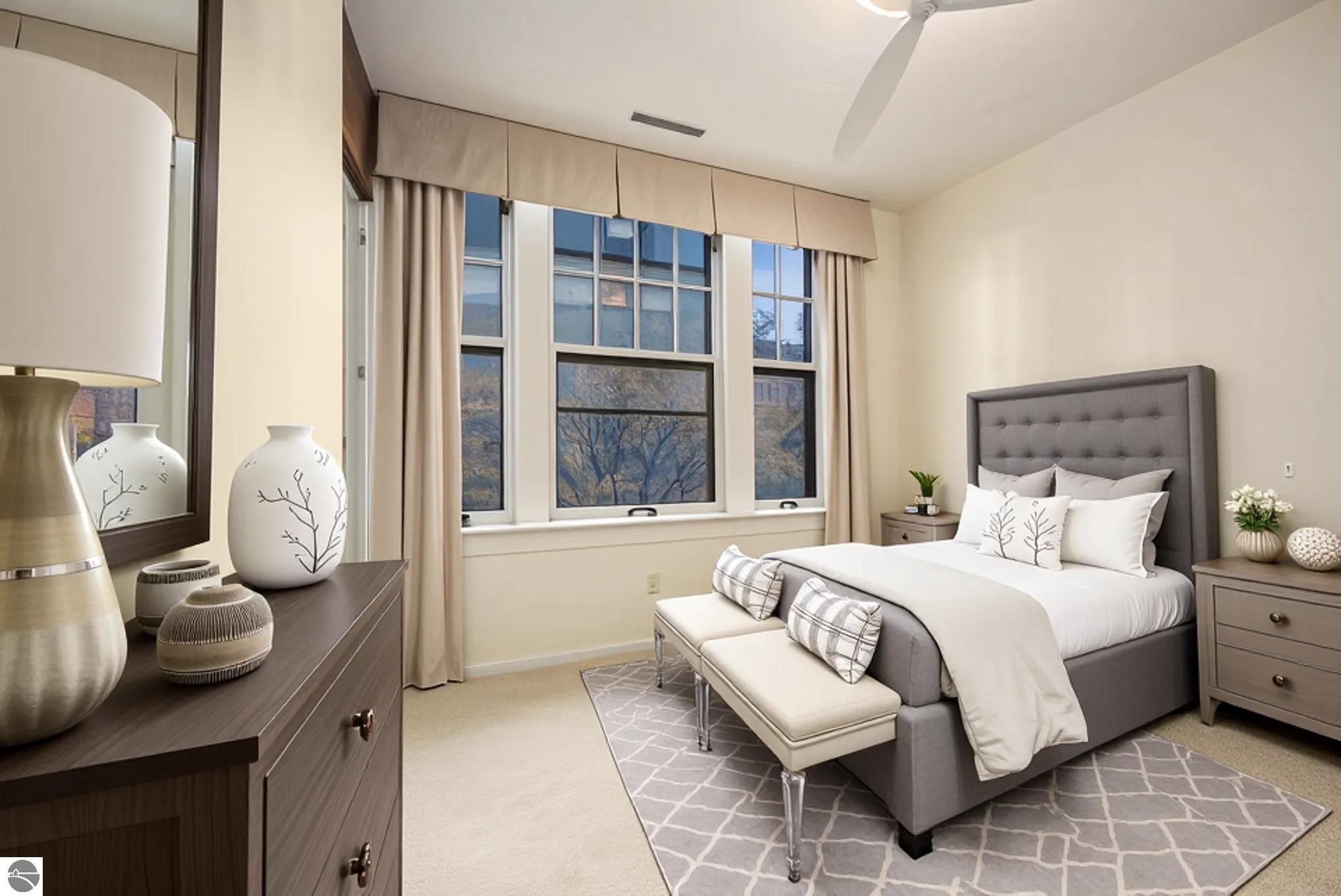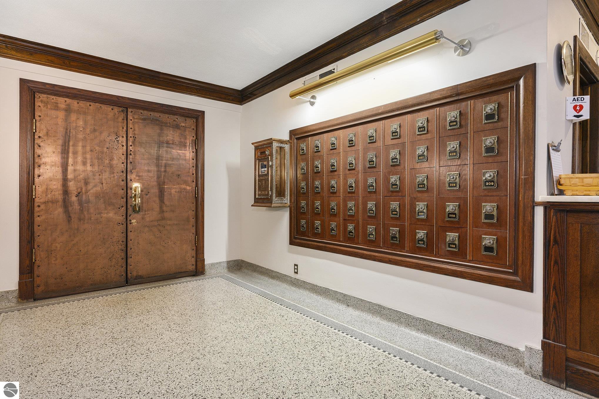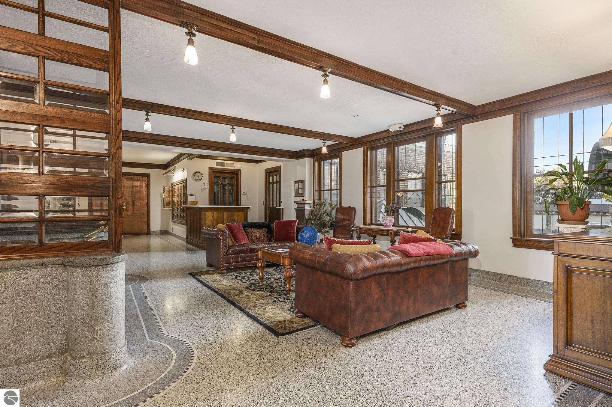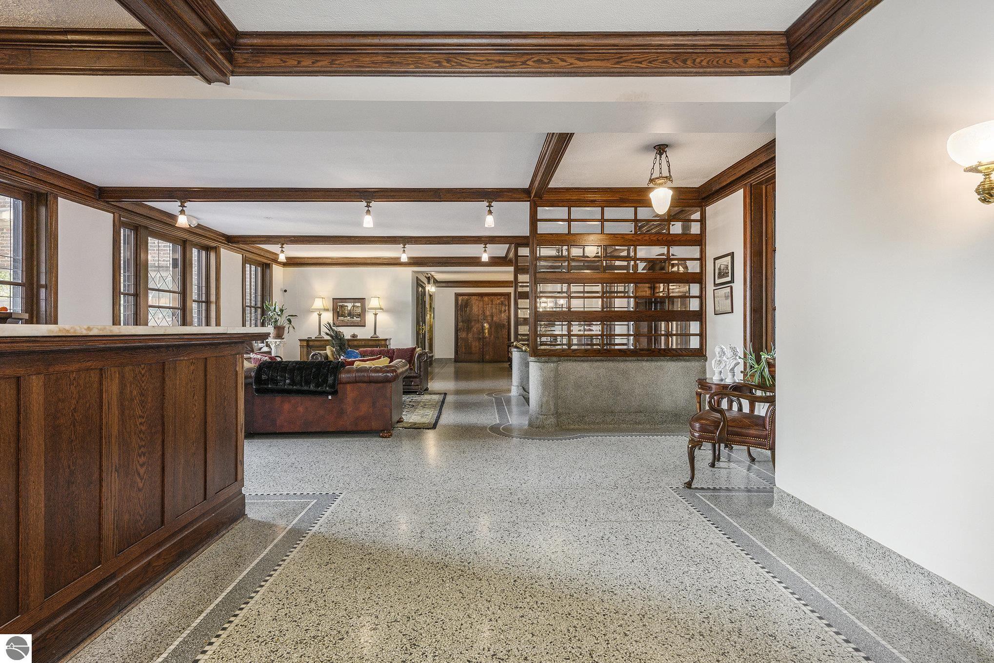 Step into Sumptuous on South Street, where nearly a century of history meets timeless sophistication. Built in 1923, the Marlborough Building is one of downtown Kalamazoo’s architectural gems, blending historic craftsmanship with modern luxury. This 2-bedroom, 2-bath residence is a rare opportunity to live inside a story—beautifully restored and thoughtfully updated. From the moment you enter through the grand historic double doors, the building transports you to another era. The inlaid terrazzo floors, original brass mailboxes, and Art Deco elevator are striking reminders of the building’s storied past, setting the tone for the elegance that continues throughout the home. Inside, warm engineered hardwood floors flow through an airy open living space. The chef-inspired kitchen is a statement in style and function, featuring cherry cabinetry, granite countertops, bar seating, a wine rack, stainless steel appliances, and a designer butler’s pantry by Abode. The living room’s gas fireplace, framed by custom tile, adds a perfect touch of cozy sophistication. In the primary suite, you’ll find dual customized closets, a peaceful seating area, and a luxurious en-suite bath with laundry. Hunter Douglas window treatments and carefully selected finishes elevate every corner. Outside, residents enjoy a rooftop patio, landscaped lawn, and all the perks of being just steps from Bronson Park, Kalamazoo Institute of Arts, beloved breweries, and downtown’s vibrant energy. Sumptuous on South Street isn’t just a condo — it’s a front-row seat to Kalamazoo’s history, wrapped in modern comfort and unforgettable style.