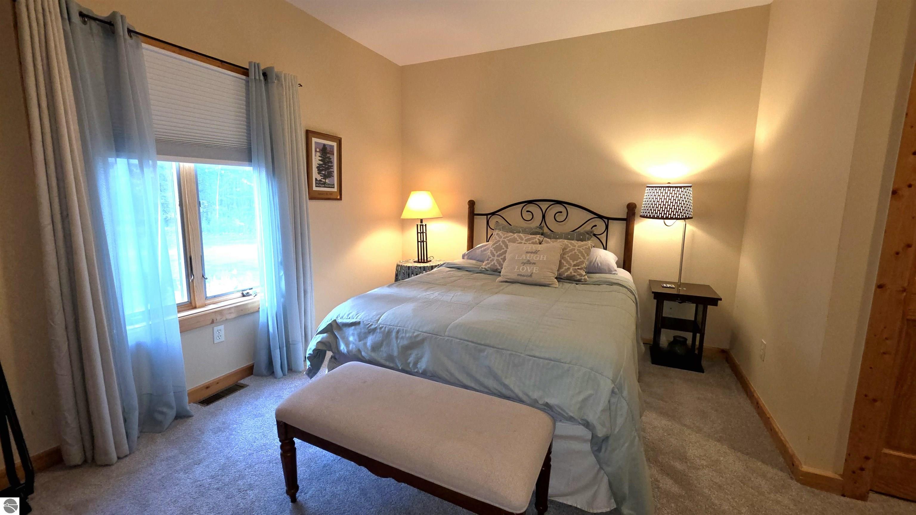 Tranquil views of the first fairway at Schuss Golf Course, paired with picturesque winter scenes of Schuss Mountain. This end unit features 2 bedrooms, 2 bathrooms, a space-saving kitchen banquette, custom built-ins, a gas fireplace, a generously sized covered porch and outdoor storage. New furnace, washer, and carpet plus sold with furnishings and outdoor furniture. Short term rental and owner pet friendly.