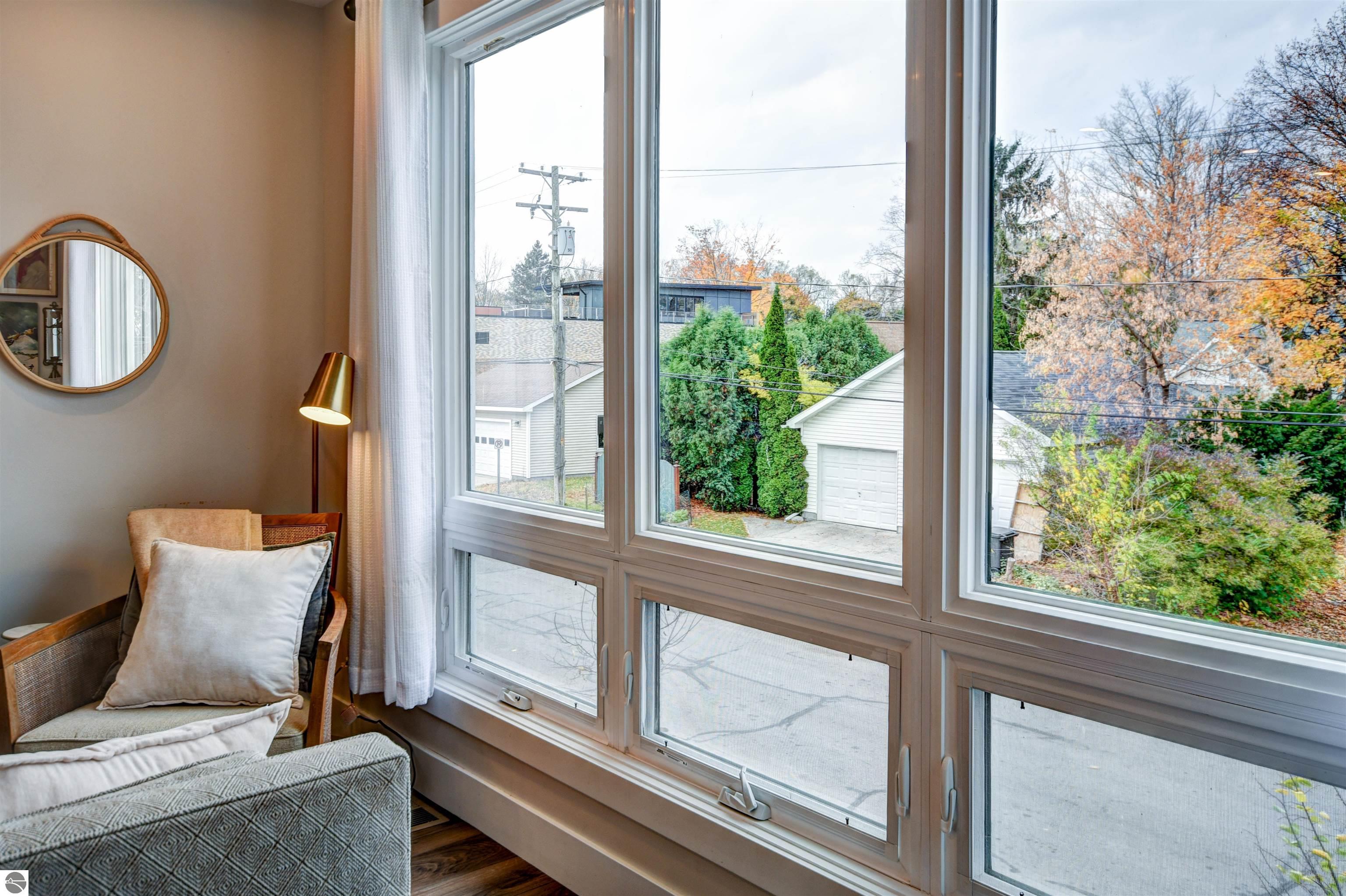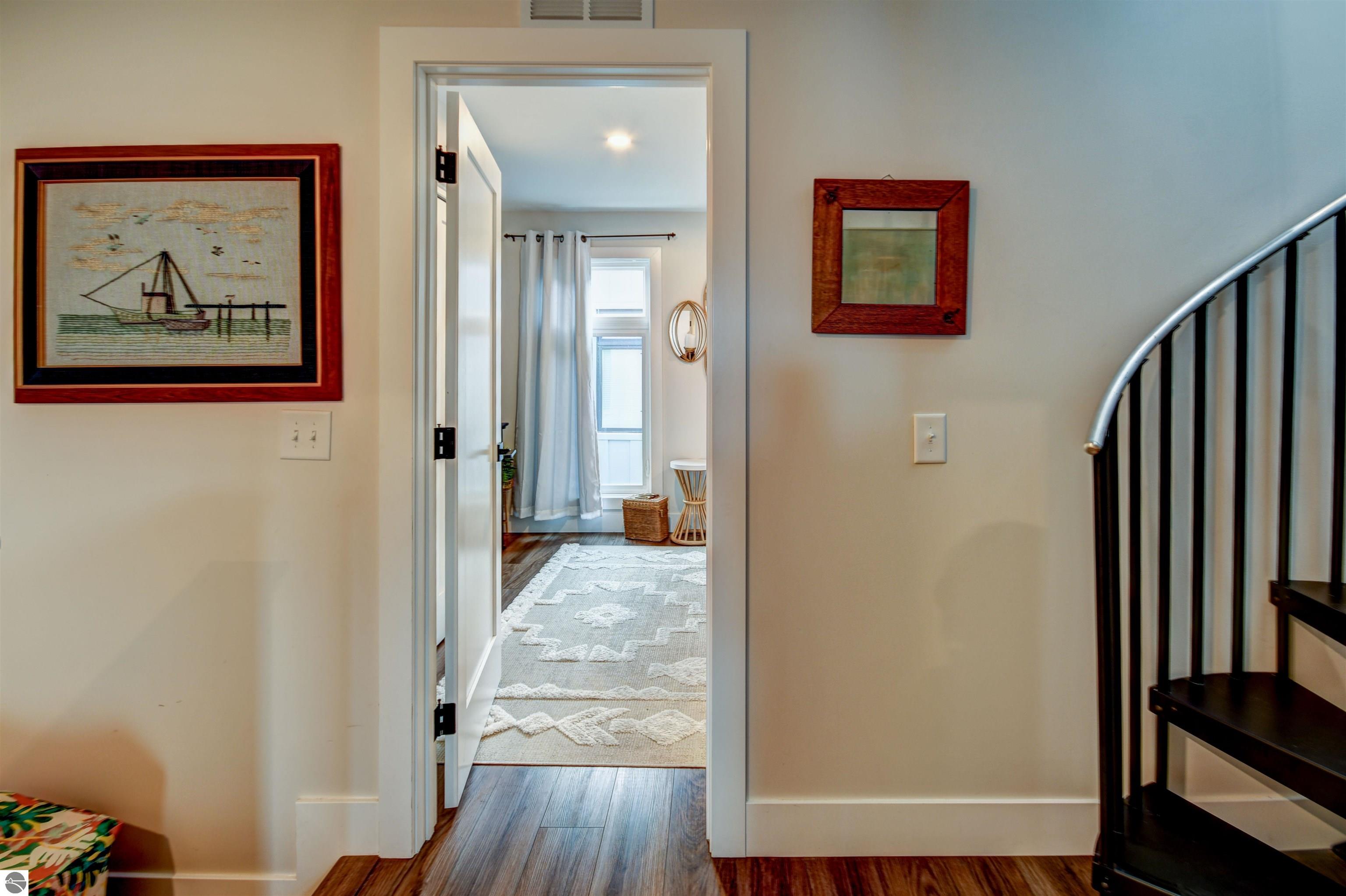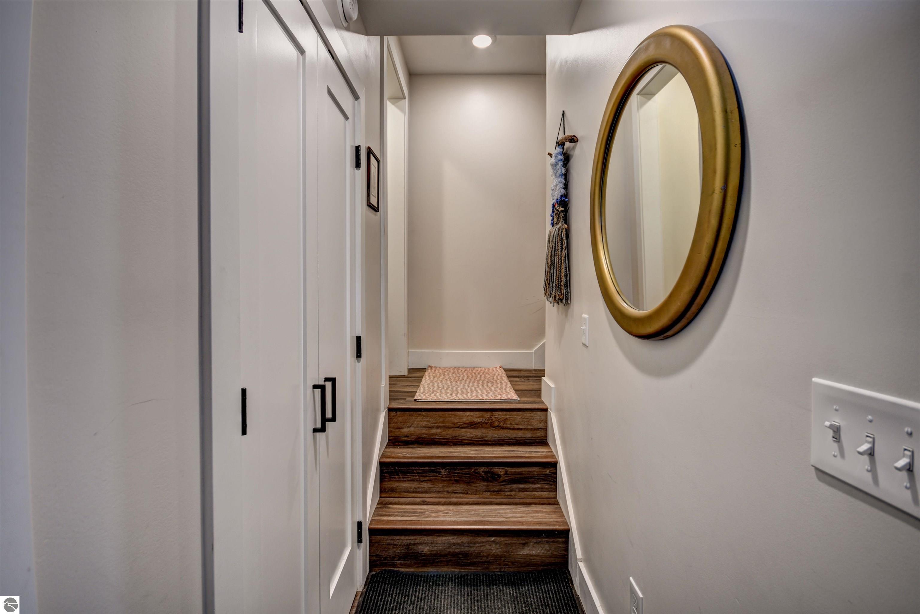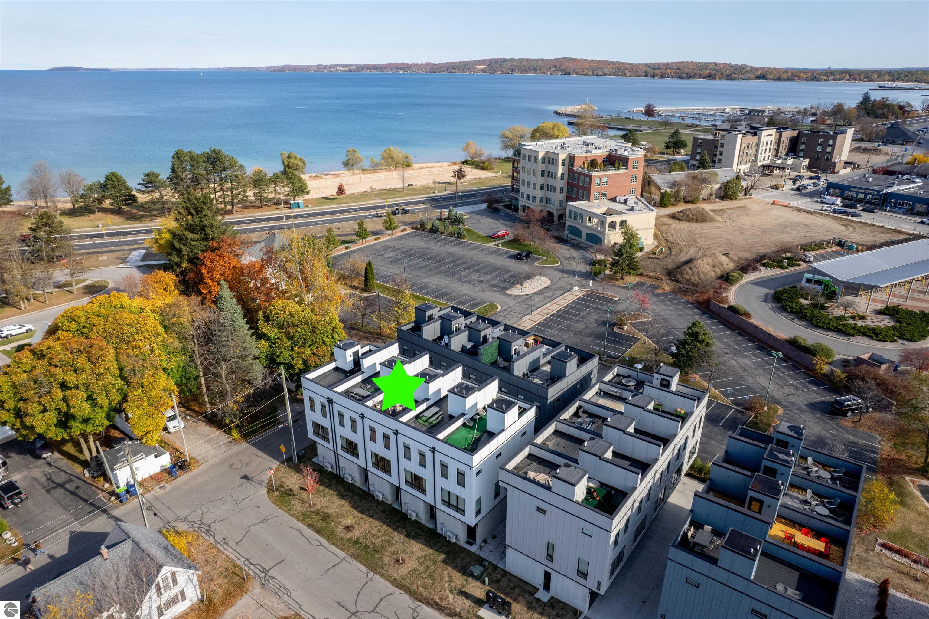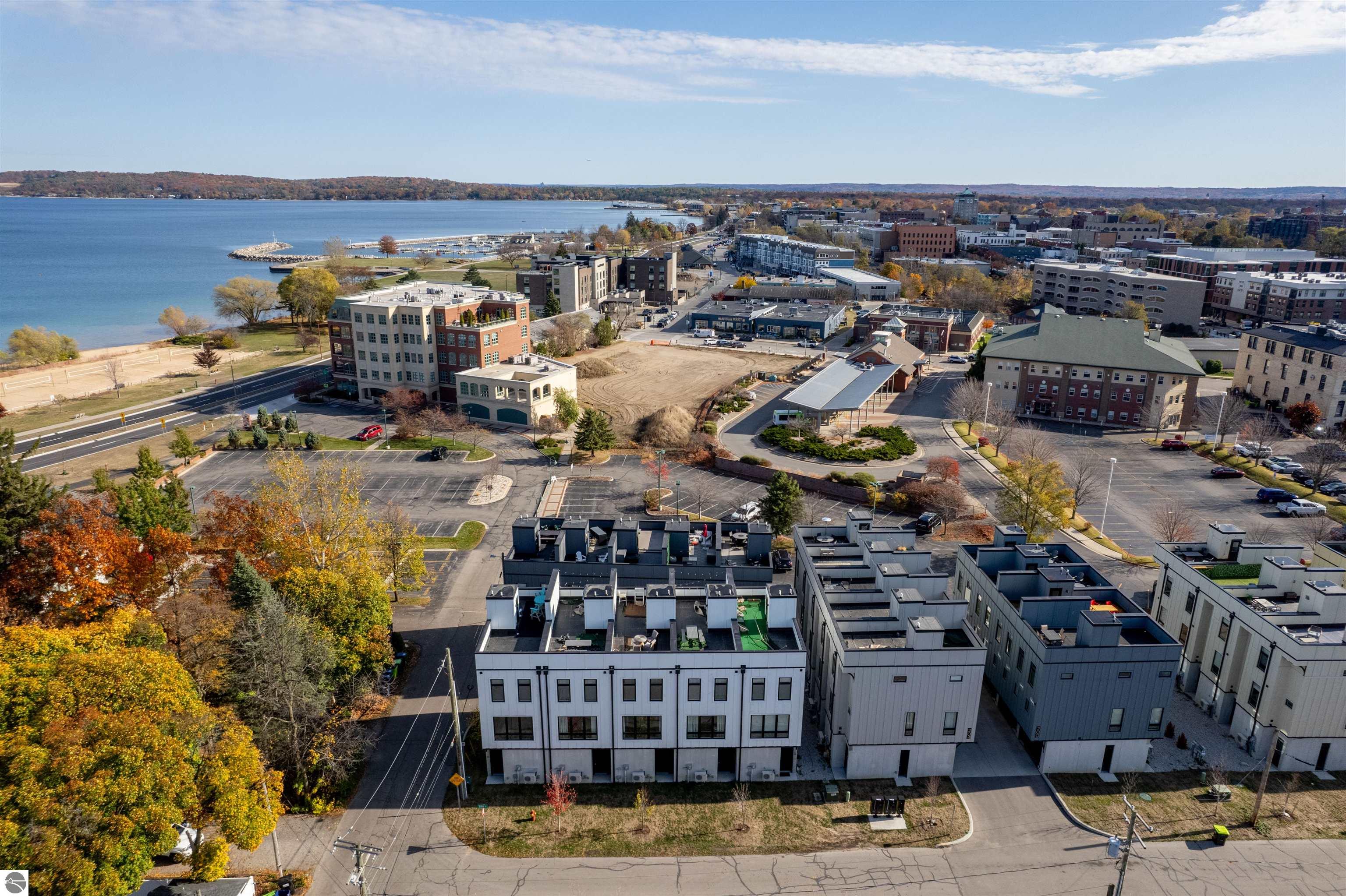 Step into luxury and convenience with this stunning, tastefully furnished, turn-key condo nestled in the heart of downtown Traverse City. Currently an active short-term rental including single overnight stays, it comes fully equipped and furnished, ready for immediate occupancy or rental income. This exquisite residence offers 2BR/2BA of beautifully styled living space, all designed to cater to your comfort and lifestyle needs. The layout which extends over 3 floors, seamlessly connects the entry from either your private garage or from a street-side entrance up to the main floor with an efficient kitchen, inviting living area with elegant picture window, bath, and laundry. Proceed upstairs to the bedrooms, full bath, and a spiral staircase leading to your very own rooftop sanctuary where you can elevate your living experience with West Grand Traverse Bay views. This is not just a home but a vantage point to witness the vibrant pulse of downtown Traverse City. One of the standout features of this prime property is its allowance for overnight rentals. Its central location and top-notch amenities have made it a favorite among tourists, ensuring a steady stream of guests eager to experience all that Traverse City has to offer. Whether you’re looking for a permanent residence, a seasonal retreat, or an investment opportunity, this condo offers unparalleled versatility. Don’t miss your chance to own a piece of downtown Traverse City’s finest living – where every detail has been meticulously curated for your ultimate satisfaction. Click on virtual tour link for an incredibly realistic view of the interior.