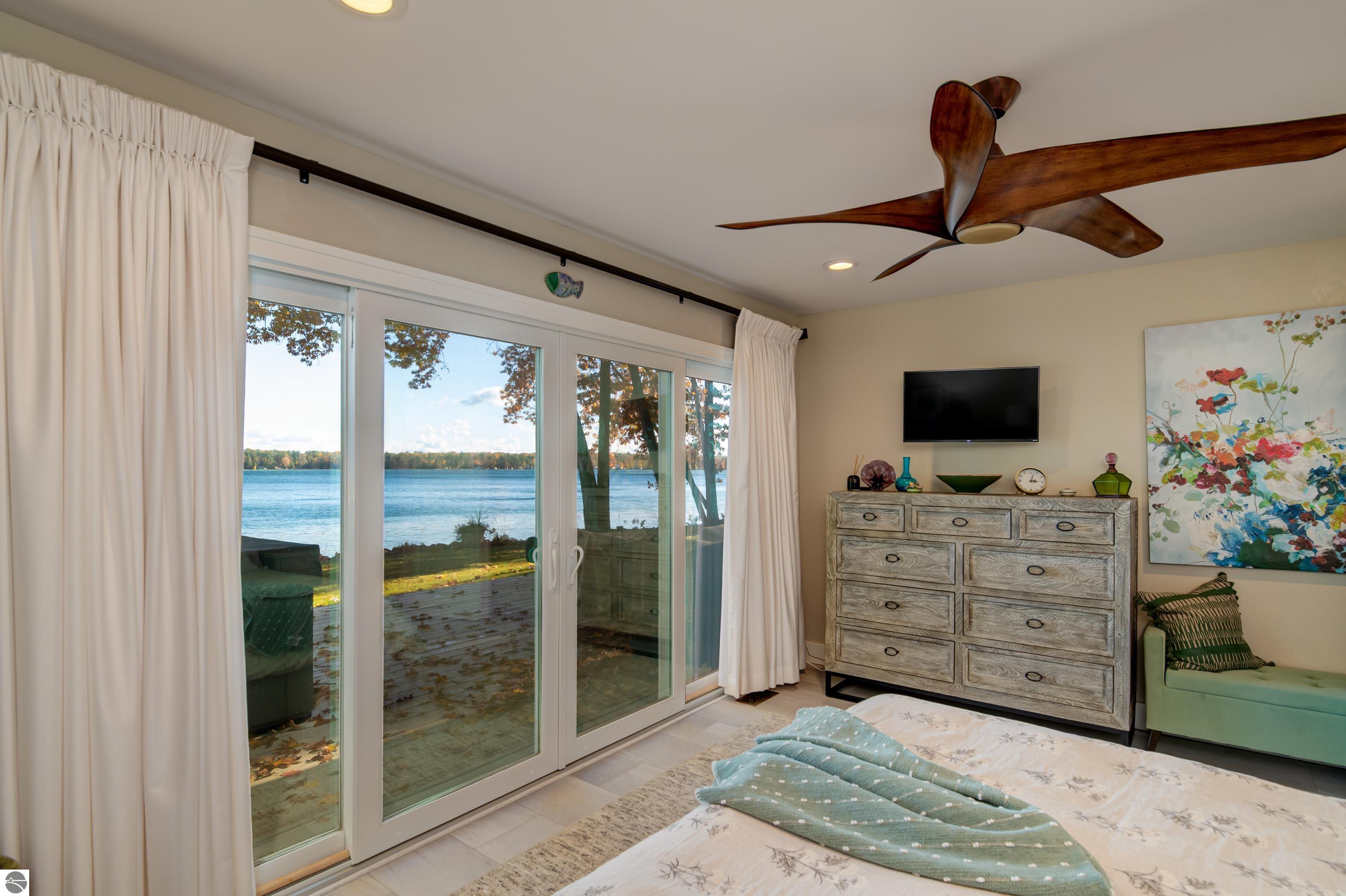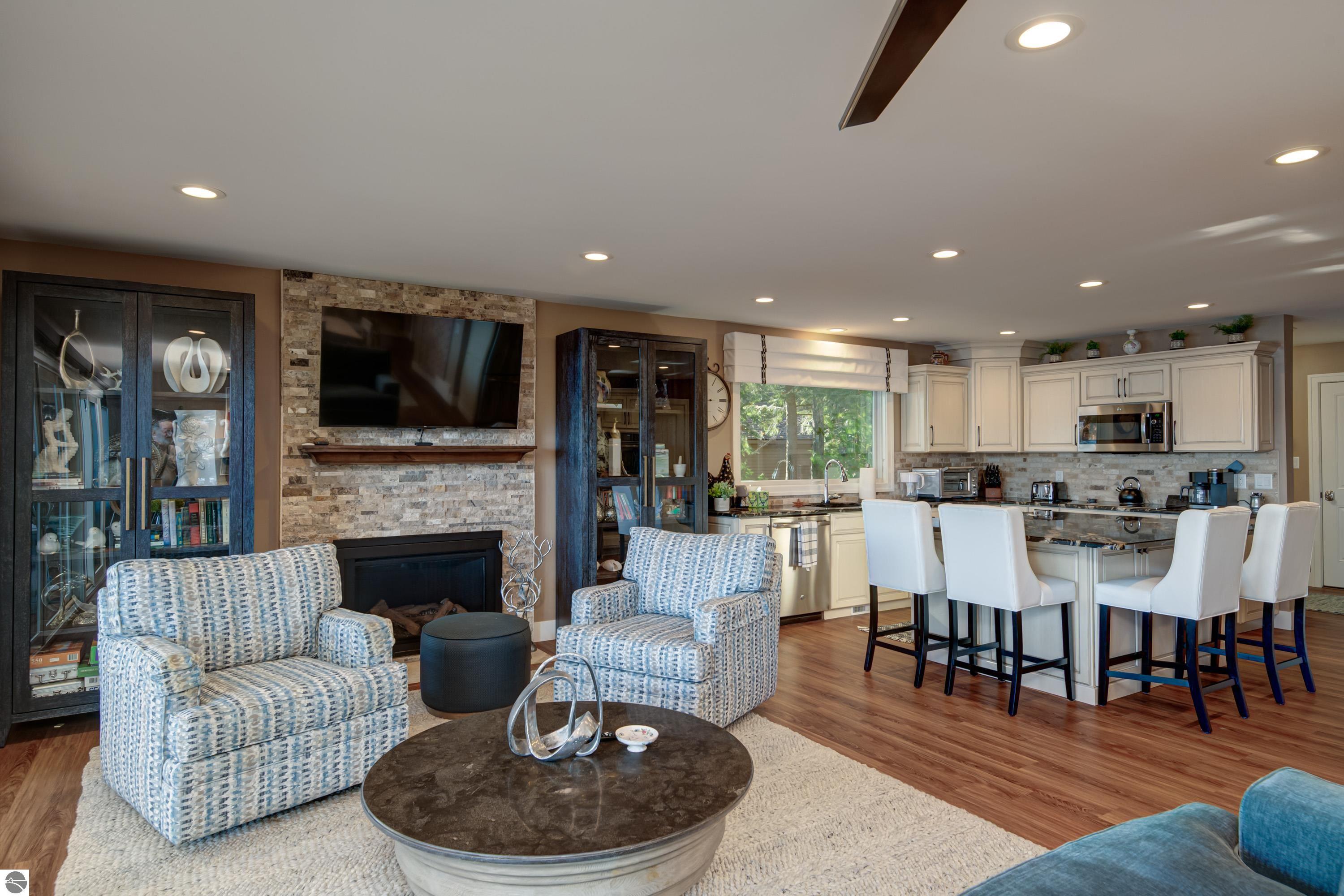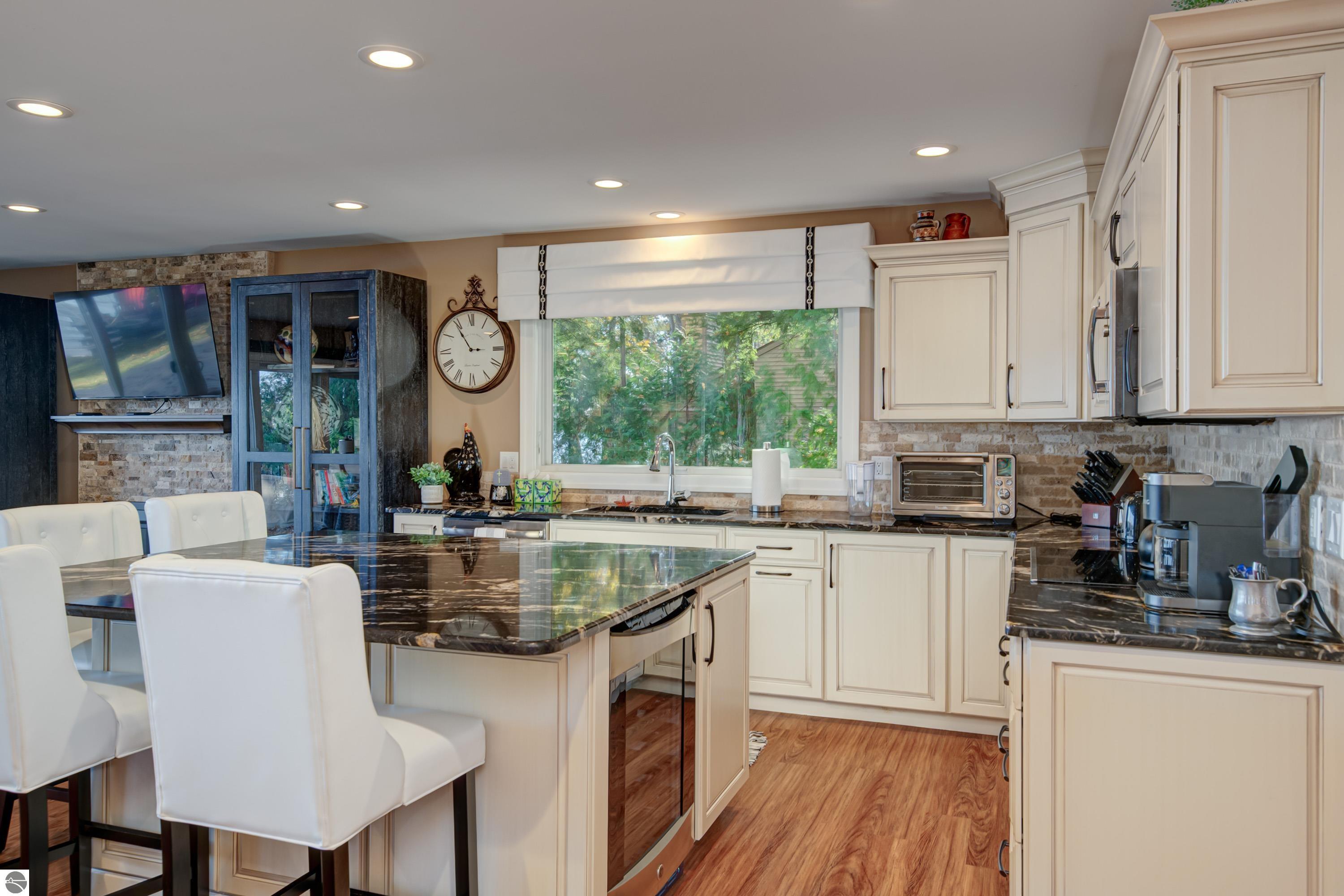 Direct waterfront very well maintained three bedroom Ranch on Birch Lake. Open layout with fantastic views of the waterfront from the majority of the home. The kitchen is spacious with granite counter tops that are designed for stools at the counter. Soft close cabinets and tasteful appliances. The livingroom has outstanding water views and a natural stone firplace for your cooler evening enjoyment and warmth. The wall of sliders in the livingroom open to the deck and beautifully landscaped lawn complete with hot tub and fire pit area,on the waterside is perferct for entertaining. The sandy beachfront complete with dock offers endless water activities, boating and swimming in the summer and ice fishing in the winter. This is a great location for walking, biking away from traffic, and yet so close to Elk Rapids. The quality throughout and custom decorating of this home shows pride of ownership newly updated. *See complete list in associated documents. This is a move in ready home for year-round living. This home and the surrounding homes have a deed restriction, NO RENTALS ALLOWED. A water test for the entire association was done summer 2025. No problems *THERE IS A VOLUNTARY $100.00 ANNUAL FEE. iT IS USED FOR MOWING OF THE ROADWAY, HOA ASSOCIATED FEES. THE MEETING NOTICE IS PLACED IN YOUR MAILBOX UNTIL AN EMAIL IS PROVIDED.