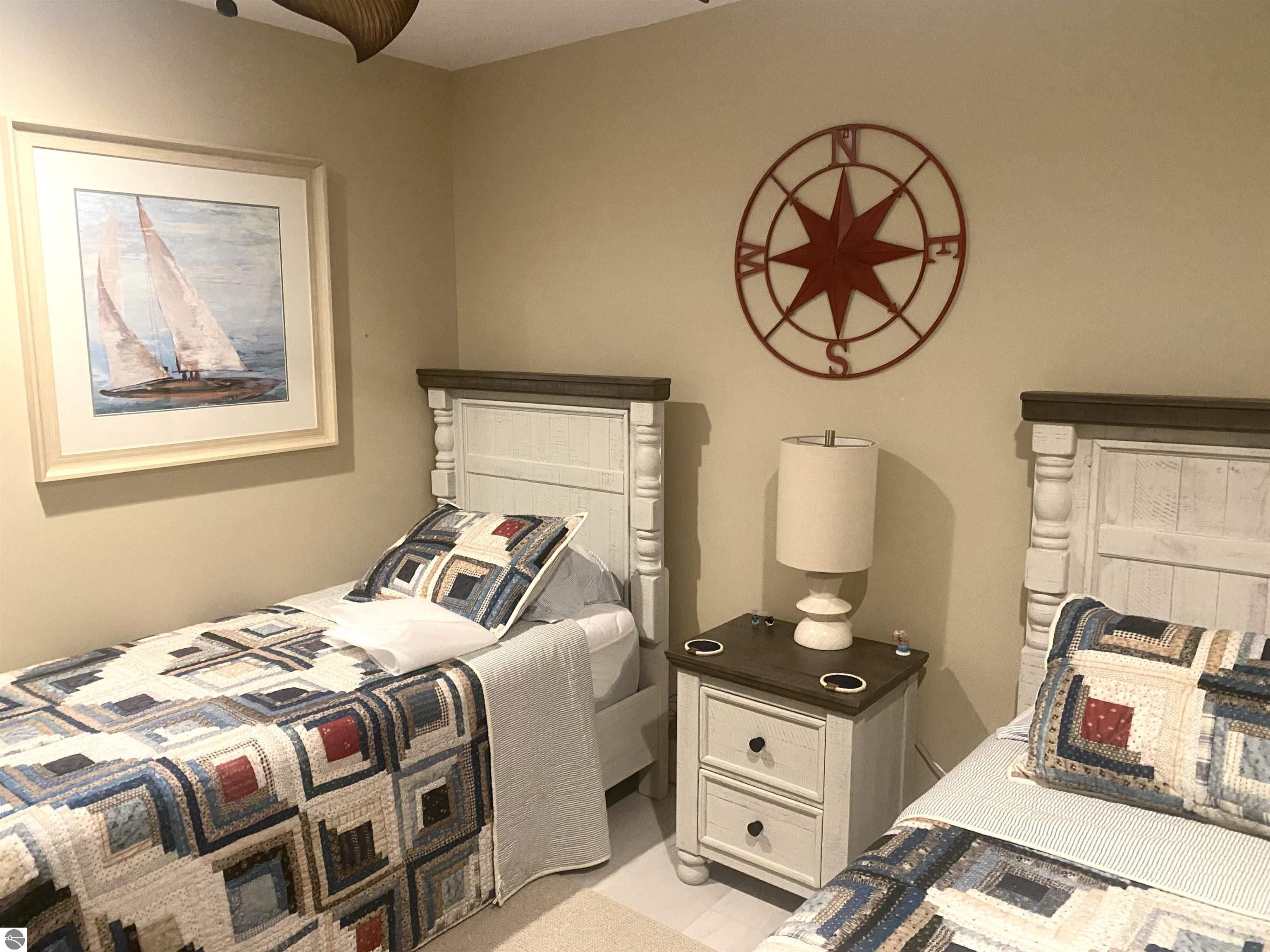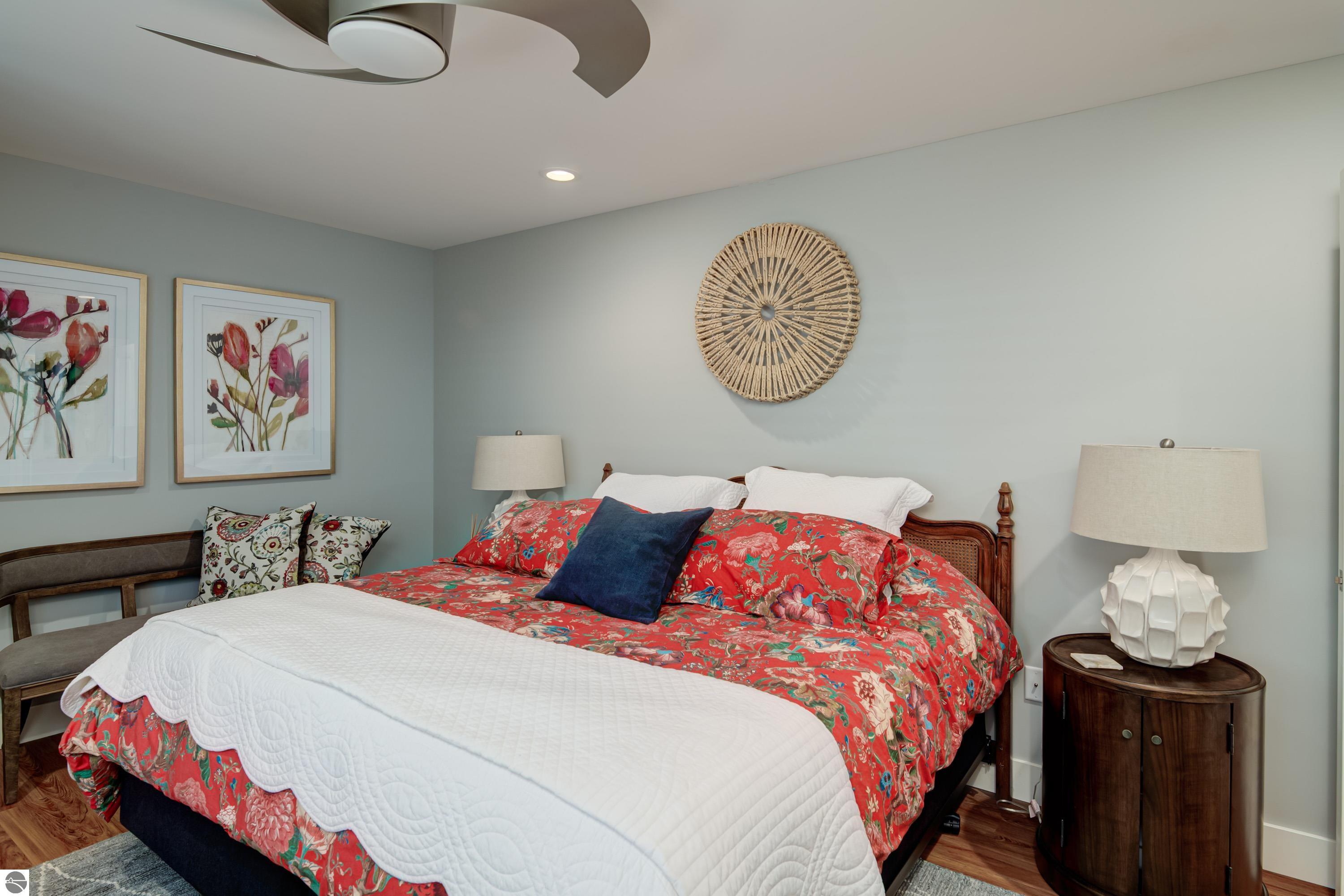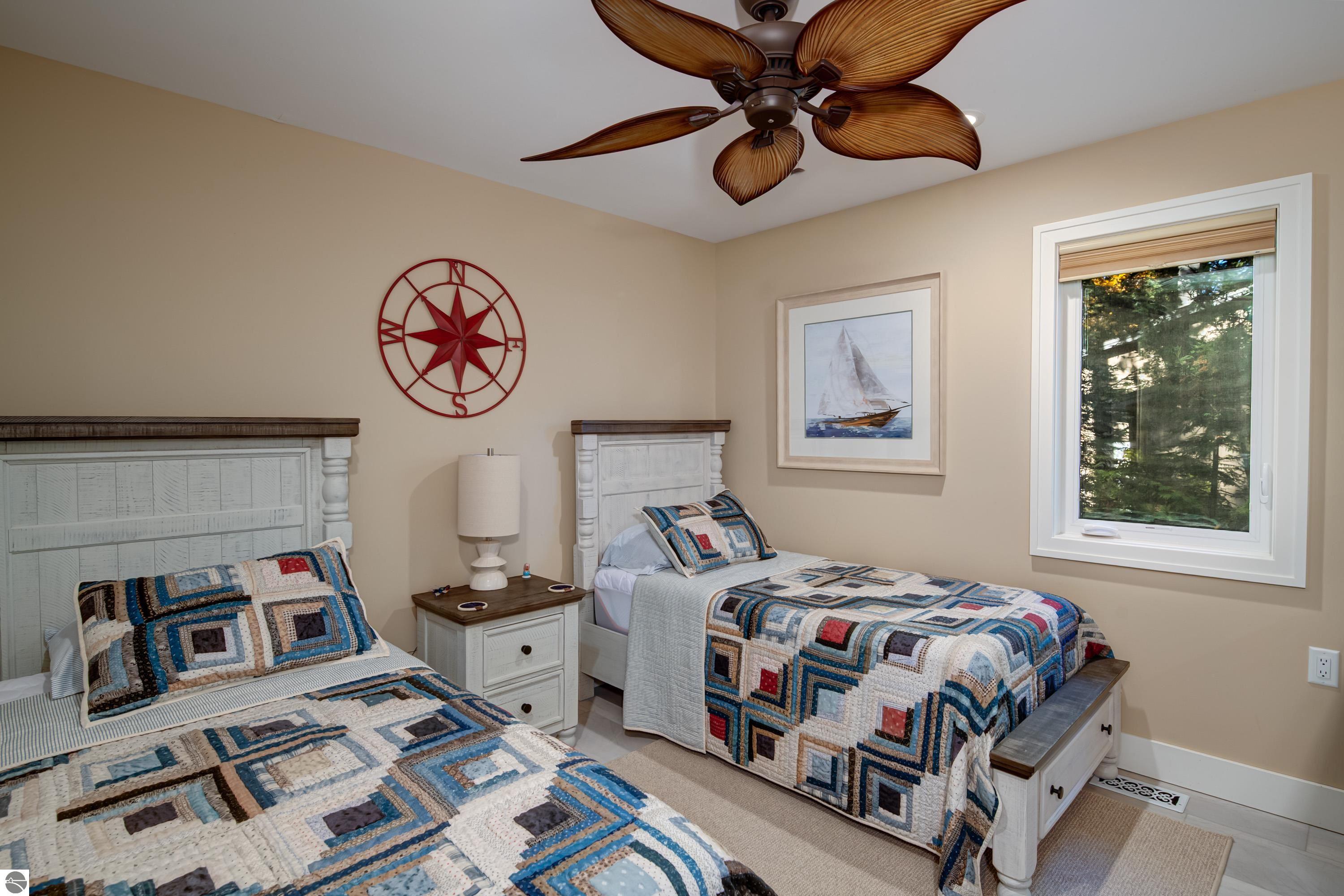 Direct waterfront very well maintained three bedroom Ranch on Birch Lake. Open layout with fantastic views of the waterfront from the majority of the home. The kitchen is spacious with granite counter tops that are designed for stools at the counter. Soft close cabinets and tasteful appliances. The livingroom has outstanding water views and a natural stone firplace for your cooler evening enjoyment and warmth. The wall of sliders in the livingroom open to the deck and beautifully landscaped lawn complete with hot tub and fire pit area,on the waterside is perferct for entertaining. The sandy beachfront complete with dock offers endless water activities, boating and swimming in the summer and ice fishing in the winter. This is a great location for walking, biking away from traffic, and yet so close to Elk Rapids. The quality throughout and custom decorating of this home shows pride of ownership newly updated. *See complete list in associated documents. This is a move in ready home for year-round living. This home and the surrounding homes have a deed restriction, NO RENTALS ALLOWED. A water test for the entire association was done summer 2025. No problems *THERE IS A VOLUNTARY $100.00 ANNUAL FEE. iT IS USED FOR MOWING OF THE ROADWAY, HOA ASSOCIATED FEES. THE MEETING NOTICE IS PLACED IN YOUR MAILBOX UNTIL AN EMAIL IS PROVIDED.