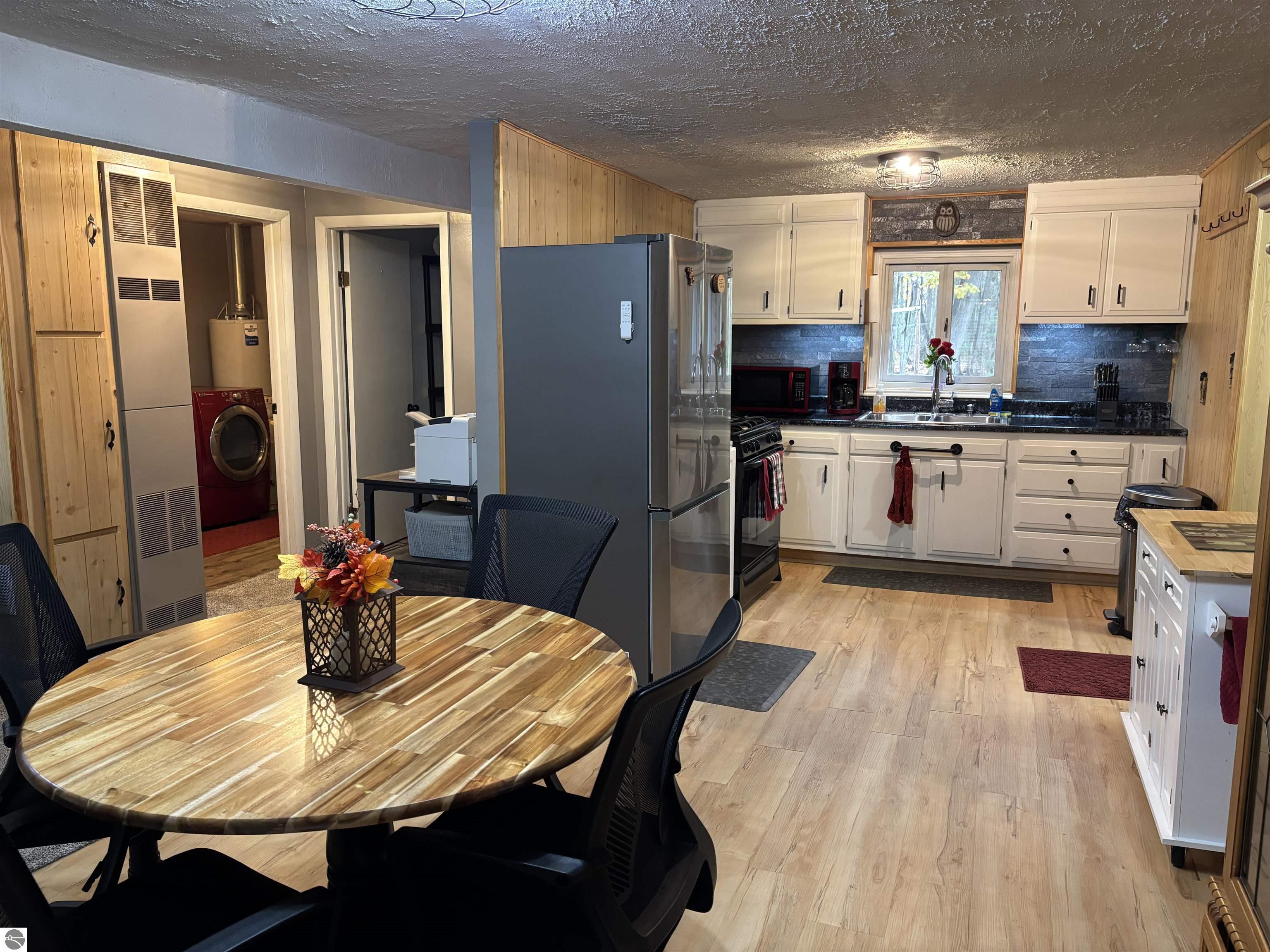 Imagine on a nice summer day relaxing on your covered porch and watching the sun set. That is one of the nice features of this home. It is located in a quiet neighborhood where you can walk without a lot of traffic, and walking distance to Tawas Lake for some of the best fishing in the area. The three car garage with door openers & the 10 x12 shed with electricity gives you plenty of room for lots of storage. The house sits on a a nicely wooded lot where you might see deer, and Turkey wandering around. Some of the upgrades are new back splash in the kitchen, new vanity in the bathroom, and some laminate flooring. Furniture is negotiable.