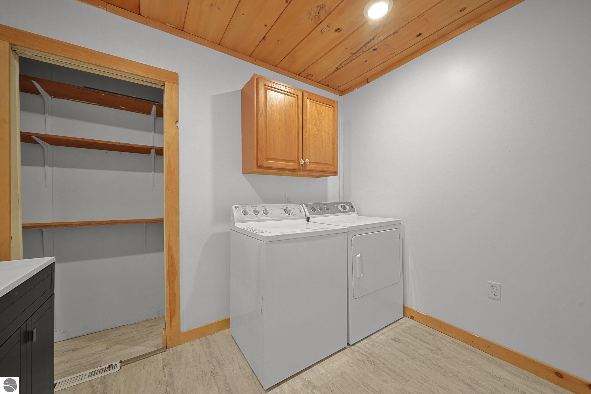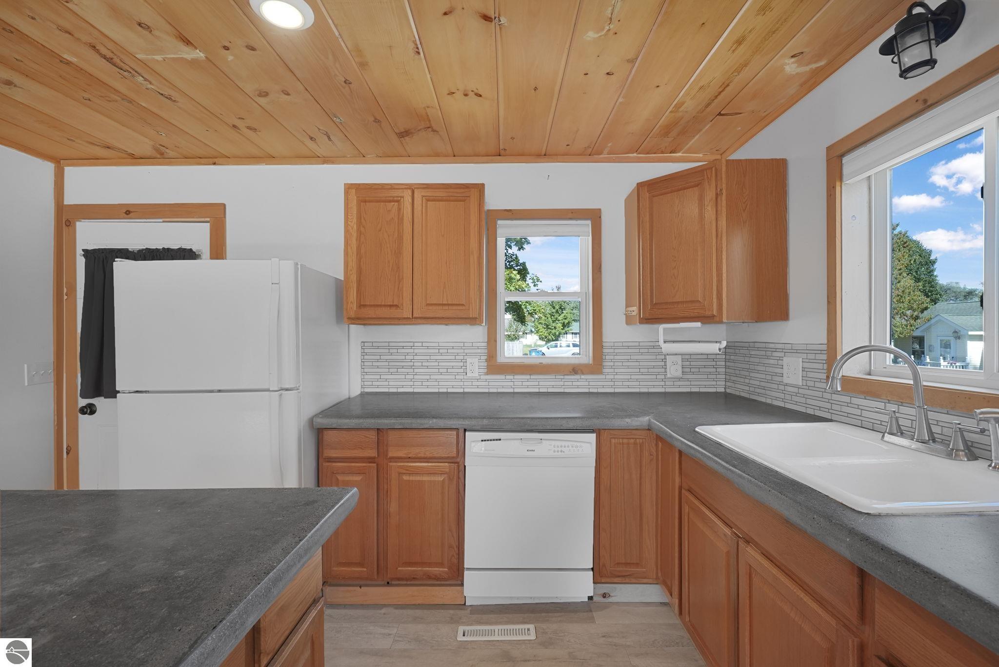 Experience the ease of main floor living in this charming cottage-style home in the heart of Cadillac. With city water, sewer, and natural gas, this property offers the convenience of full city services while maintaining a comfortable neighborhood setting. The open-concept layout blends the living, dining, and kitchen areas, featuring wood plank ceilings, modern flooring, and plenty of natural light. The kitchen offers generous cabinet space, a center island, and updated finishes, making everyday living simple and efficient. Step outside to enjoy a large double-fenced yard, perfect for pets, gardening, or outdoor entertaining. An attached one-car garage provides extra convenience and keeps you out of the elements year-round, while the basement serves as a practical storage area. Located just minutes from downtown Cadillac, Lake Cadillac, and nearby parks, trails, and the boat launch, this home is ideal for anyone seeking a full-time residence, investment property, or seasonal retreat. All appliances and a one year home warranty included in the sale! Schedule your showing today and see all this property has to offer!