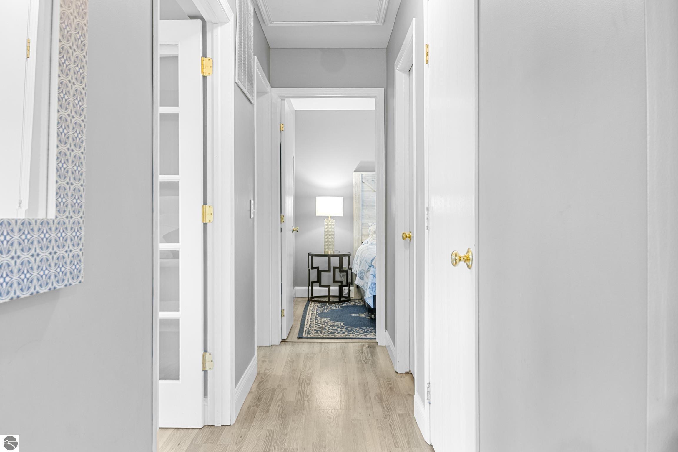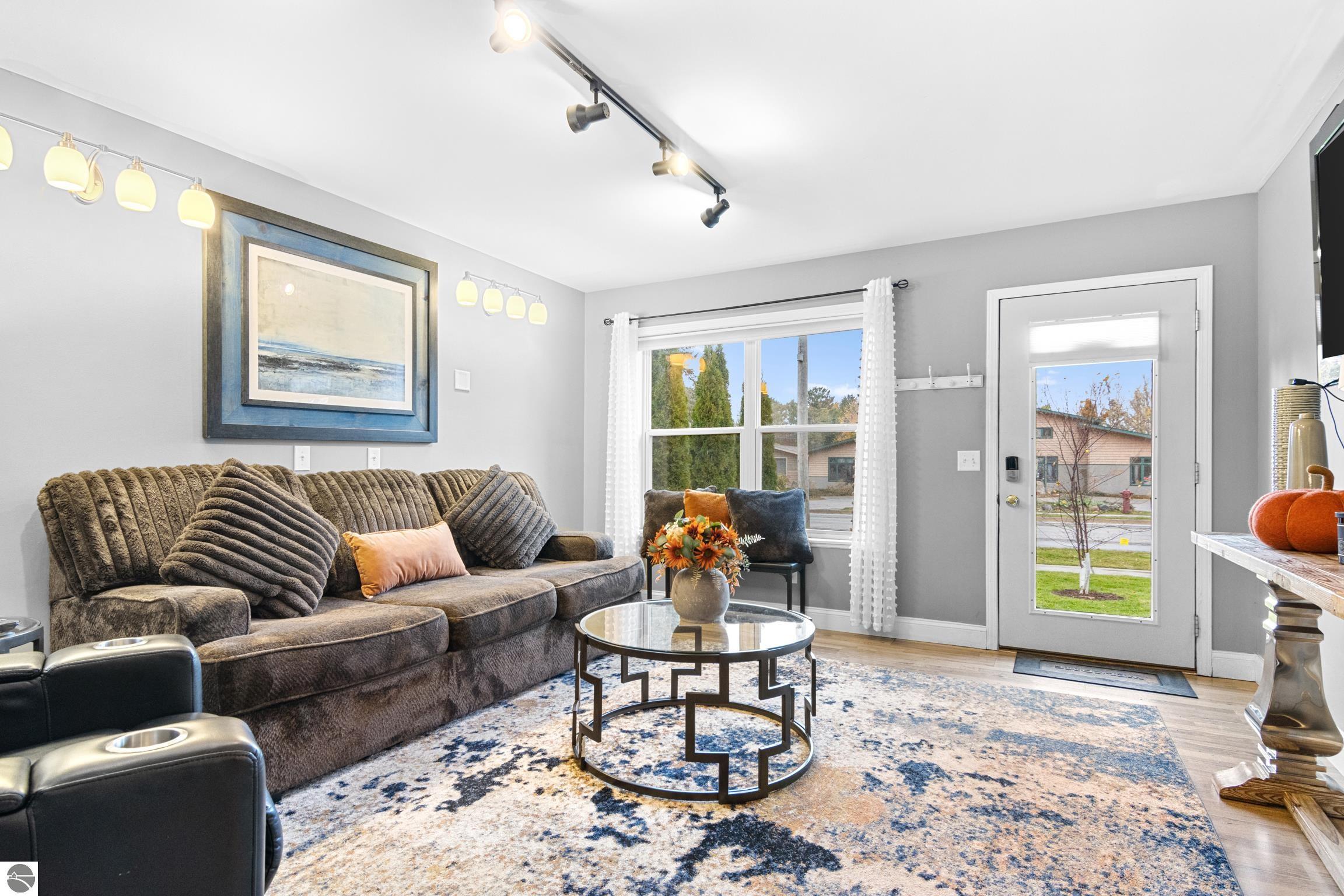 Outstanding investment opportunity in the Village of Elk Rapids. This well-maintained 1,670 sq. ft. multi-use commercial property offers high visibility in a strong traffic corridor with municipal water/sewer, paved parking, and energy-efficient systems, including natural gas forced air heat and central air. it is ideal for office, retail, or a live-work setup, all within walking distance to schools, the grocery store, golf course, and downtown waterfront attractions. The front unit is approximately 1,120 sq. ft. and features 3 bedrooms, 1 bath, and in-unit laundry. It can be used commercially or residentially, creating numerous income strategies for an owner-operator or investor. The back unit is a fully furnished 550 sq. ft. efficiency apartment with 1 bedroom, 3/4 bath, kitchen, and its own washer and dryer. This unit includes an existing short-term rental permit, making it immediately ready for STR income, or it may be used as a long-term rental. Both units can also be reconnected if a future buyer prefers a single-family home layout. Plenty of parking with 10 paved spaces, plus a partially fenced outdoor space in the backyard. The home is both stick-built and BOCA. Two of the bedrooms do not have closets. It has a beautifully landscaped yard with a sprinkler system and drip lines in the flower beds. Proximity to multiple recreation areas adds more appeal: Elk Lake’s Rotary Park and boat launch are just one mile south, Damn Beach and East Bay are a mile west with over 1,100 ft. of sandy shoreline, and Bass Lake is one mile north for fishing and outdoor enjoyment. Live, work, rent, or operate — this versatile investment in a desirable Lake Michigan community checks all the boxes.