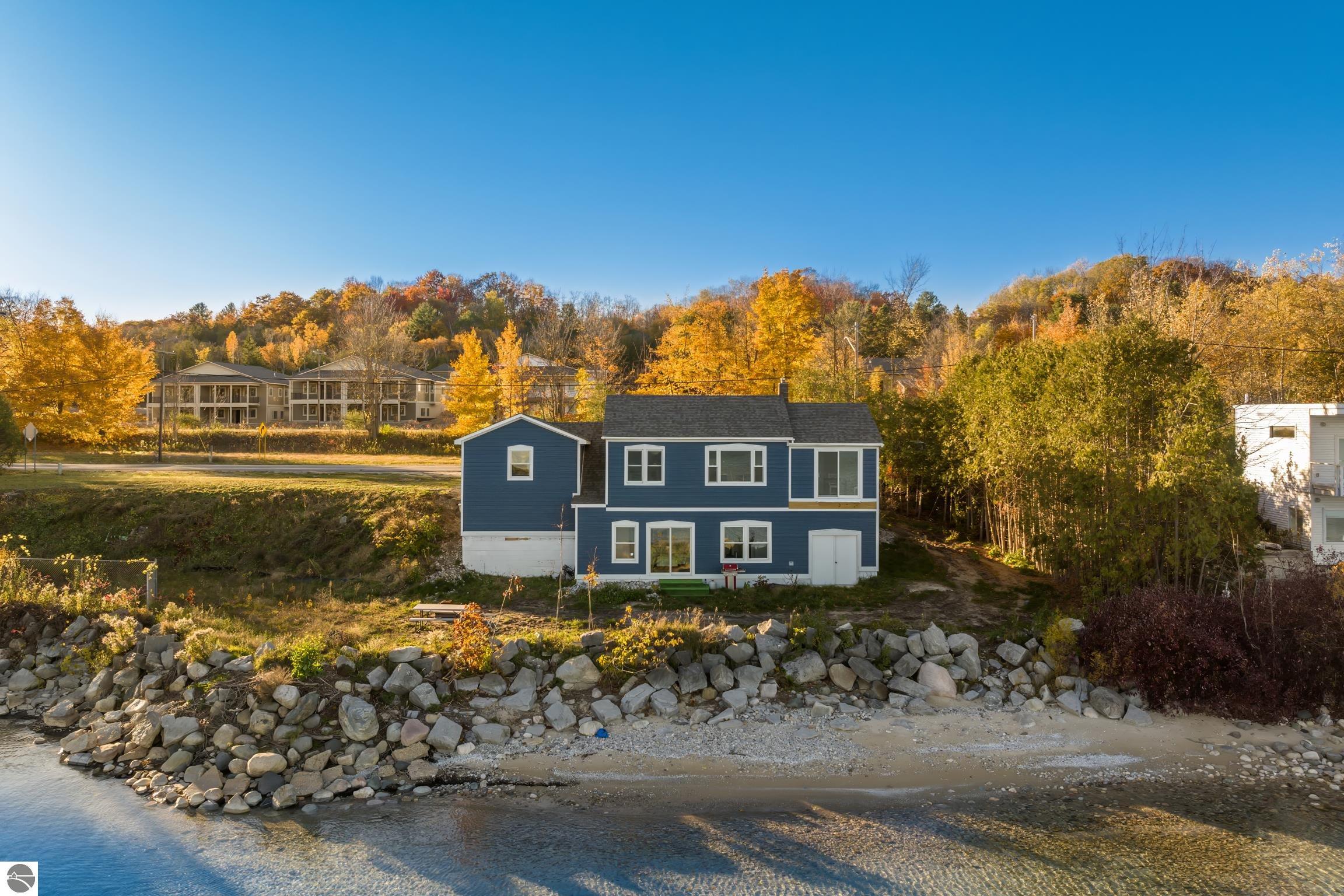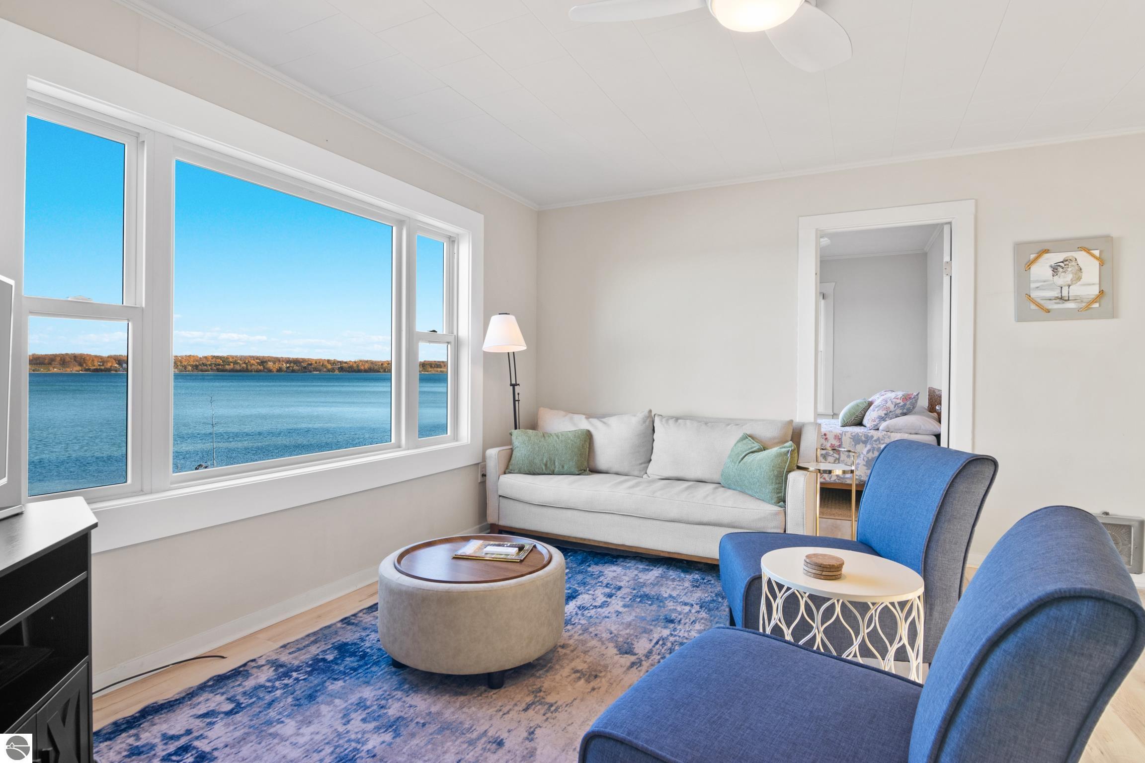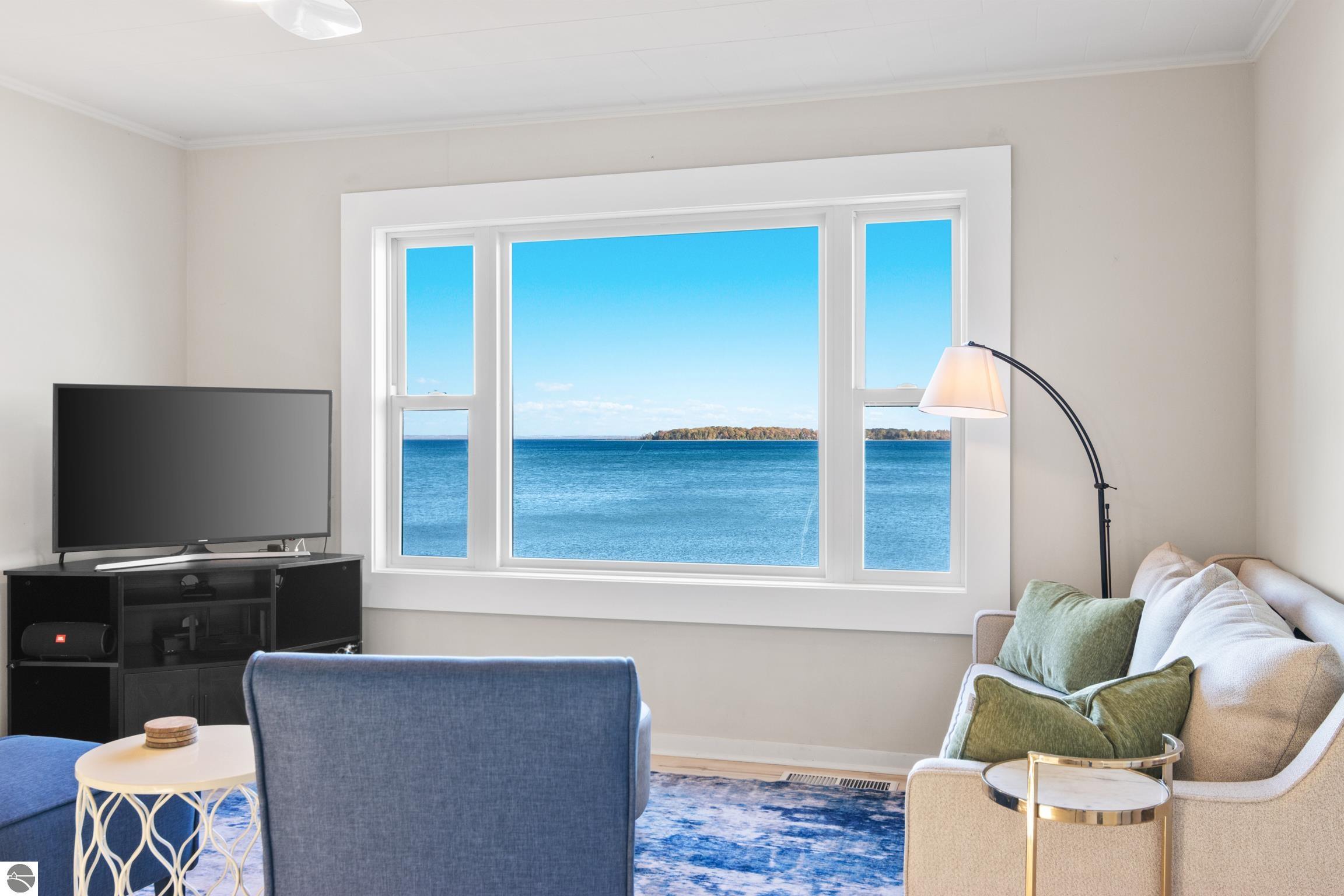 This isn't just a home, it is a lifestyle! Enjoy this year-round living or a classic beach house getaway in this bright and welcoming three-bedroom, 1 bath home with direct access to 100 feet of private waterfront on West Grand Traverse Bay. Large windows and an open layout fill the interior with natural light, offering panoramic, picturesque water views from multiple rooms. A walk-out design makes moving between indoor comforts and the shoreline effortless, creating an ideal flow for entertaining and enjoying outdoor living. This home has been updated to include a new roof, LP siding, storm drain, septic system, drain field, flooring, trim, Anderson windows, and two new patio sliders, along with fresh paint on the main level. Just a short stroll to downtown Suttons Bay, this property combines shoreline serenity with convenient access to shops, dining, and seasonal events. This home is perfect for all things summer, for beaching, launching a kayak, SUP board, or your own boat, or simply relaxing to the sounds of the bay. Living on West Bay gives one the ability to travel by boat to nearby towns, such as Traverse City, North Port, Bay Harbor, Omena Bay, Mackinaw, and much more; it's the Great Lakes!