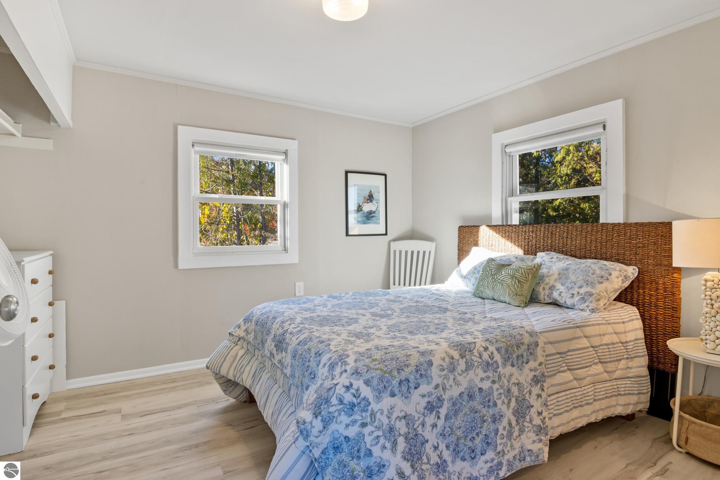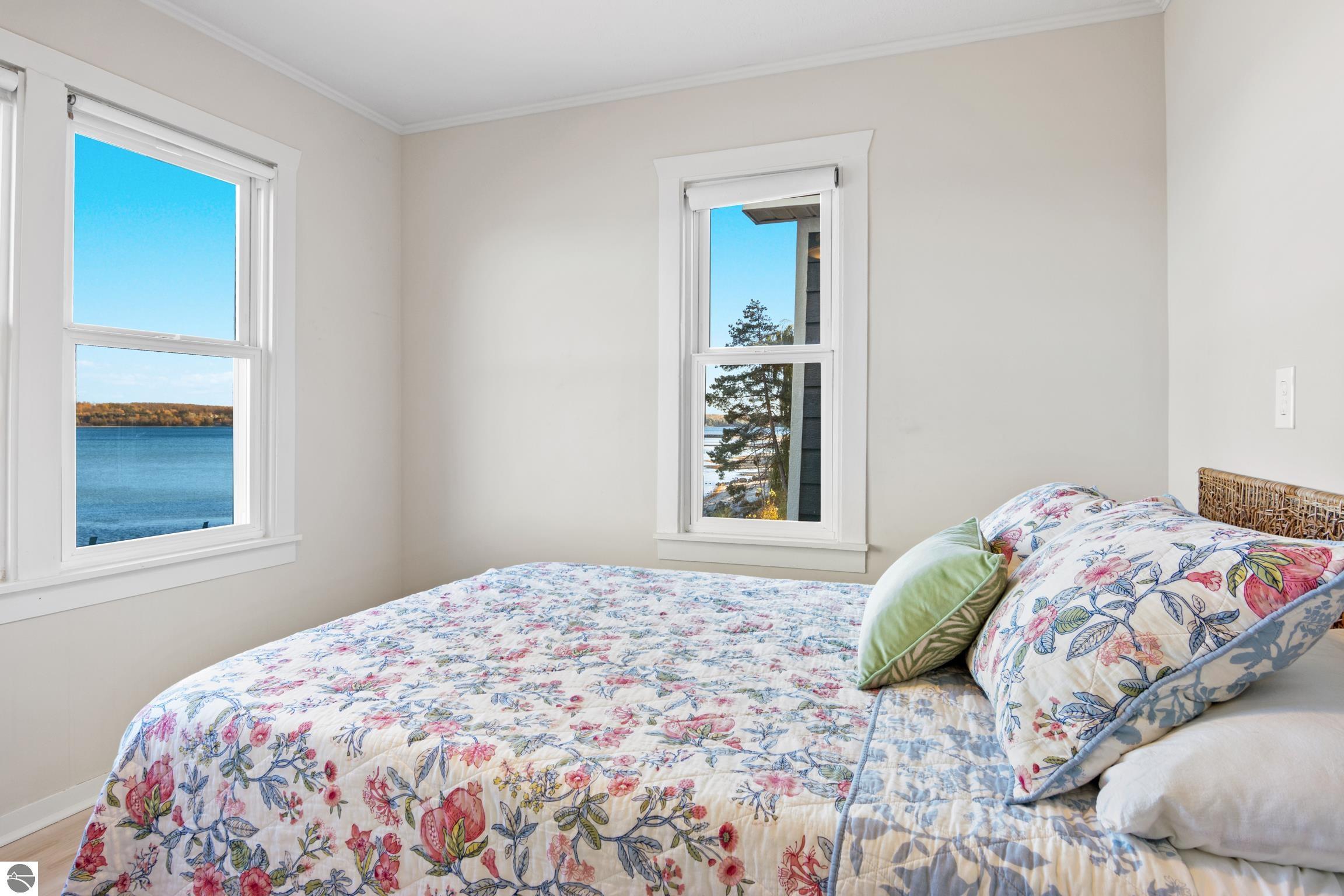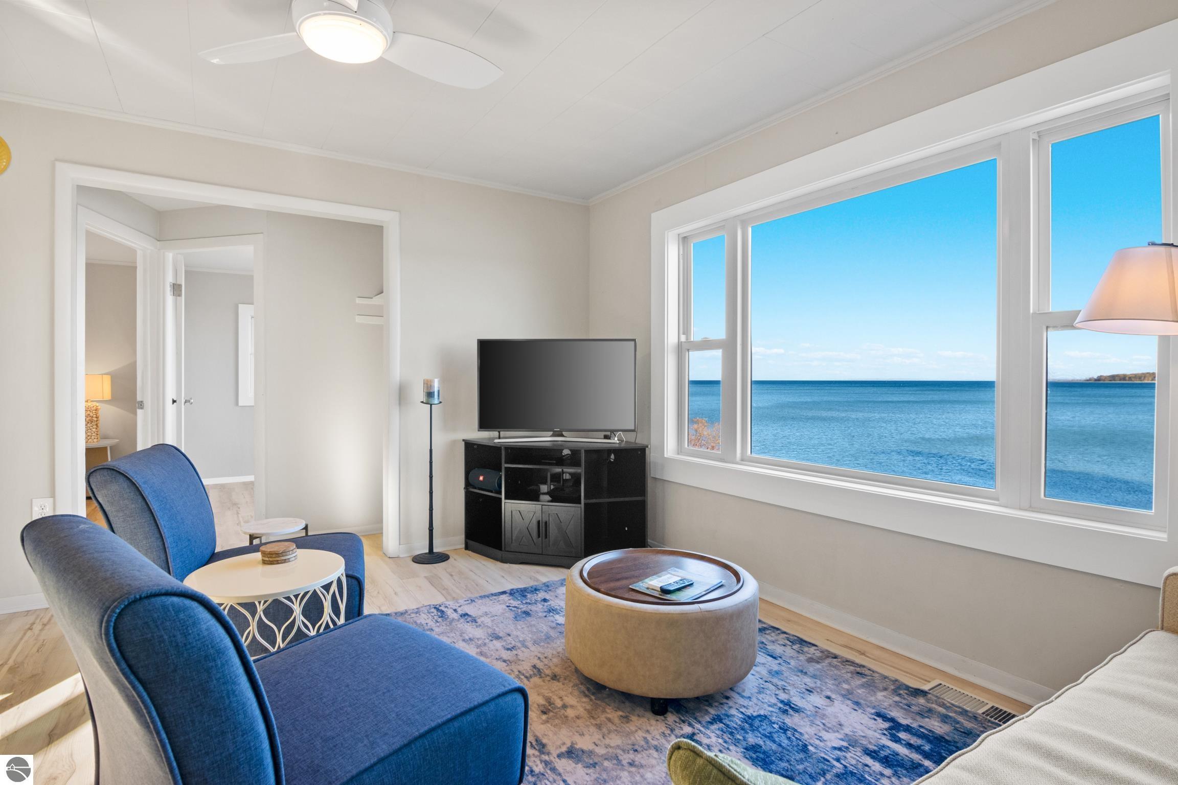 This isn't just a home, it is a lifestyle! Enjoy this year-round living or a classic beach house getaway in this bright and welcoming three-bedroom, 1 bath home with direct access to 100 feet of private waterfront on West Grand Traverse Bay. Large windows and an open layout fill the interior with natural light, offering panoramic, picturesque water views from multiple rooms. A walk-out design makes moving between indoor comforts and the shoreline effortless, creating an ideal flow for entertaining and enjoying outdoor living. This home has been updated to include a new roof, LP siding, storm drain, septic system, drain field, flooring, trim, Anderson windows, and two new patio sliders, along with fresh paint on the main level. Just a short stroll to downtown Suttons Bay, this property combines shoreline serenity with convenient access to shops, dining, and seasonal events. This home is perfect for all things summer, for beaching, launching a kayak, SUP board, or your own boat, or simply relaxing to the sounds of the bay. Living on West Bay gives one the ability to travel by boat to nearby towns, such as Traverse City, North Port, Bay Harbor, Omena Bay, Mackinaw, and much more; it's the Great Lakes!