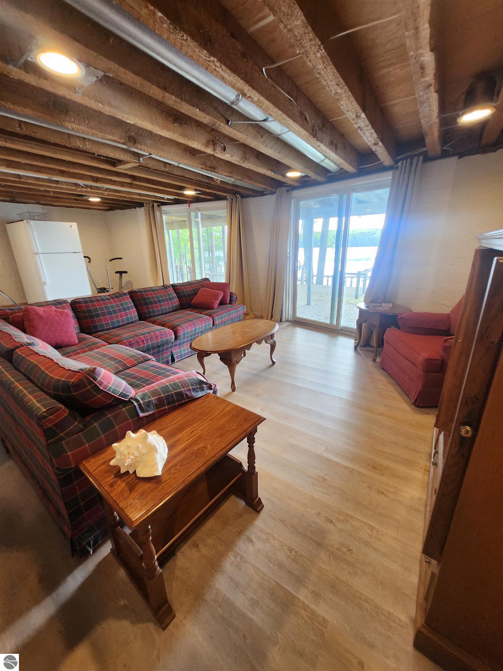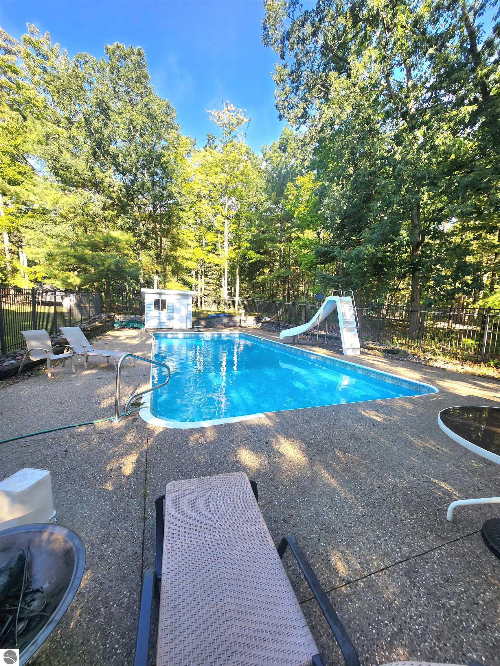 111' LAKEFRONT ON BEAUTIFUL ALL SPORTS GUTHIER LAKE! Sandy Beach Entertain your family and friends in this spacious 3444 custom built home offering 3444 sq. ft. turn key 2 story home with a full finished walkout basement. Fenced in outdoor swimming pool and hot tub with patio. Comes completely furnished except personal items. Beautiful custom brick gas fireplace in Great Room. Enjoy the beautiful lake views with floor to ceiling windows with knotty pine cathedral ceilings and wood beams. 4 bedrooms, 3 baths. Master suite offers a walkout balcony, double closets and private bath with shower. Security system and full home generator. Central Air. Guest quarters over garage for overflow guest. Beautiful views from the new large expansive deck. Walkout basement with views of the lake. 4th bedroom in lower level Garbage Pickup is Monday mornings at curbside. L.P. Gas Johnson Oil. Granite counters in kitchen with tile floor. Entertain your guest in the evening around the lakeside firepit. 50 foot aluminum/wood dock. Landscaped with sprinkler system. Association Dues is $890.00 per year for the double lot (Each lot is $445.00)Yr. Snowmobile trails and golf courses close by. Close to I 75 and Gaylord for shopping. Guthrie Lakes a private piece of heaven. Property Owners have access to over 90 acres of parks with 2000 feet of lake frontage on Guthrie and Section One Lakes. The Clubhouse amenities include a gathering room with beautiful views. There is also a heated outdoor pool area, TV room, pool tables and Boat Rentals.