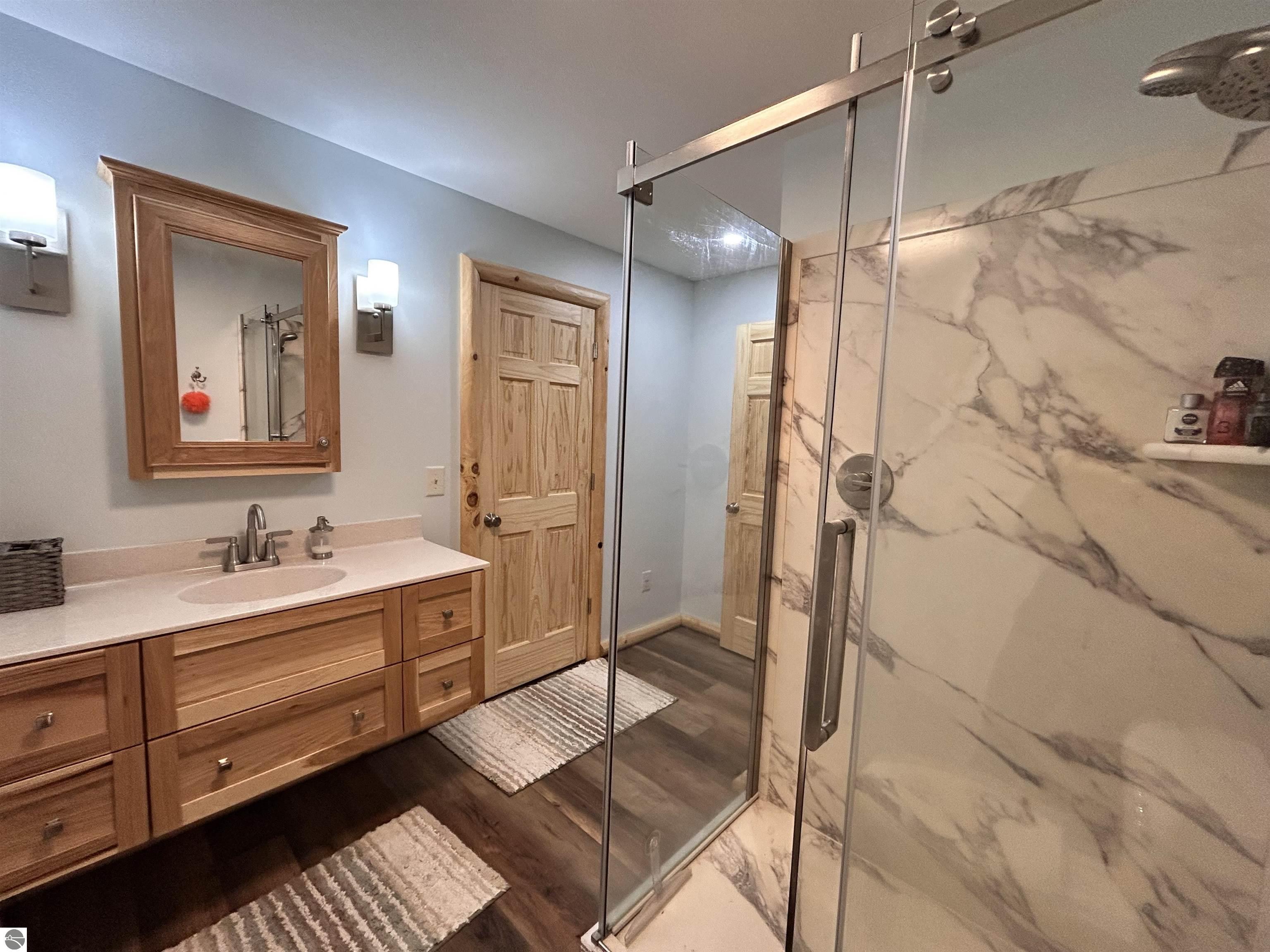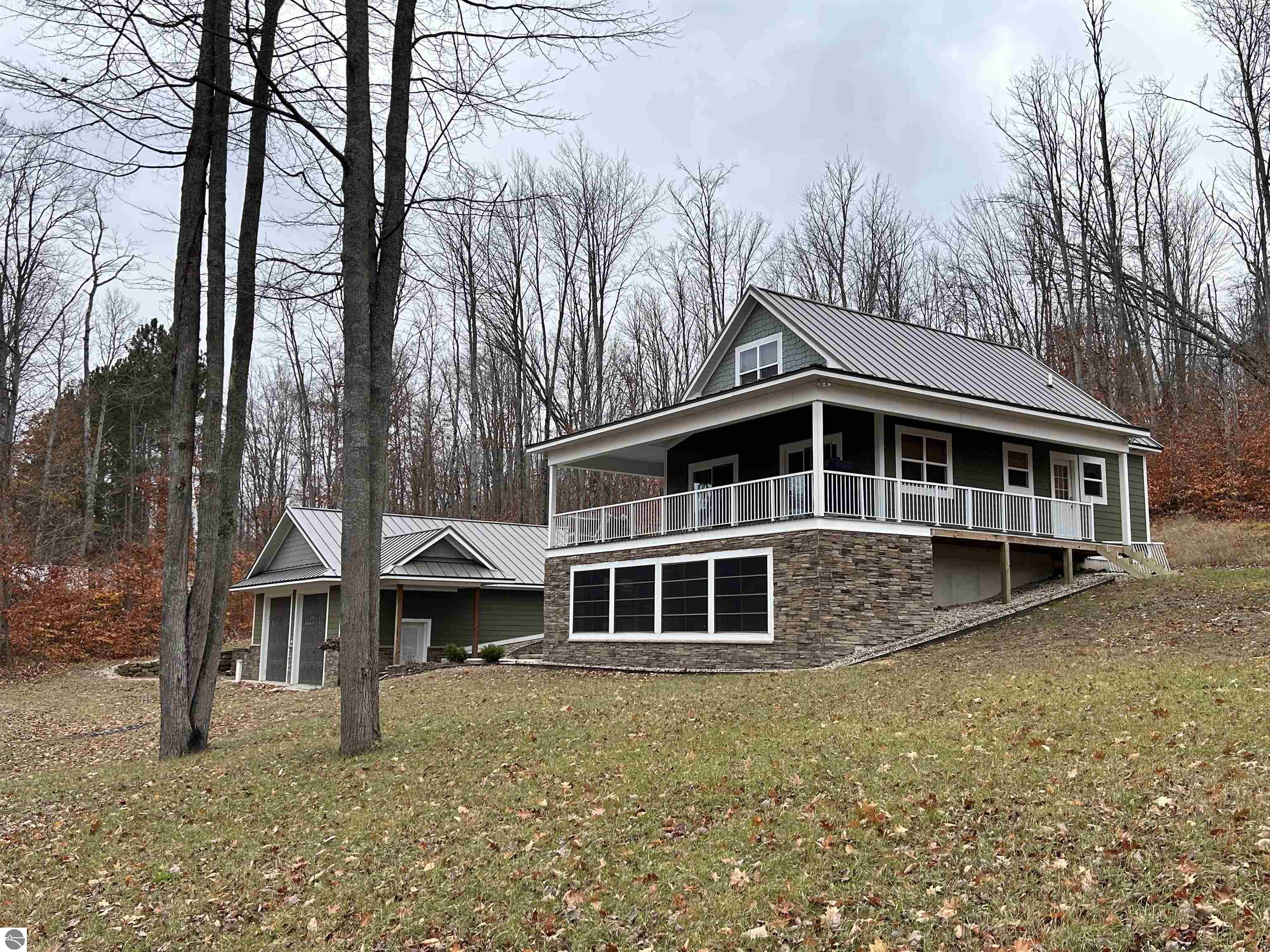 Discover this stunning newly remodeled 3-bedroom, 2.5-bathroom home on West Blue Lake Road in Kalkaska County. This Northern Michigan retreat sits directly across from Blue Lake. Recent upgrades include new Hardie board siding, metal roofing, and a heated two-car garage with heated floors for year-round comfort. Heated sidewalks add convenience during winter months. Located near snowmobile trails with excellent hunting and fishing opportunities nearby. The property enjoys a prime central location between Gaylord, Petoskey, and Traverse City, making it perfect for weekend getaways or permanent residence.