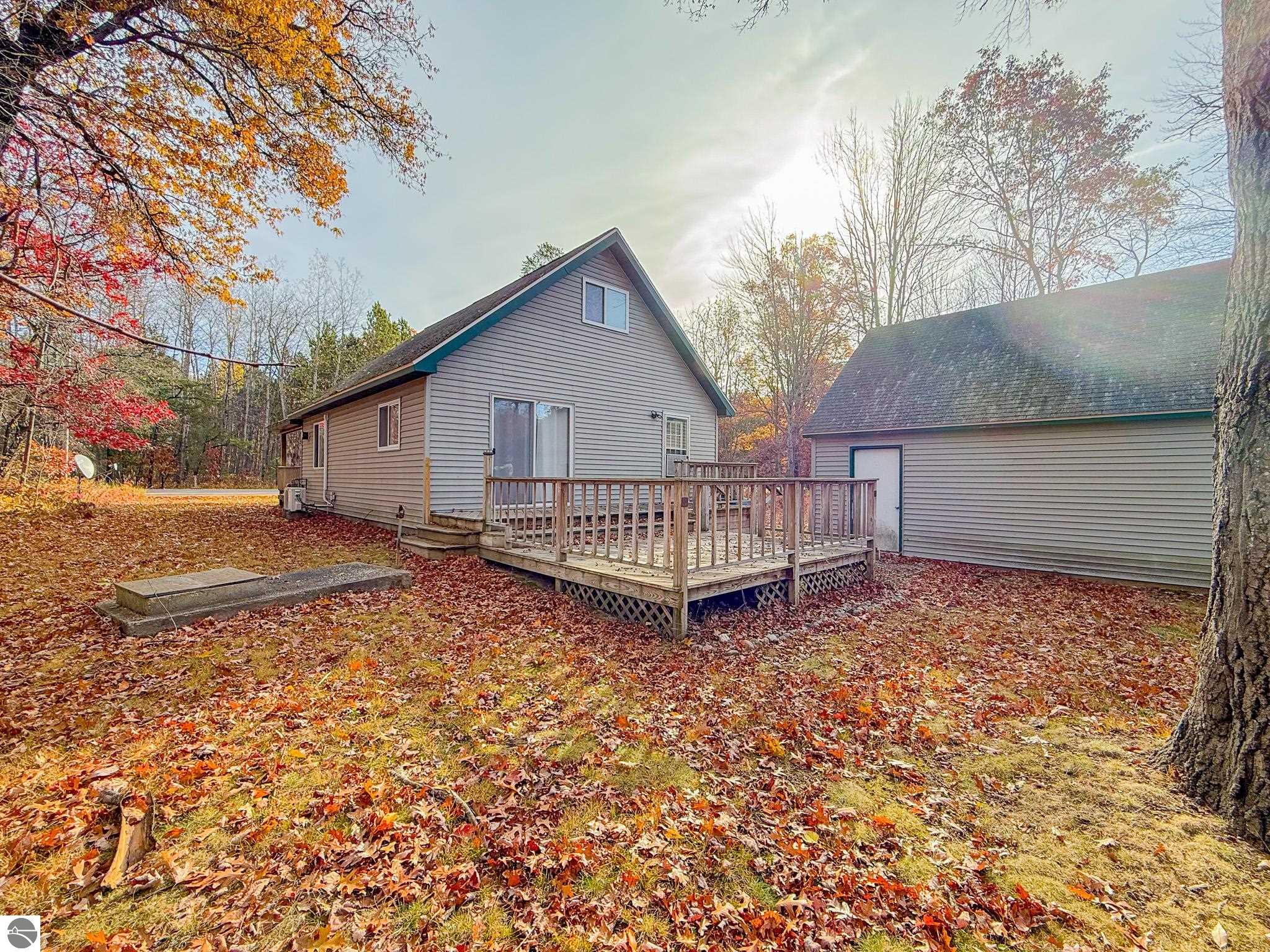 Enjoy Up North living in this cozy 2-bed, 1-bath chalet featuring a tongue-and-groove pine cathedral ceiling, a large covered front porch, and a spacious wood deck out backâperfect for relaxing or entertaining. Home sits on two generous lots and includes a large detached 2-car garage. Conveniently located near miles of ORV and snowmobile trails, DNR lake access, and just minutes from town!