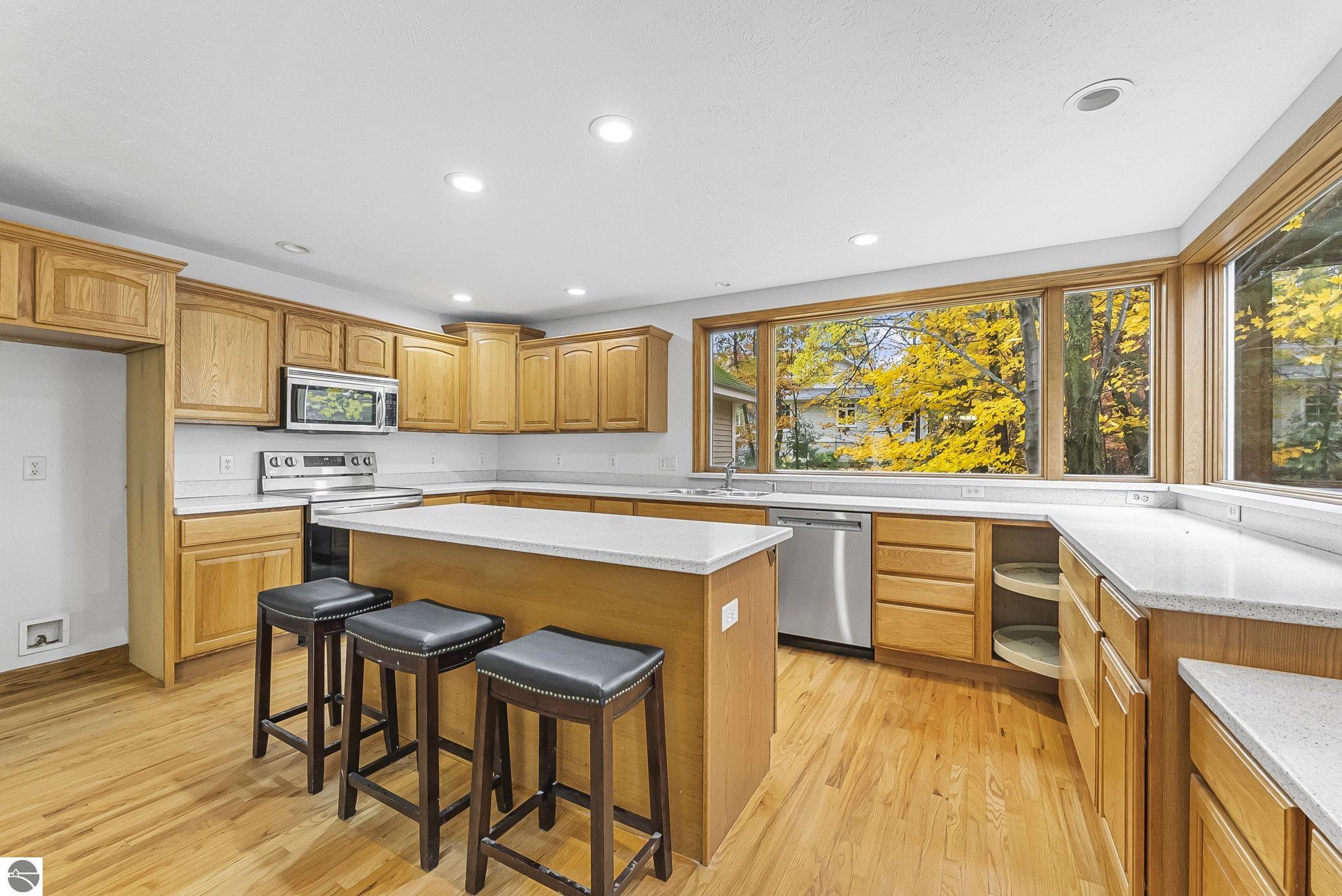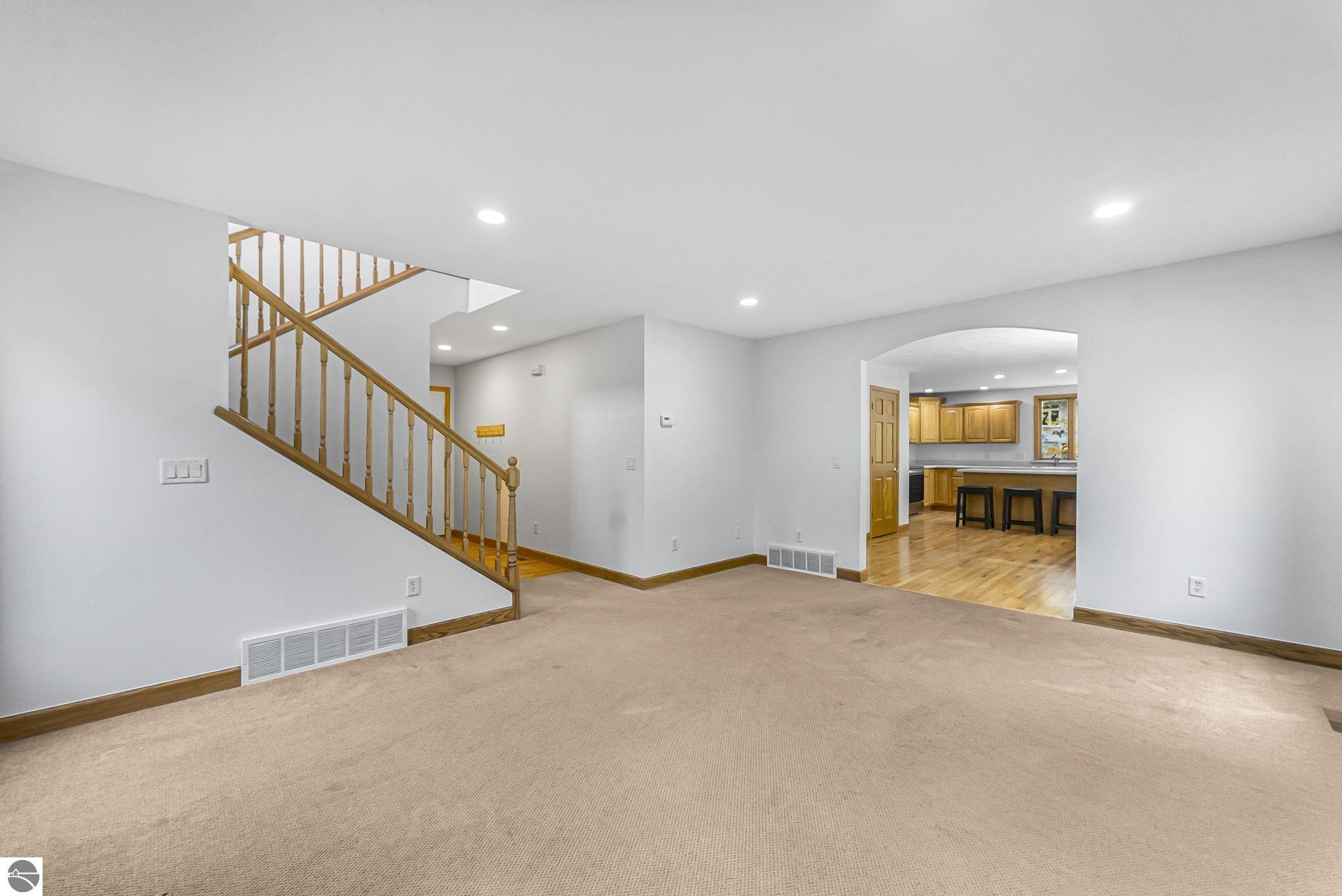This charming residence offers an abundance of space and quality in a serene neighborhood located just 10 minutes from downtown Traverse City. With convenient access to the VASA Trail, hiking opportunities, the Grand Traverse Resort, various shopping options, and dining establishments, this home is ideally situated. This generous 4-bedroom, 3.5-bath property features a walkout lower level that includes a full bath and an extra non-conforming 5th bedroom, making it perfect for visitors, a home office, or a personal gym. The open layout on the main floor floods the home with natural light, and outdoor living is enhanced by a spacious yard, large back deck, and welcoming front porch. A 3-car garage offers plenty of storage for vehicles and outdoor equipment. The main floor includes a sizable kitchen that connects to a dining area and a living room with a cozy fireplace, creating a wonderful environment for gatherings. The primary suite along with three sizable bedrooms, a full bath, and a convenient laundry area enhance family living. The lower level provides extra space for enjoying activities or pursuing hobbies. A sliding door opens to a fantastic area for a hot tub or a large yard for pets or children's play. This home represents a great opportunity for those seeking space and a chance to add their personal flair.
