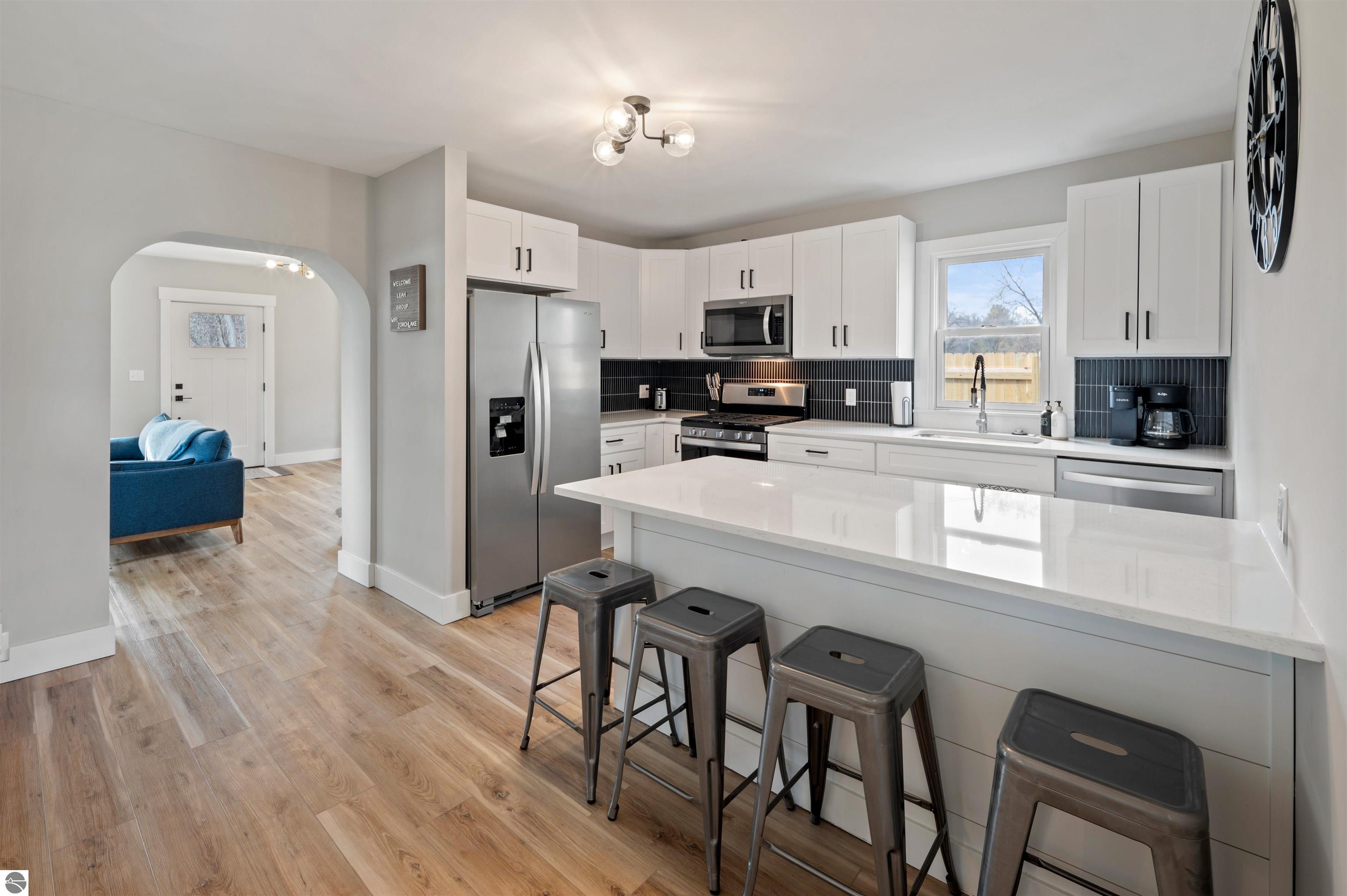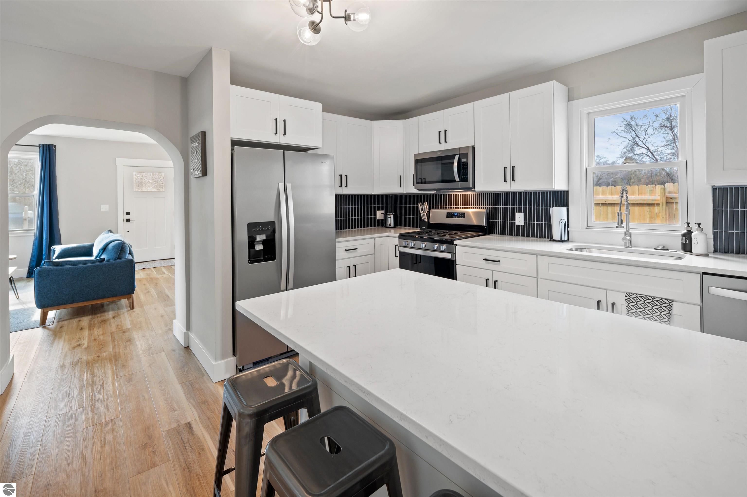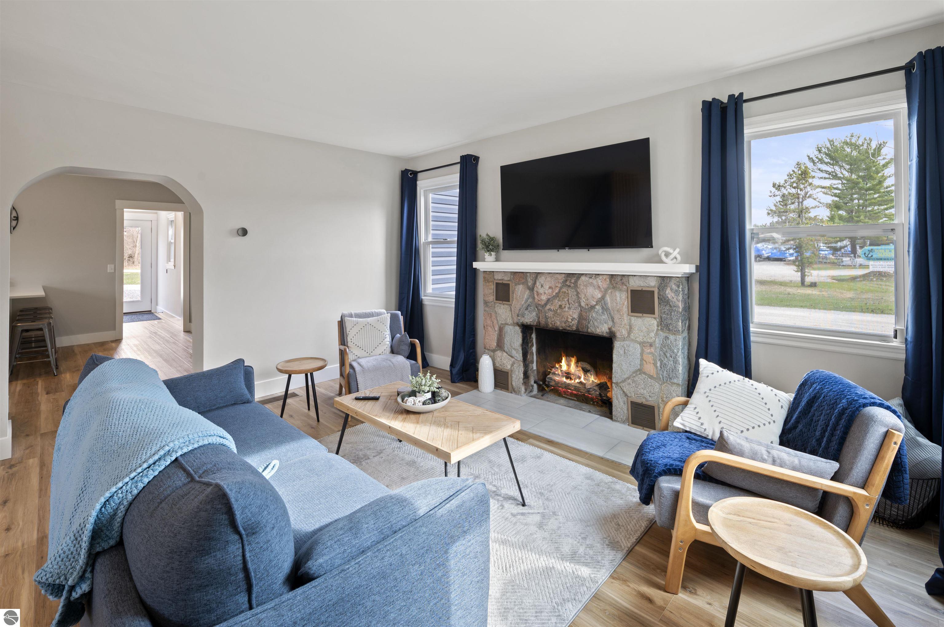 Prime location just steps from Torch Lake access and the shores of East Grand Traverse Bay! This beautifully updated property is situated in the heart of the business district, offering flexibility for a variety of uses. Zoned to allow short-term rentals with a transferable permit, it’s an ideal opportunity for boutique lodging, or a year-round residence. Inside, you’ll find a fully renovated home, complete with new kitchen and bathrooms, and a cozy gas fireplace that adds warmth and charm. Move-in ready and available turnkey, this versatile property combines stylish design with investment potential in one of Northern Michigan’s most desirable corridors.
