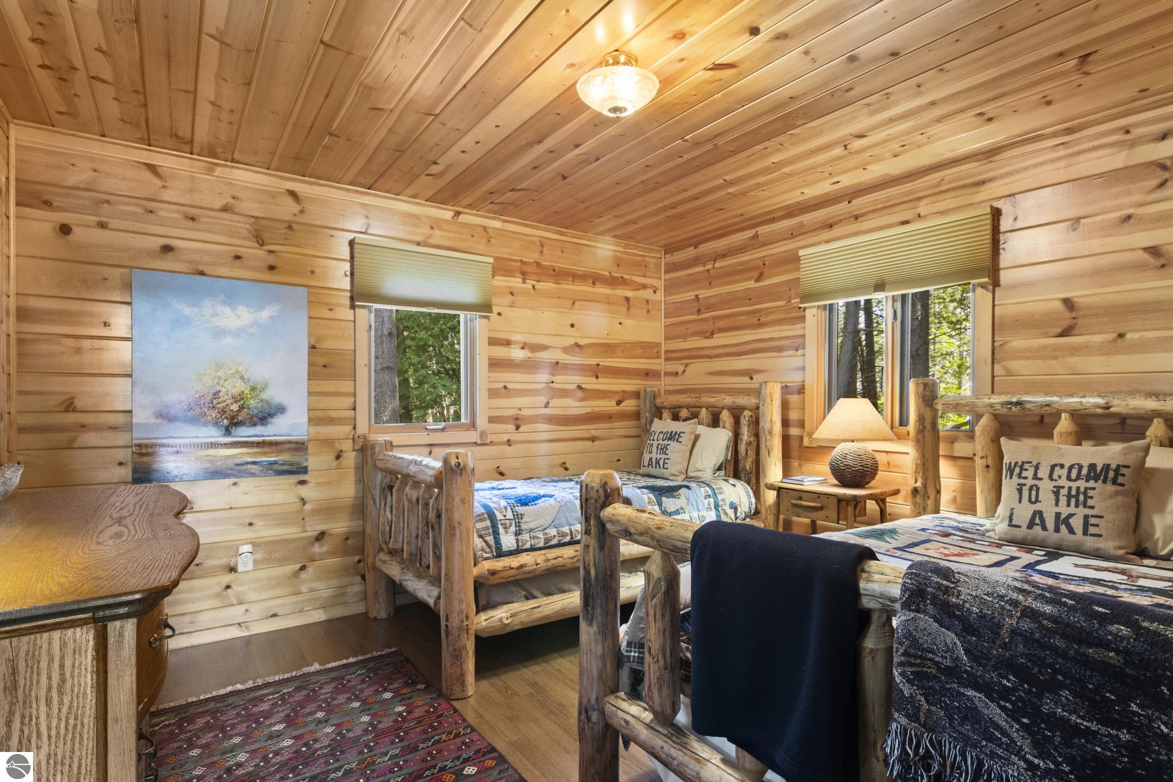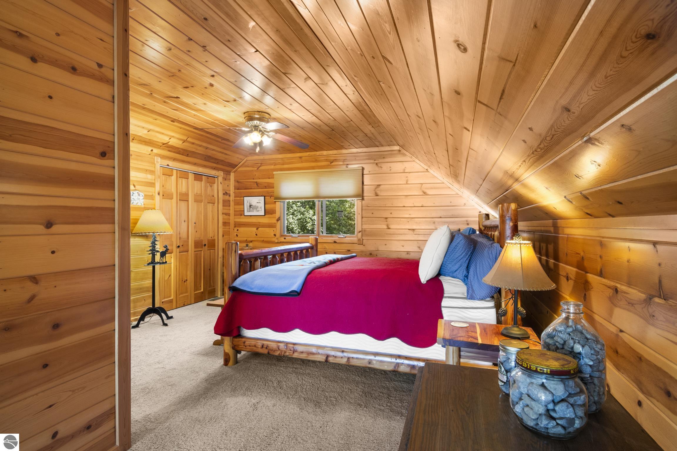 Discover the ultimate Up North escape with this beautifully maintained log-sided home on coveted Six Mile Lake—part of Northern Michigan's highly desirable Chain of Lakes. Just minutes from East Jordan, Central Lake, and Bellaire, this property blends comfort, convenience, and classic lake life charm. Set on a generous 0.5-acre lot with 109 feet of private lake frontage, the home offers peaceful sunset views and plenty of outdoor space—including room to add a garage. The open-concept interior features soaring vaulted ceilings and tongue-and-groove pine walls, creating a warm, inviting atmosphere throughout. Enjoy 3 spacious bedrooms, 2 full bathrooms, a mudroom with laundry tub, and a kitchen outfitted with granite countertops and modern appliances. An expansive wraparound deck and patio area provide the perfect setting for entertaining or unwinding by the water. Recent updates in 2025 include a new high-efficiency furnace, central A/C, water softener, and septic pump, offering modern comfort with peace of mind. Sold fully furnished with dock included—just move in and start enjoying the lake life! Whether you’re looking for a serene year-round residence or a low-maintenance getaway, this turnkey home offers a rare opportunity to own on one of Northern Michigan's beautiful all sports lakes!