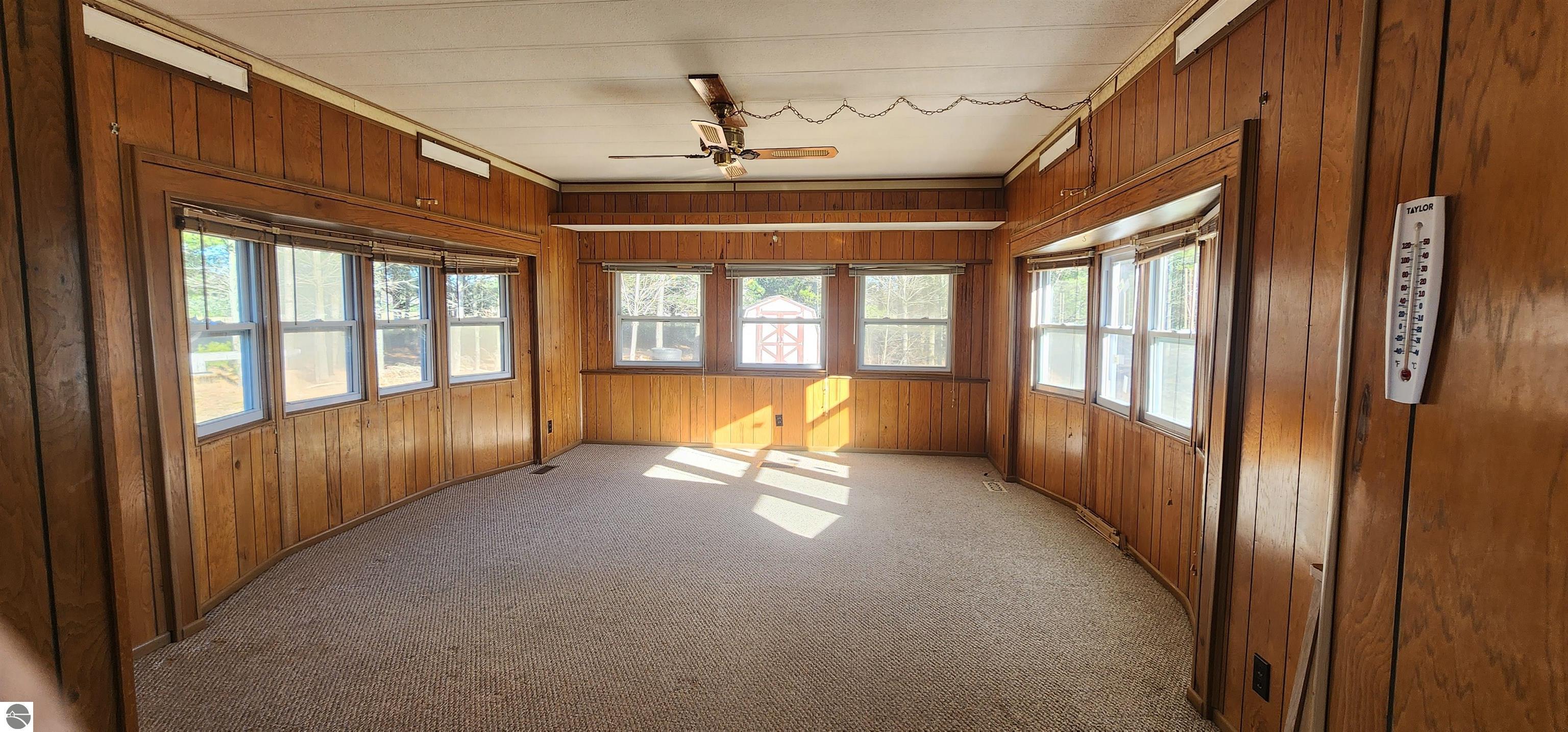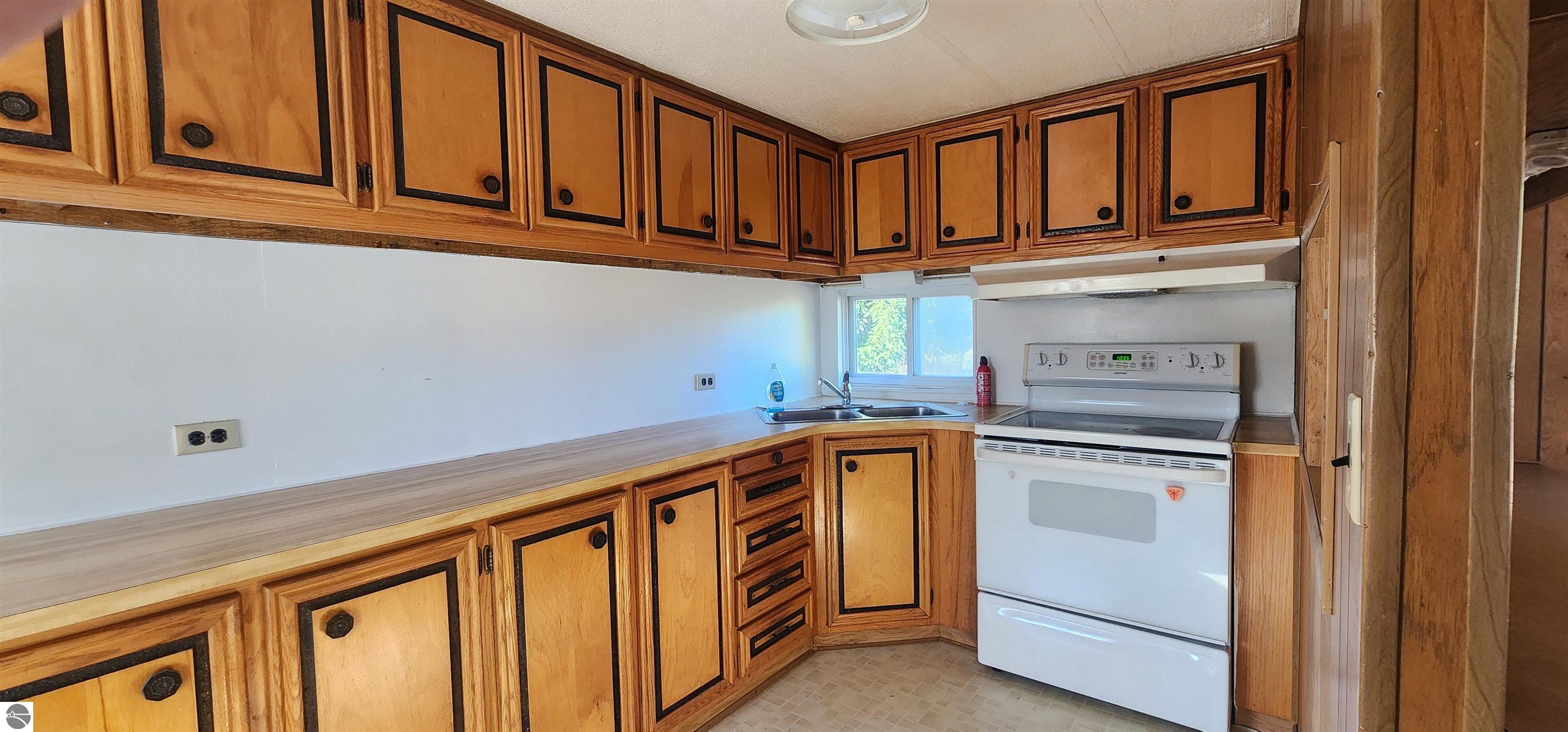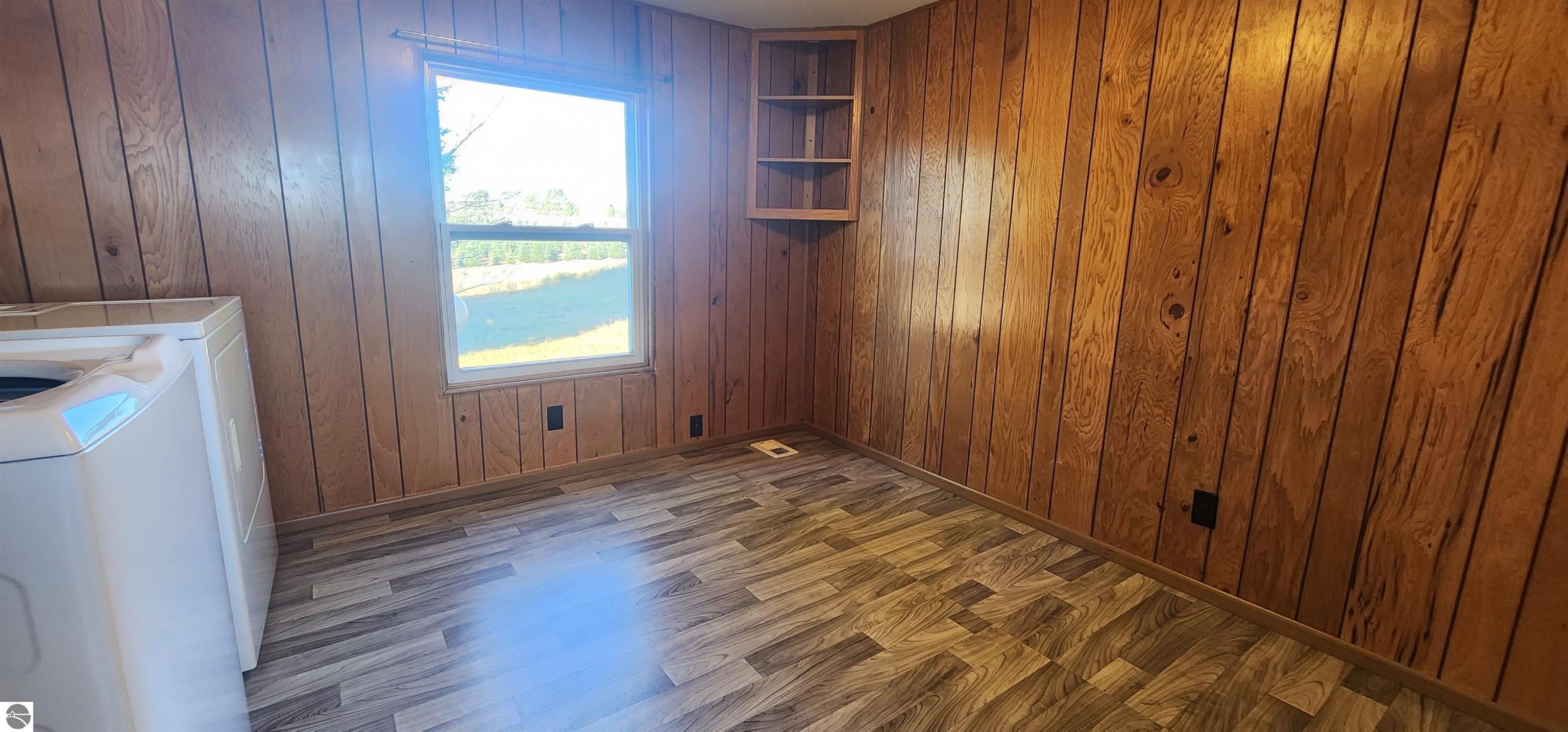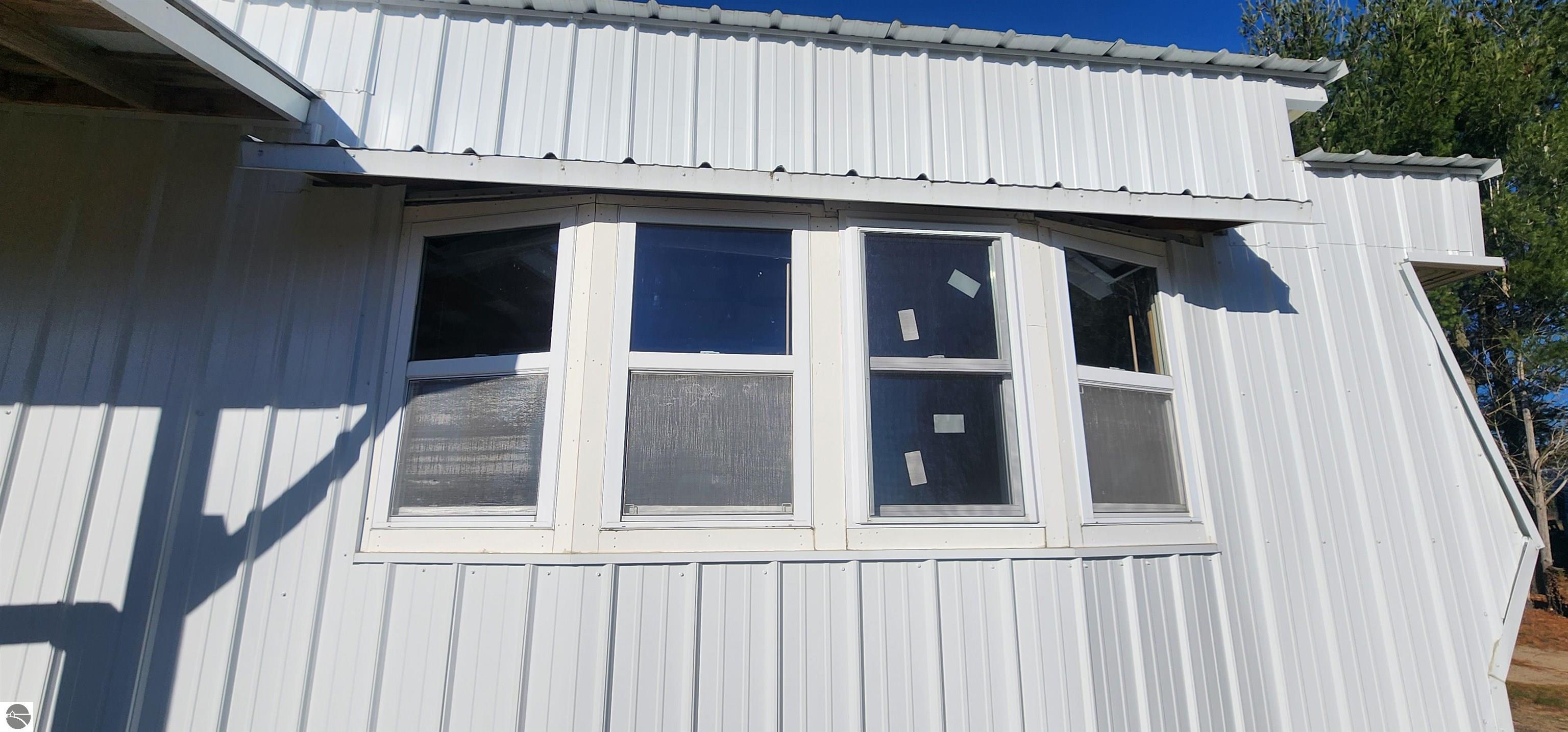 Extremely well-preserved 1978 manufactured home, thoughtfully updated and move-in ready. The sellers have taken great care with improvements, including a new roof, new vinyl windows throughout, and full steel exterior enclosure, providing excellent insulation and long-term durability. This home is believed to have been used as an office at one time, which explains the spacious layout and unique built-ins, and superb condition. Inside, the 17' x 15' living room features bay windows, a ceiling fan, built-in desk, shelving, cabinets, and a functioning radio/intercom system that plays throughout the home and outdoors. The 10' x 12' dining room includes a built-in hutch for added storage. A 13' x 7' galley kitchen offers ample cabinetry, generous counter space, and includes the refrigerator and oven. The second bedroom (10' x 10') has vinyl plank flooring and currently houses the washer and dryer. If preferred, the laundry can easily be relocated back to the bathroom—original hookups remain in place—allowing the room to be used fully as a bedroom again. The 10' x 7' bathroom includes a tub/shower combination and built-in hamper. The 13' x 13' primary bedroom offers a large closet, abundant natural light, and access to the intercom system. Outside, you’ll find a garden shed for extra storage. Well and septic were both new in 2019. Located just off a quiet seasonal road with Spectrum cable and internet available, this peaceful setting is ideal for wildlife viewing and offers excellent potential for a small hobby farm. A tranquil, open property with room to enjoy northern Michigan living.