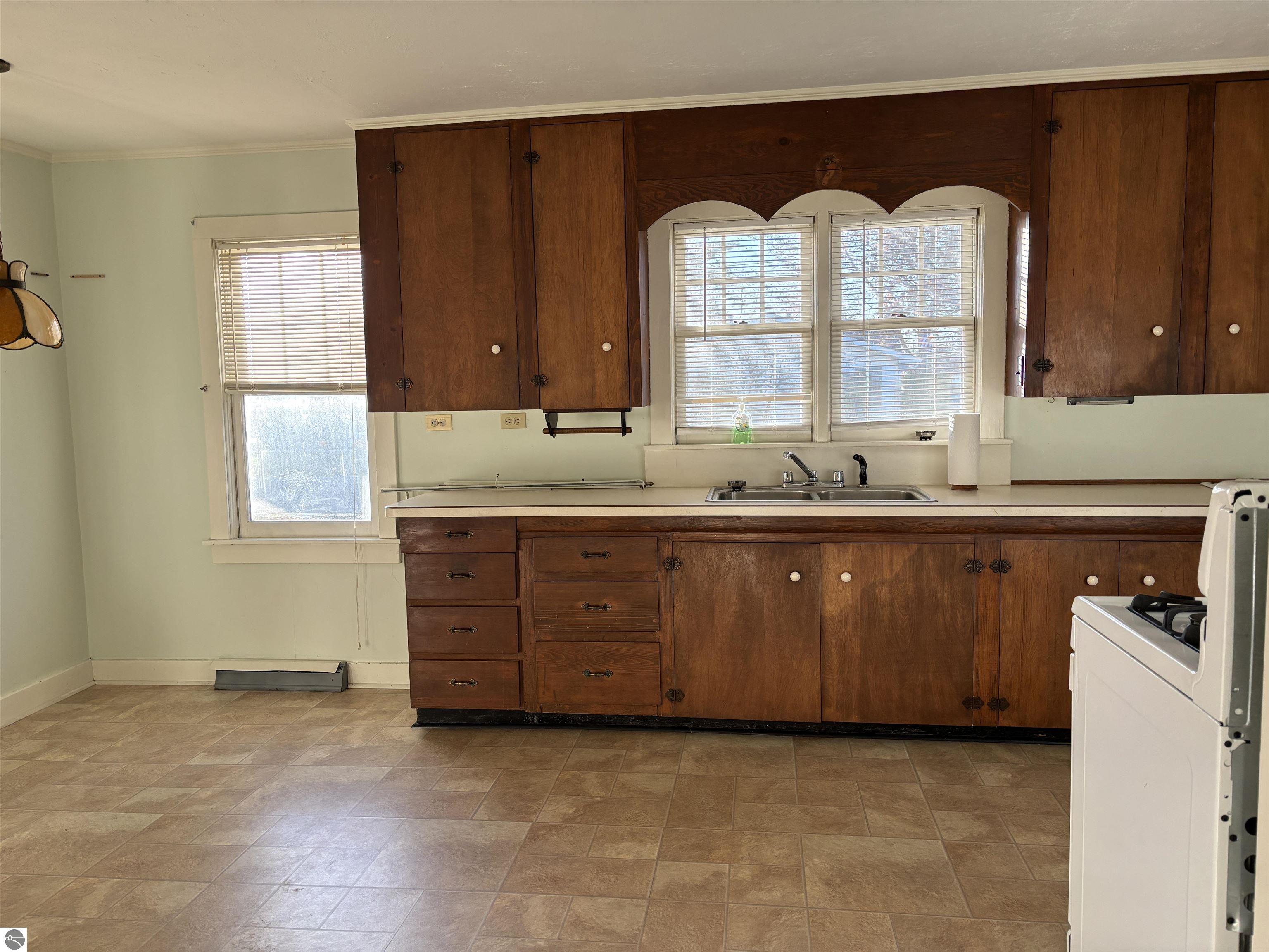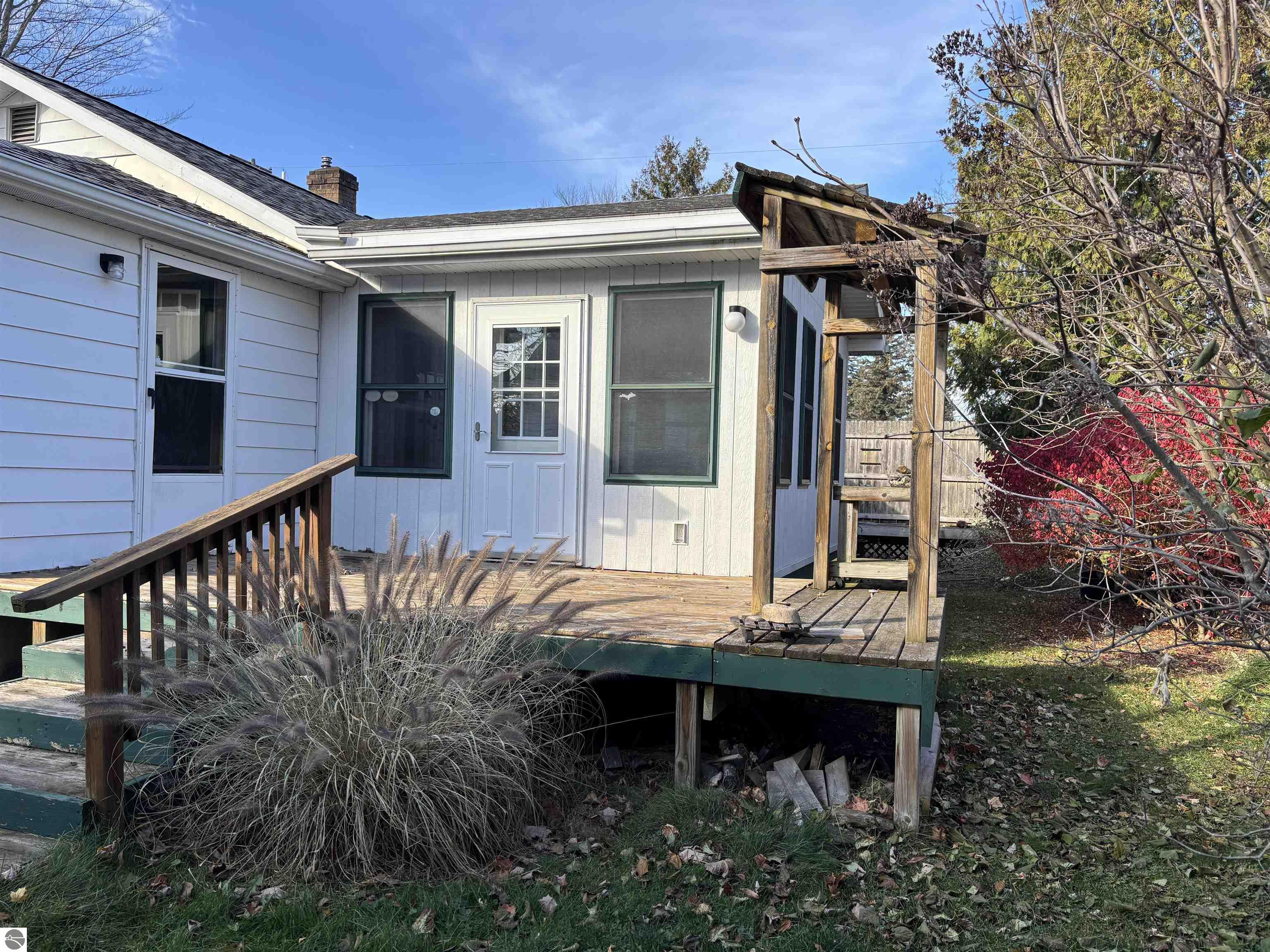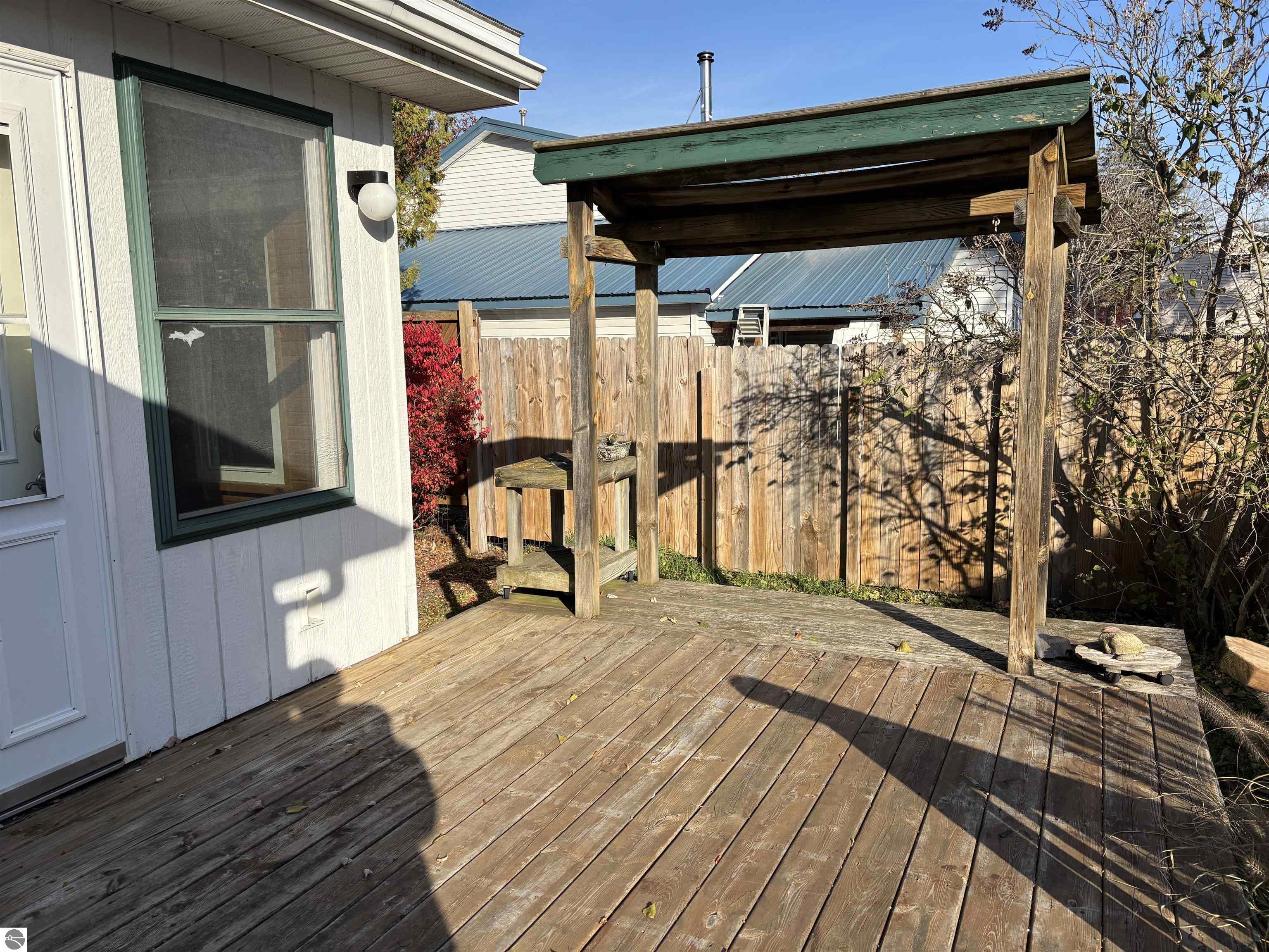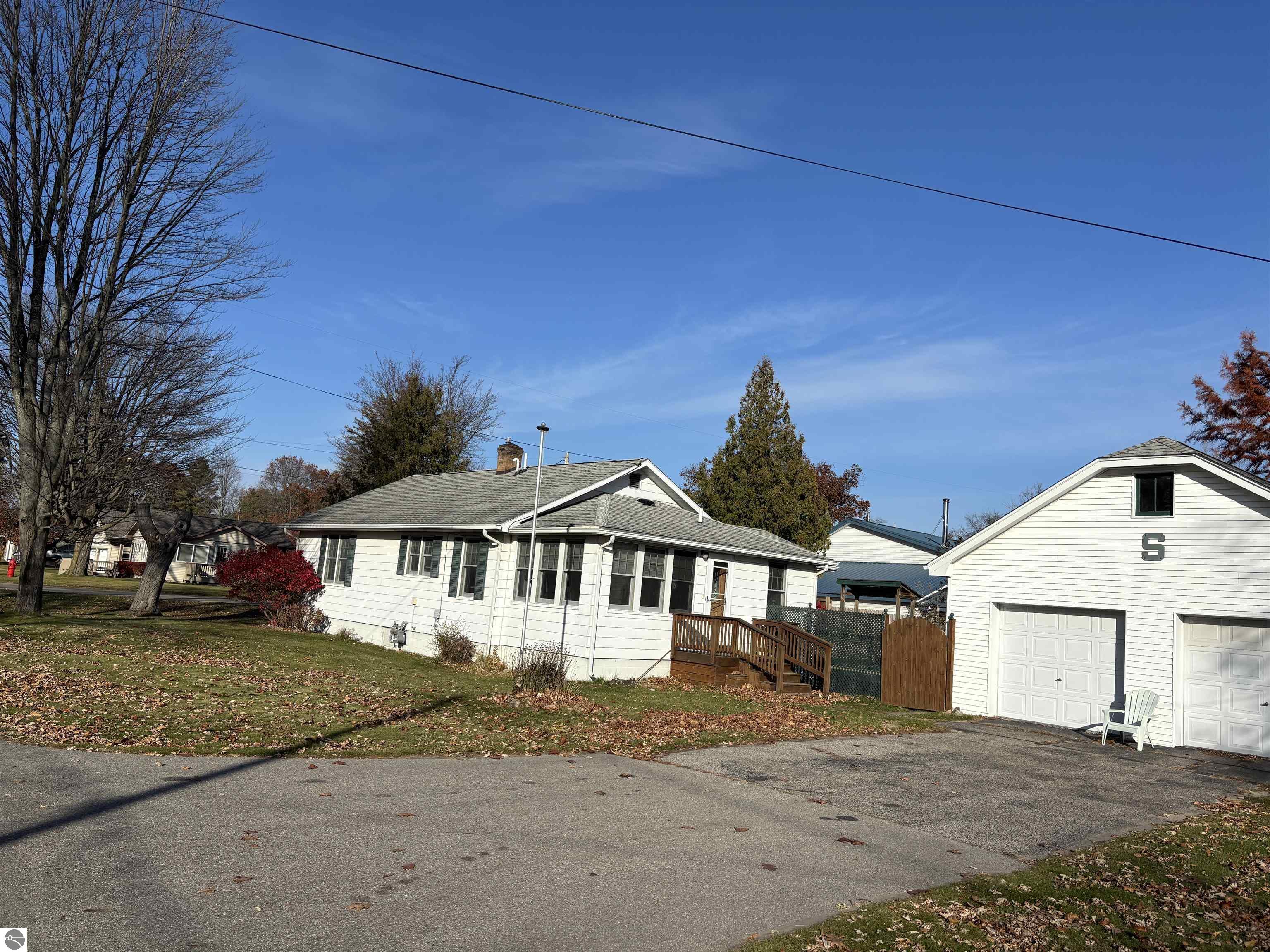 Conveniently located in downtown East Tawas this 2 bedroom/1 bathroom house is situated on a corner lot, and features a floor plan designed for comfortable living. The living boasts hardwood floors, while the kitchen provides ample storage and space, complemented by a cozy dining nook. A sunporch at the back of the home invites you to relax with a cup of coffee or enjoy a good book in a cozy sitting spot. The laundry area is conveniently off the sunroom and both the washer and dryer are included with the sale. You will find the bathroom conveniently located between both bedrooms. Built in 2002, the handcrafted sunroom measures 13X16 and offers flexible access from both the inside and outside of the home. It features an open rafter ceiling and large surround windows that fill the space with natural light. The walls are finished with beautiful wooden tongue and groove paneling, adding warmth and texture to the room. For comfort during cooler evenings, an electric heater is included, making this sunroom a cozy retreat year round. Outside you will enjoy sitting on the back deck while in the privacy of the fenced in backyard. All 3 garages have cement floors, and offer lots of extra room for storage, craft/hobby area and of course all your extra toys!! The home features essential amenities such as natural gas, city water and sewer, and central air conditioning. The home is near the shops and restaurants on Newman Street, Tawas Point State Park, the scenic hiking and biking trails, and all the amenities East Tawas has to offer. Not to mention the beautiful beaches and shorelines of Lake Huron. Whether you are looking for a serene retirement home or a northern Michigan getaway, this is a great opportunity to own a home in a prime East Tawas location!