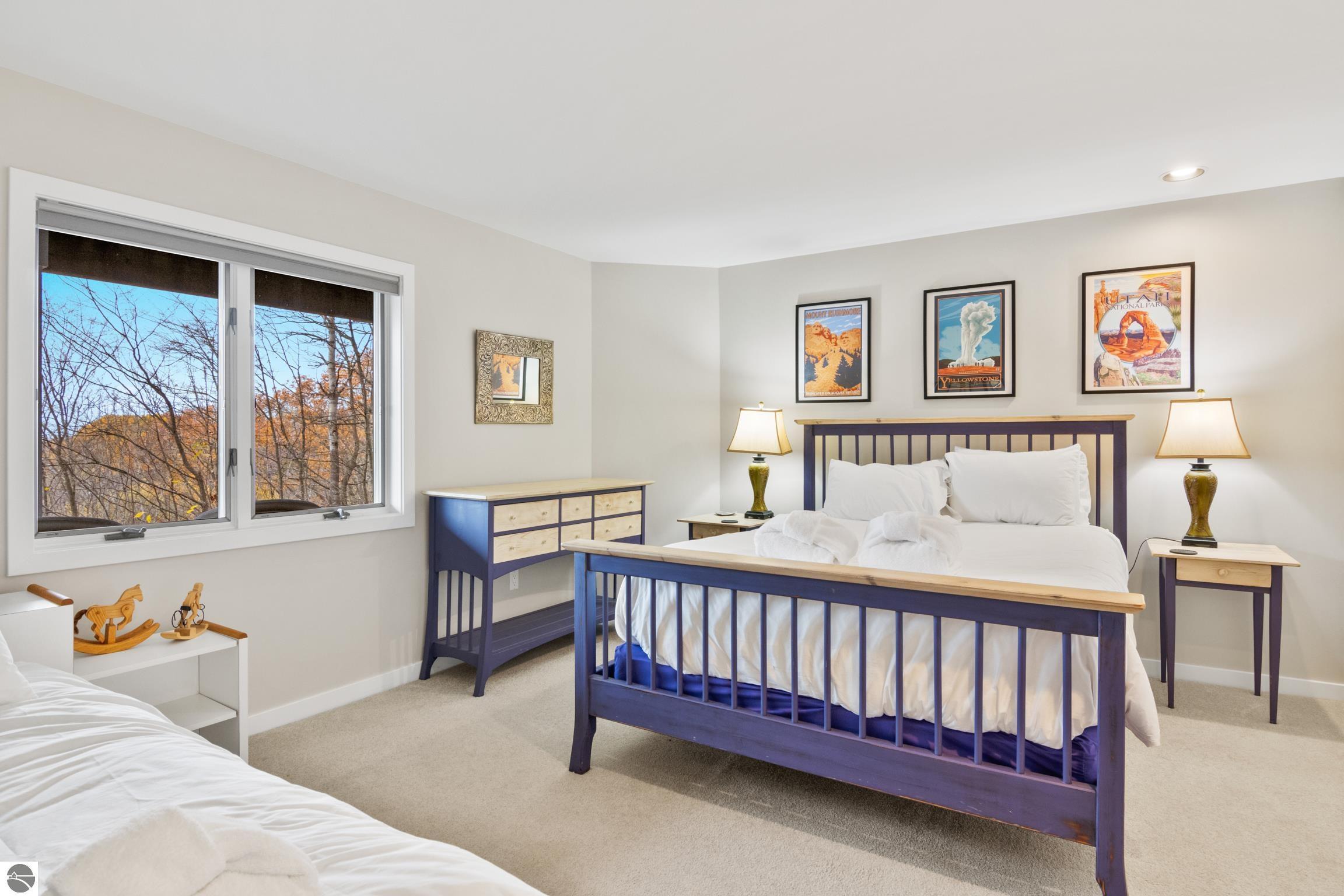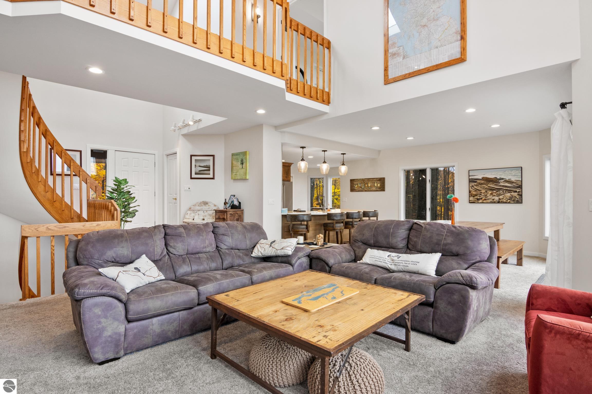 Escape to peaceful country living in this exceptional home located in Bellaire, Michigan. Enjoy over three acres of seclusion with stunning western views and endless possibilities for outdoor activities at Shanty Creek Resort. Step inside to discover a spacious and inviting floor plan that includes a custom and timless renovated kitchen with a cozy breakfast nook and dedicated serving pantry. The first floor living space is spread out and equipped with a fieldstone fireplace with rough-barn beam mantle, ideal for gathering with loved ones. Retreat to the top floor luxury suite complete with spa-like en-suite bathroom, fireplace, walk in closet and conversation area looking over the valley for sunset, northern lights, and tree top views. Four additional bedrooms and family room with bar offer plenty of space for guests or growing families. Improvements include items such as new roof, furnace, hot water, exterior paint, garage door, kitchen, bathrooms and so much more. Don't miss your chance to make this tranquil retreat yours. Well-maintained home with an inspection report available as part of the purchase agreement conditions.