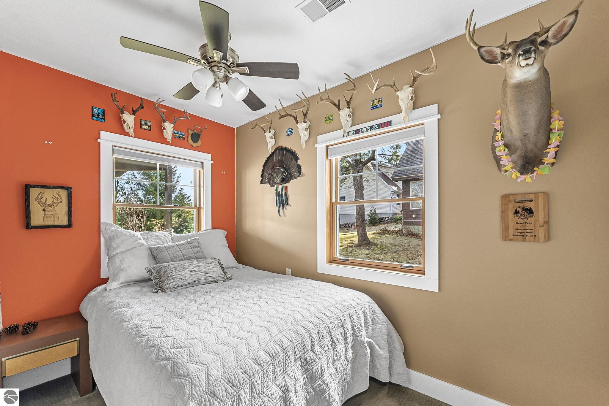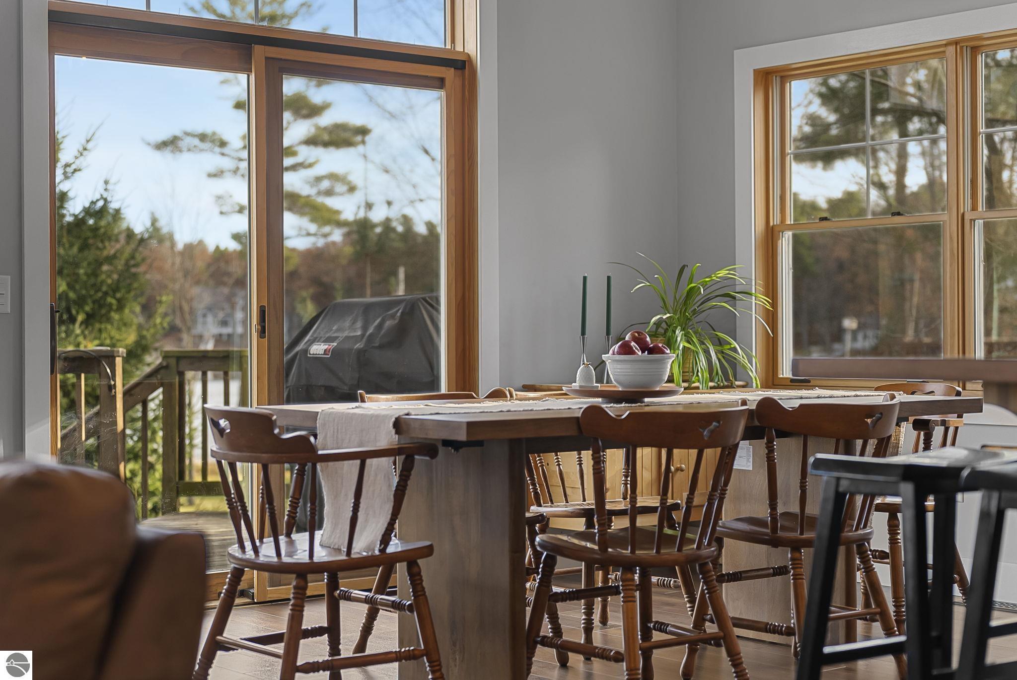 Discover an exceptional Long Lake estate offering unmatched space, comfort, and amenities across two expansive lots with two tax IDs. The main home features 7 bedrooms and 4½ bathrooms, including a private mother-in-law suite complete with a full kitchen and cozy fireplace. The main kitchen is a chef’s dream, showcasing soapstone countertops, a custom walnut-and-maple island, and double ovens, perfect for entertaining on any scale. Multiple living spaces, including three separate living areas. Throughout the main level, you’ll find 9 foot ceilings, Bluetooth ceiling speakers, and wiring that extends into the primary bedroom, bath, and deck. The home includes thoughtful luxury touches such as heated floors in the primary bathroom and lower-level bath, a built-in sauna, and a natural gas grill connection on the deck. Step outside and enjoy an outdoor shower, a lot large enough for a soccer field, and a pole building for additional storage or hobby use. A private drive leads directly to the shoreline, where the estate boasts amazing sandy frontage with a hard sandy bottom ideal for swimming and water enjoyment.The guest cottage, currently operated as an short term rental, offers excellent income potential or additional private lodging. It features its own well and septic, a charming fireplace, 2 bedrooms, 1 bathroom, and a covered porch overlooking the property. Ownership in this exclusive community includes access to exceptional shared amenities: a private playground with baseball diamond, disc golf course, private walking trails, use of the covered pavilion, and a private boat launch, meaning you’ll never need to visit a public launch again. With incredible space, luxurious amenities, and premium sandy waterfront on two lots, this property delivers an unparalleled lakeside living experience.