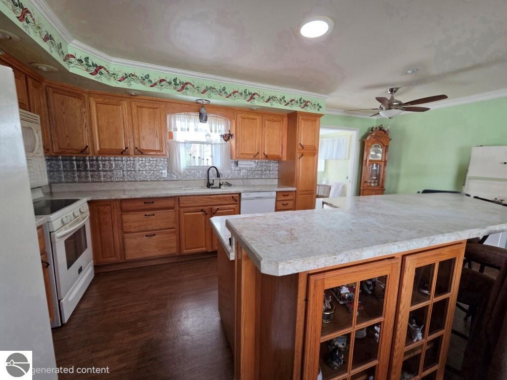 LOCATION! LOCATION! LOCATION! CLOSE TO HOSPITAL AND IN THE CITY LIMITS Entertain family and friends in this spacious raised ranch with full finished walkout basement to a large fenced in backyard. 4 Bedrooms, 2 baths. 2 bedrooms on the main level including a large master bedroom with 3 separate closets and crown molding. 3rd bedroom in finished basement with closet Spacious 4th Bedroom in the finished basement or office/den/hobby room has its own door out to the backyard- no closet but has plenty of room to build 2 closets. Main bath offers marble vanity and a beautiful marbled walk in shower and tiled floor. Lower bath offers a walk-in shower with tiled floors. Open Kitchen, dining and living area with multi level counter's with snack bar, wine & beverage fridge, stove, refrigerator, microwave, garbage disposal & skylight. Large mudroom off finished garage with attic access. Washer & Dryer included. Spacious living room overlooks the beautiful backyard with walkout patio doors unto large multi level decking. Large picture window in the dining room overlooks the front yard with a beautiful mature crab apple tree. Beautifully landscaped with flowers, ground cover, shrubs & hedges. Large shed in backyard. Natural gas hot water baseboard radiant heat and central air makes this home very comfortable. Paved driveway. New sewer lines from home to sidewalk. New sidewalks. Under deck storage from lawn furniture. The home can be sold with or without furniture excluding personal items. Seller is related to the listing agent.
