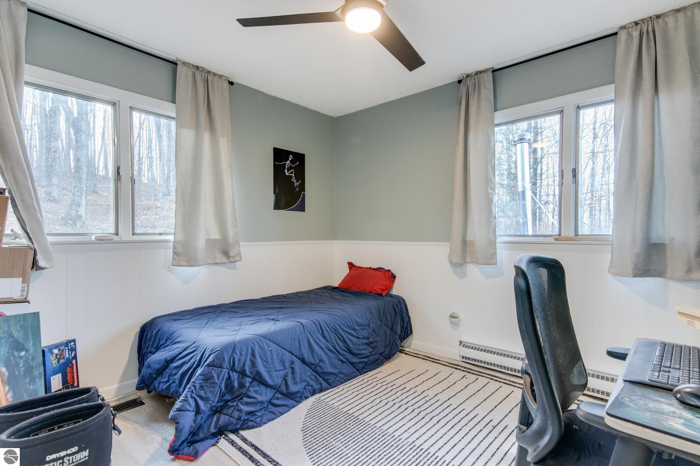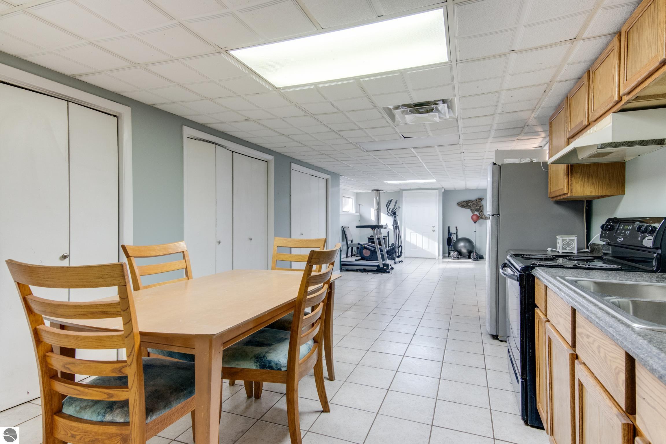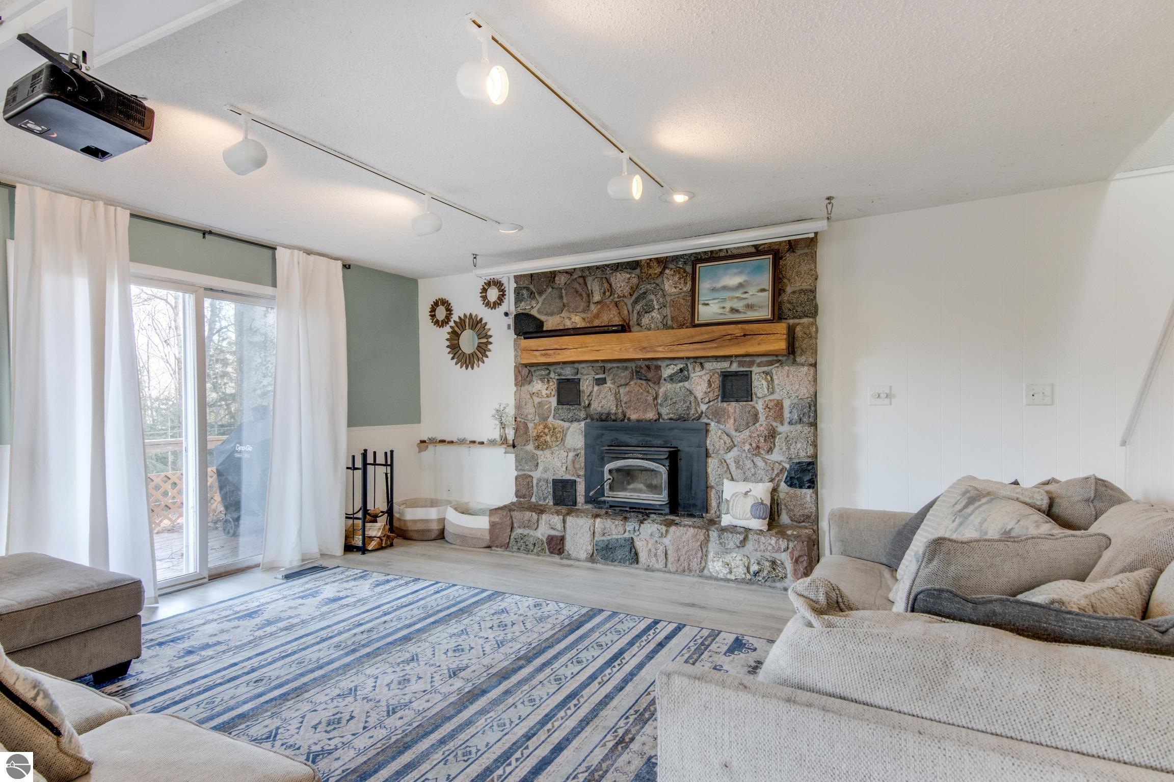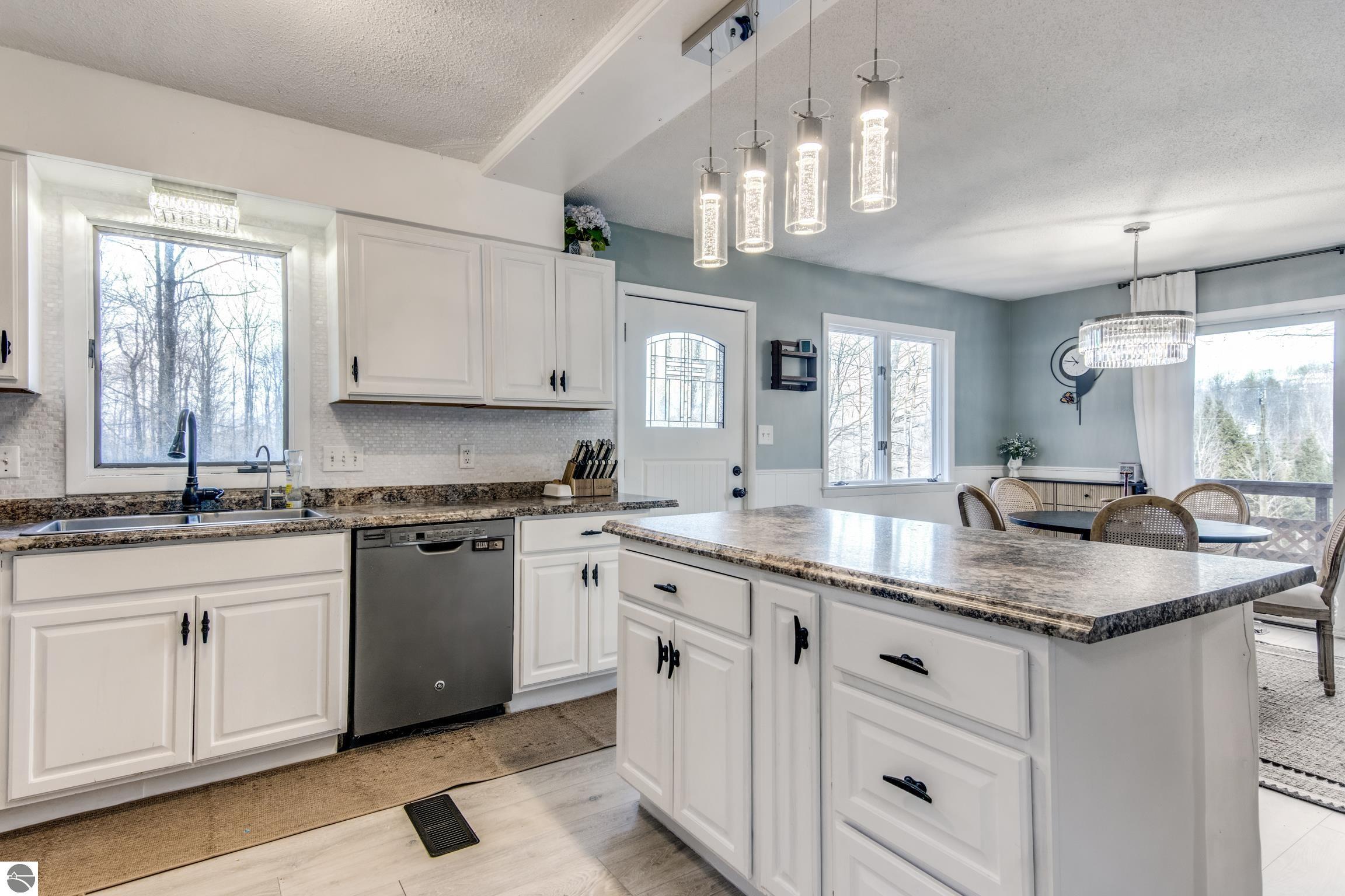 This property offers 2.75 acres of land, complemented by a spacious four-bedroom, three-bath chalet and an oversized three-car garage just a few minutes from town and year-round recreation. You’ll appreciate recent updates that include updated lighting, refrigerator, mother of pearl backsplash, luxury vinyl plank flooring, and reverse osmosis filtration for both the refrigerator and cold-water tap. On the main floor there is a welcoming great room, with a natural stone fireplace & access to a wrap-around deck. The island kitchen offers ample space for preparing meals for gatherings. The laundry is conveniently located on the main level, along with a bedroom and a full bath for ease of daily living. Upstairs, you will find two additional bedrooms share a full bath. The lower level serves as a complete separate living or guest suite, featuring a bedroom or office, a 3/4 bath, a second full kitchen, and a family room with wood stove—accessible from an exterior entrance and suitable for use as a game room or extra living space. The expansive garage accommodates multiple vehicles and equipment and includes a wood stove for heating. The generous yard ensures privacy, and the fenced garden area will enable you to test your green thumb. An additional garden building provides space for storage or may serve as a chicken coup. The property is conveniently located just minutes from the charming village of Bellaire, Shanty Creek Resort, the Cedar River and some of the region’s finest lakes and trails.
