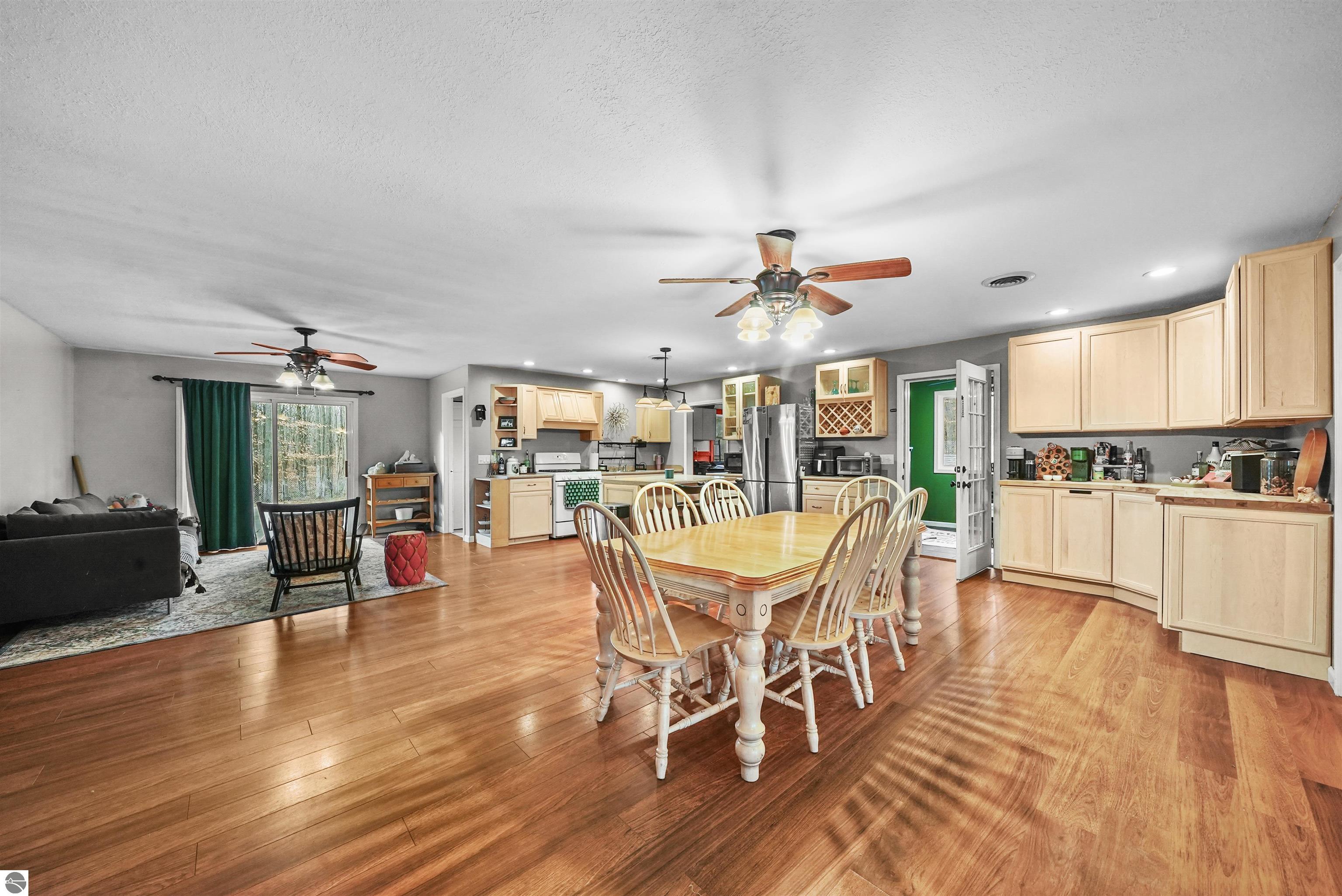 This spacious four-bedroom, two-bath home offers more than 2,000 square feet of comfortable living space set on ten beautifully wooded acres in Fife Lake. You will step inside to true main-floor, no-step entry living! The home is filled with natural light, featuring a very large open-concept dining, kitchen and living area that creates a warm and welcoming atmosphere...complete with a coffee bar and a walk-in pantry. Surrounded by nature yet close to trails and all the recreational opportunities that northern Michigan is known for, the property blends privacy with convenience. A stamped concrete walkway and patio welcome you home and provide inviting outdoor spaces to relax. The garage has one stall but it also has a workshop area which offers practical storage. There is ample room to add a pole building to house all your toys and equipment. With abundant wildlife and a serene setting, this property is ready to be your peaceful escape or your year-round residence. NEW FURNACE AND NEW HOT WATER HEATER INSTALLED 12/2025,