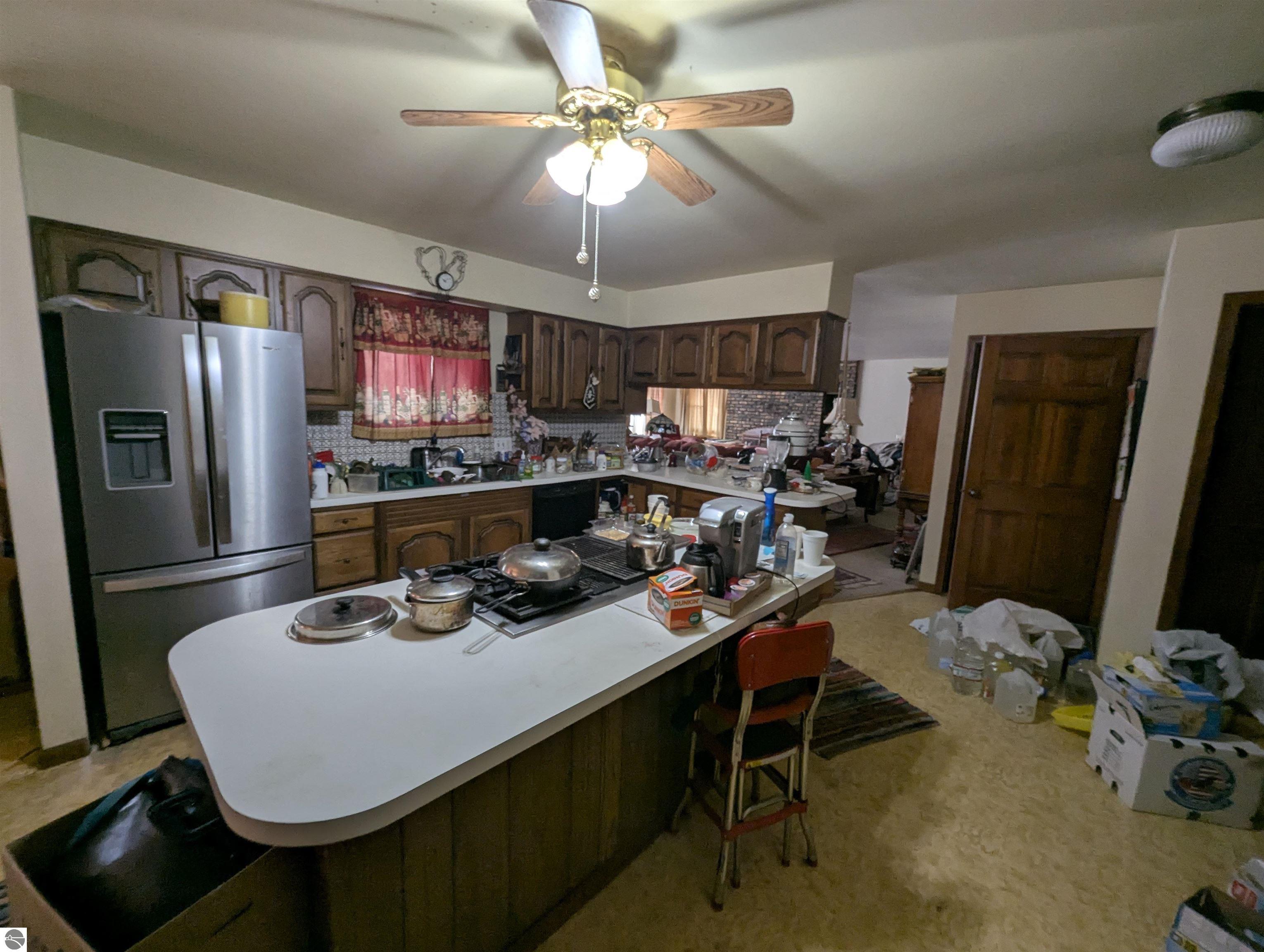 Spacious three bedroom, two bath ranch home on just under 5 acres! A secluded wooded setting awaits that also offers close proximity to schools, area conveniences/amenities, US-23, M-61, and I-75! All main level living is available with this sprawling home with a large kitchen with island and breakfast nook area, formal dining room, spacious living room w/ a view of the back yard, primary bedroom with private bathroom, and laundry just off the two car attached garage. The full basement has an area that could be converted into more living space, separate rooms for storage and mechanicals. Updated furnace and electrical panel. The home does need some love and attention to make it shine again!