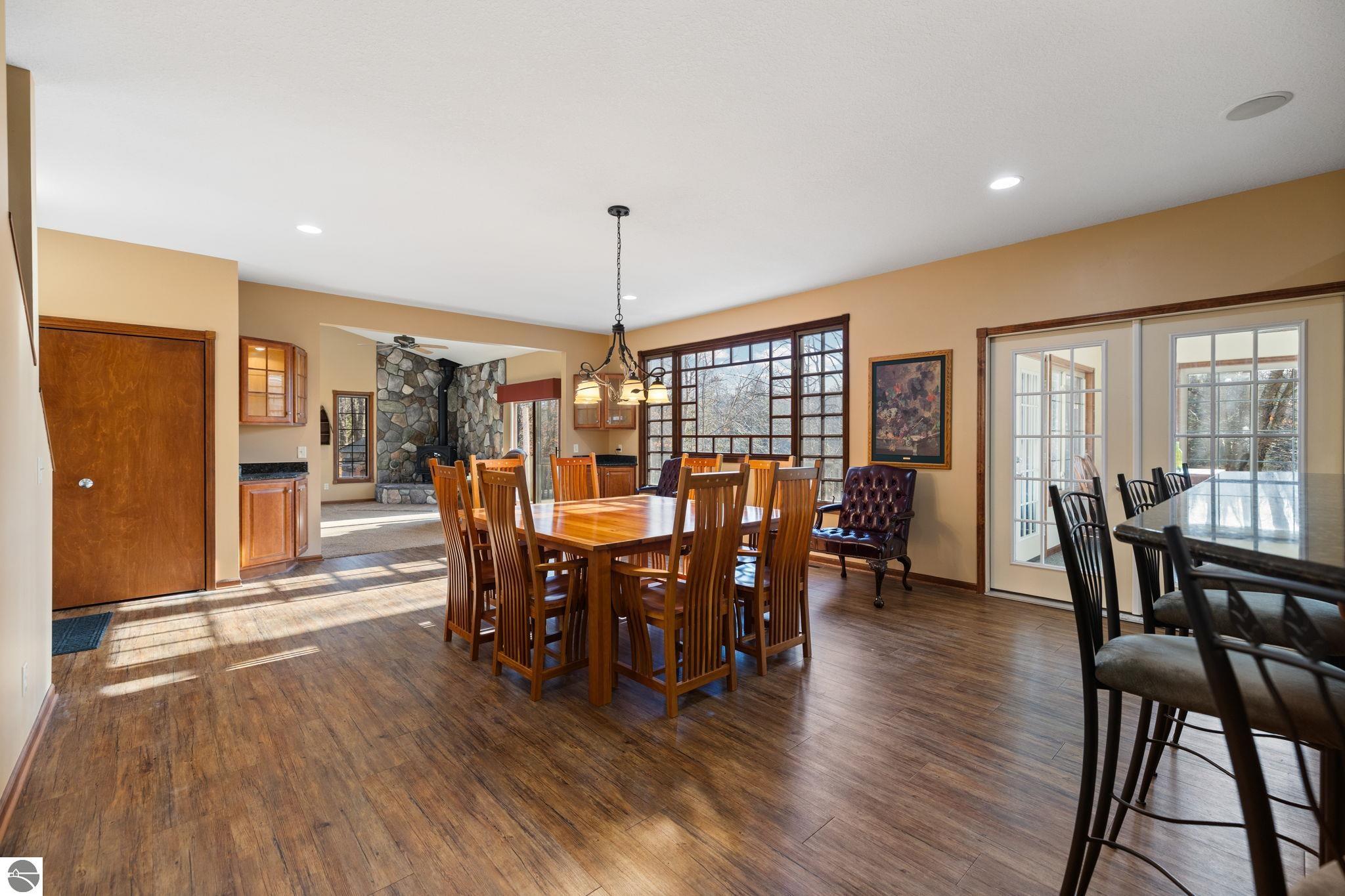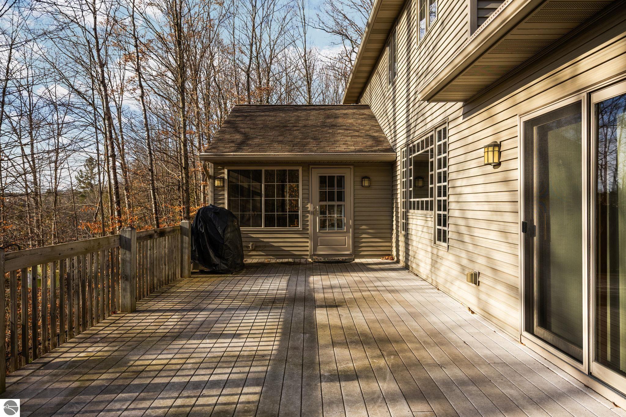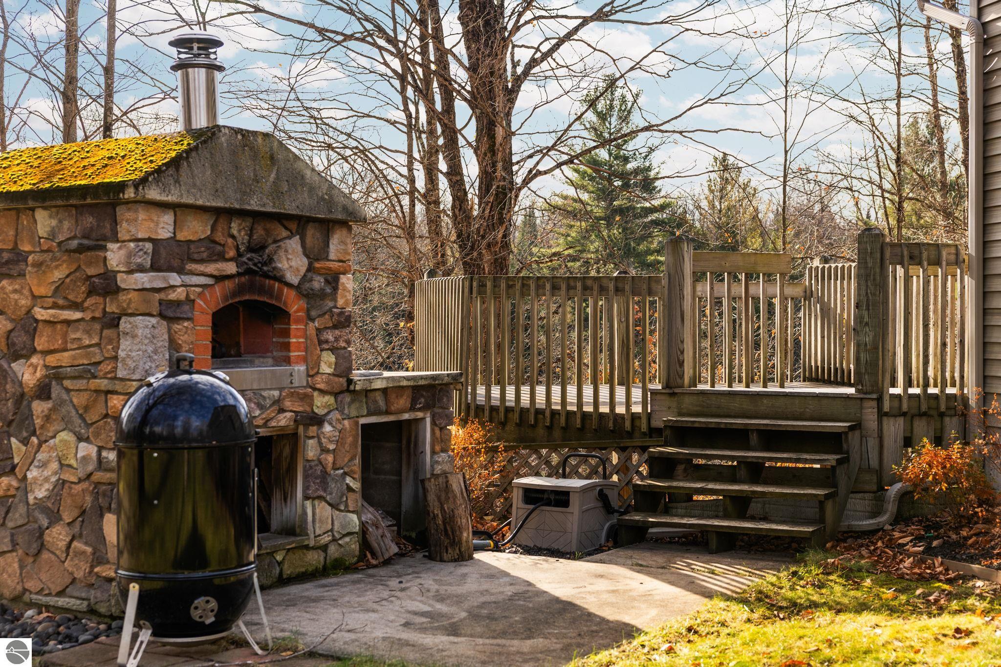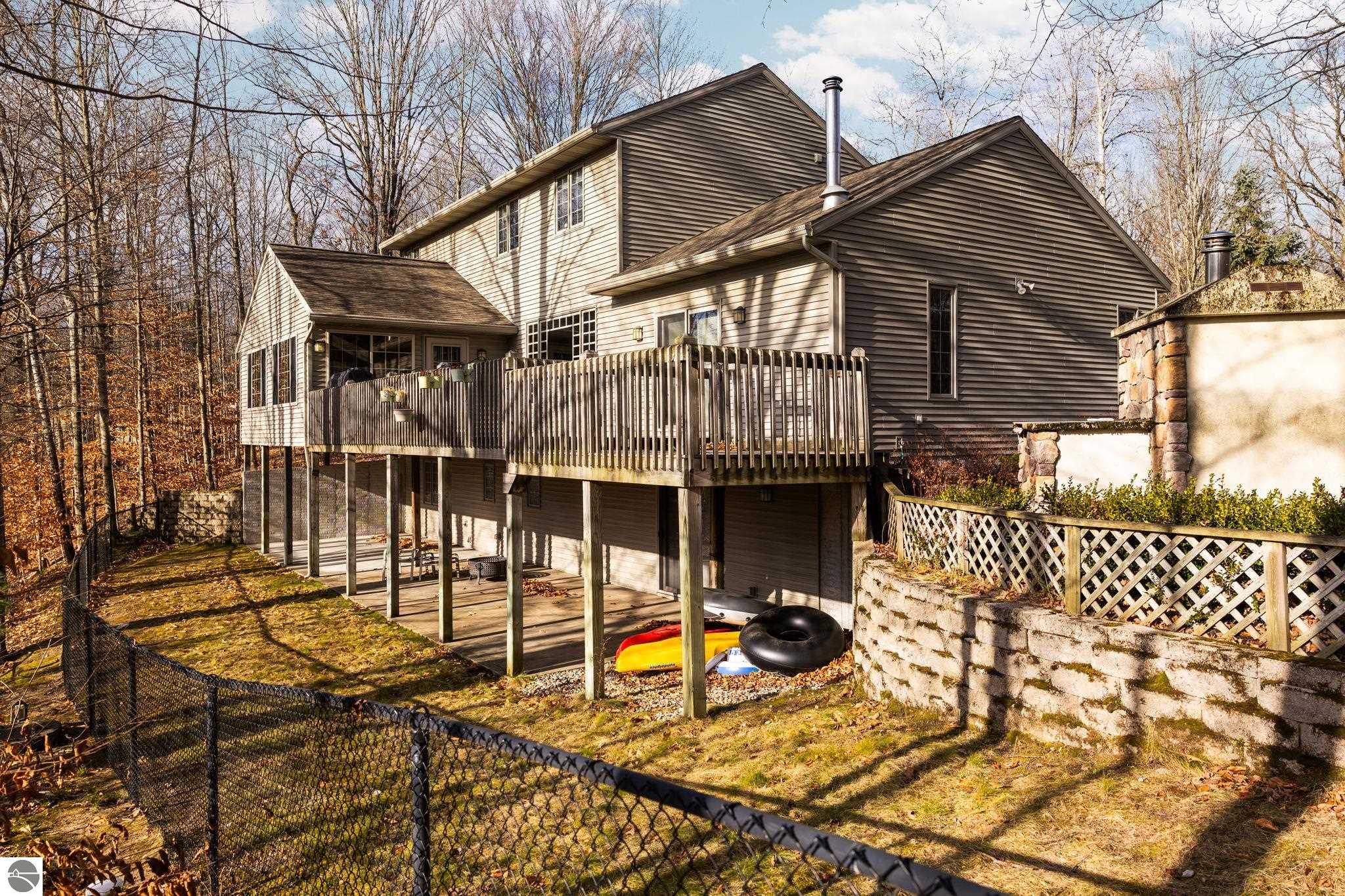 Beautiful, spacious riverfront retreat on the Betsie River. Experience pure Northern Michigan serenity in this stunning home offering over 200 feet of private frontage on the Betsie River, a state-designated wild and scenic natural waterway. Perfect for outdoor enthusiasts, the river is ideal for canoeing, kayaking, and world-class fishing. Home to rainbow, brown and brook trout, as well as seasonal fresh water king salmon runs. This inviting residence includes 4 spacious bedrooms and a finished walk-out lower level, providing extra living space and easy access to the outdoors. Enjoy nature fro the expansive multi-level decking, ideal for entertaining, relaxing or takin in the tranquil wooded views. An impressive outdoor stone wood fired pizza oven elevates your outdoor gatherings, while the fenced-ion backyard offers privacy and security. Inside the home boasts a chef's dream kitchen, complete with stainless steel appliances granite countertiops, and abundant workspace, perfect for cooking, hosting and everyday living. Surrounded by mature trees and peaceful natural beauty, this property offers the perfect blend of comfort, recreation and up-north charm. Located just one mile from Crystal Mountain and has potential for an Air B&B