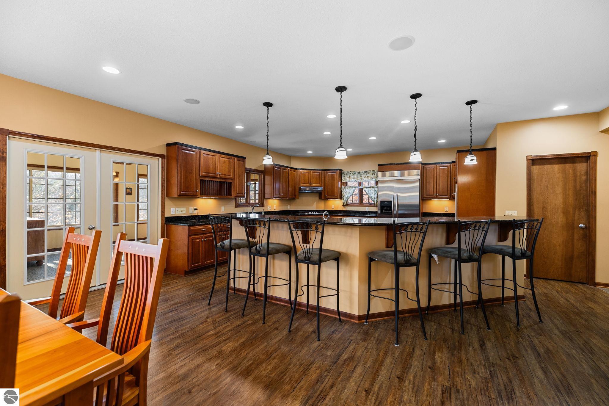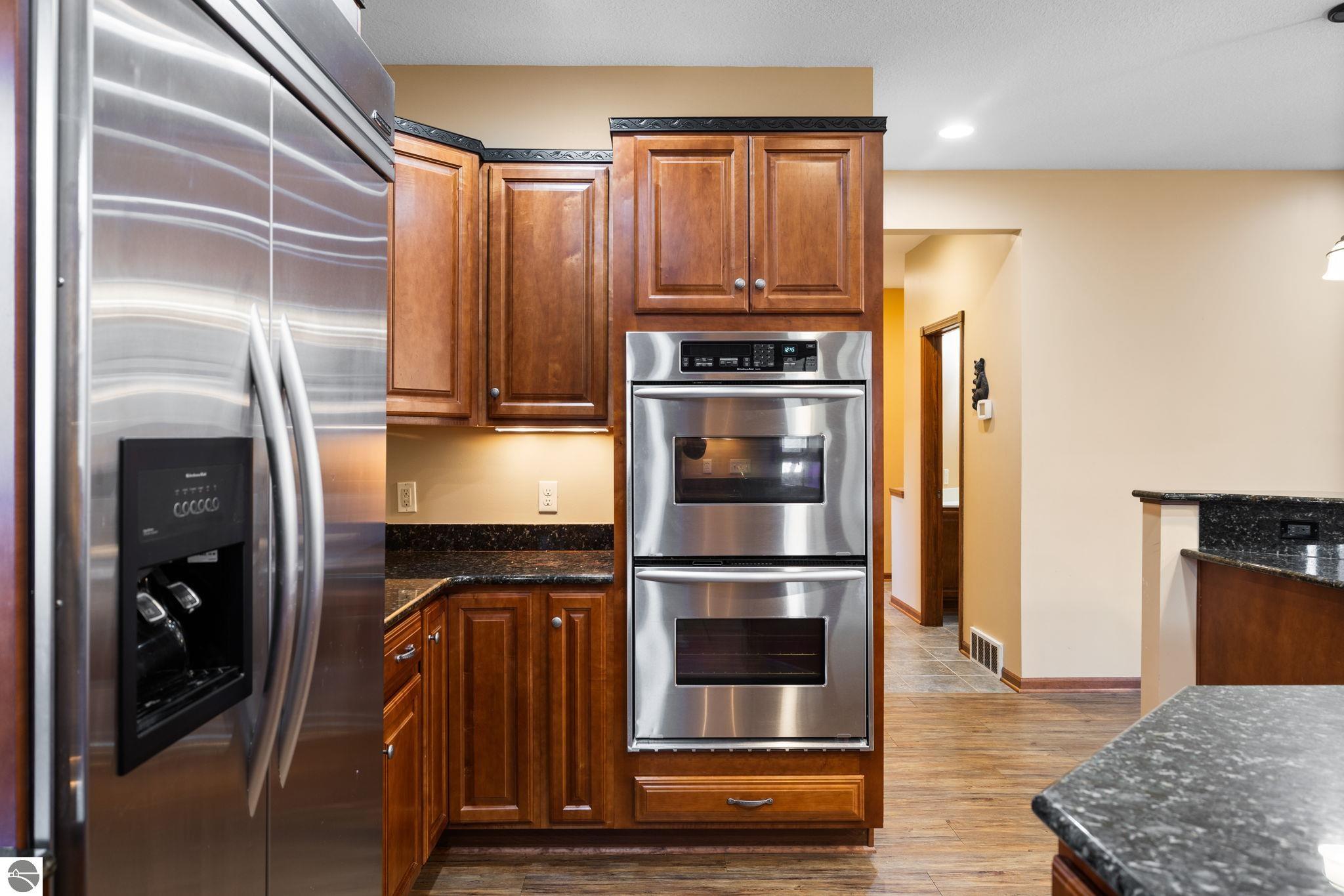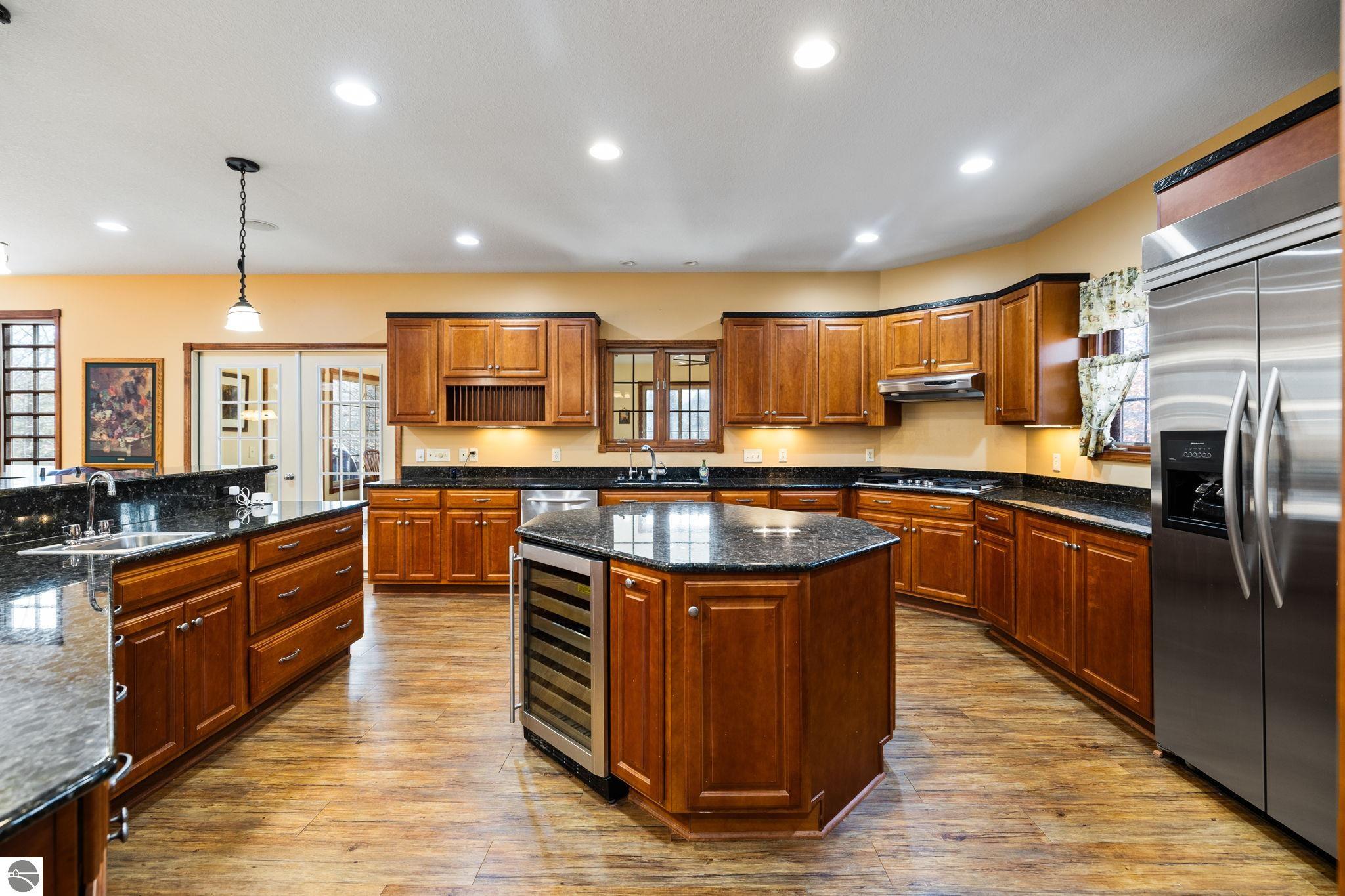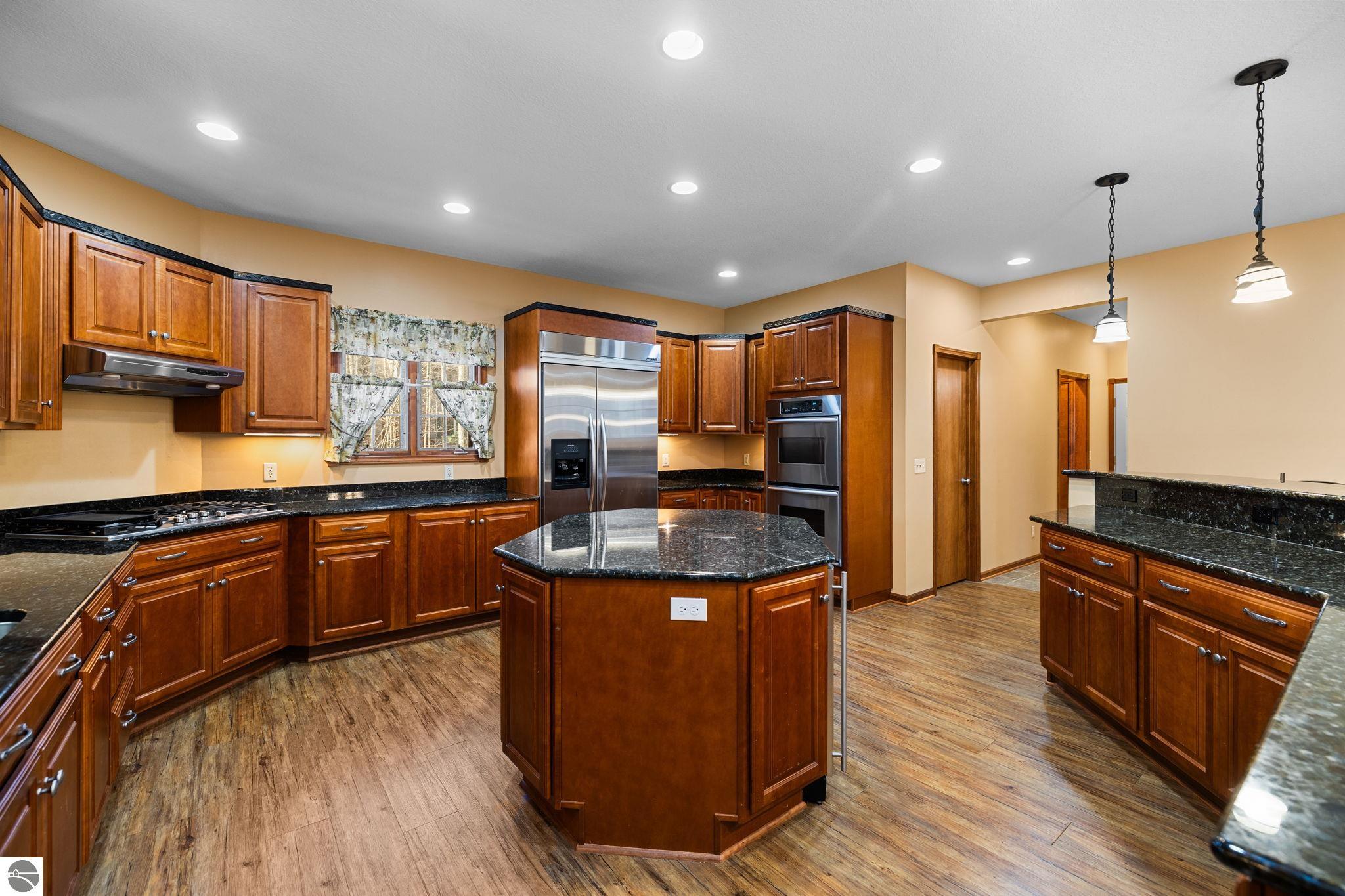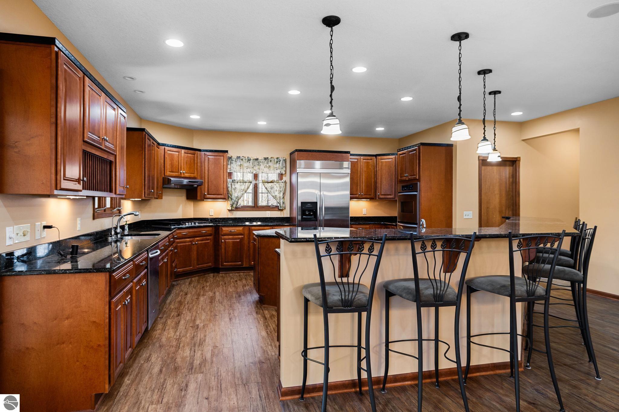 Beautiful, spacious riverfront retreat on the Betsie River. Experience pure Northern Michigan serenity in this stunning home offering over 200 feet of private frontage on the Betsie River, a state-designated wild and scenic natural waterway. Perfect for outdoor enthusiasts, the river is ideal for canoeing, kayaking, and world-class fishing. Home to rainbow, brown and brook trout, as well as seasonal fresh water king salmon runs. This inviting residence includes 4 spacious bedrooms and a finished walk-out lower level, providing extra living space and easy access to the outdoors. Enjoy nature fro the expansive multi-level decking, ideal for entertaining, relaxing or takin in the tranquil wooded views. An impressive outdoor stone wood fired pizza oven elevates your outdoor gatherings, while the fenced-ion backyard offers privacy and security. Inside the home boasts a chef's dream kitchen, complete with stainless steel appliances granite countertiops, and abundant workspace, perfect for cooking, hosting and everyday living. Surrounded by mature trees and peaceful natural beauty, this property offers the perfect blend of comfort, recreation and up-north charm. Located just one mile from Crystal Mountain and has potential for an Air B&B