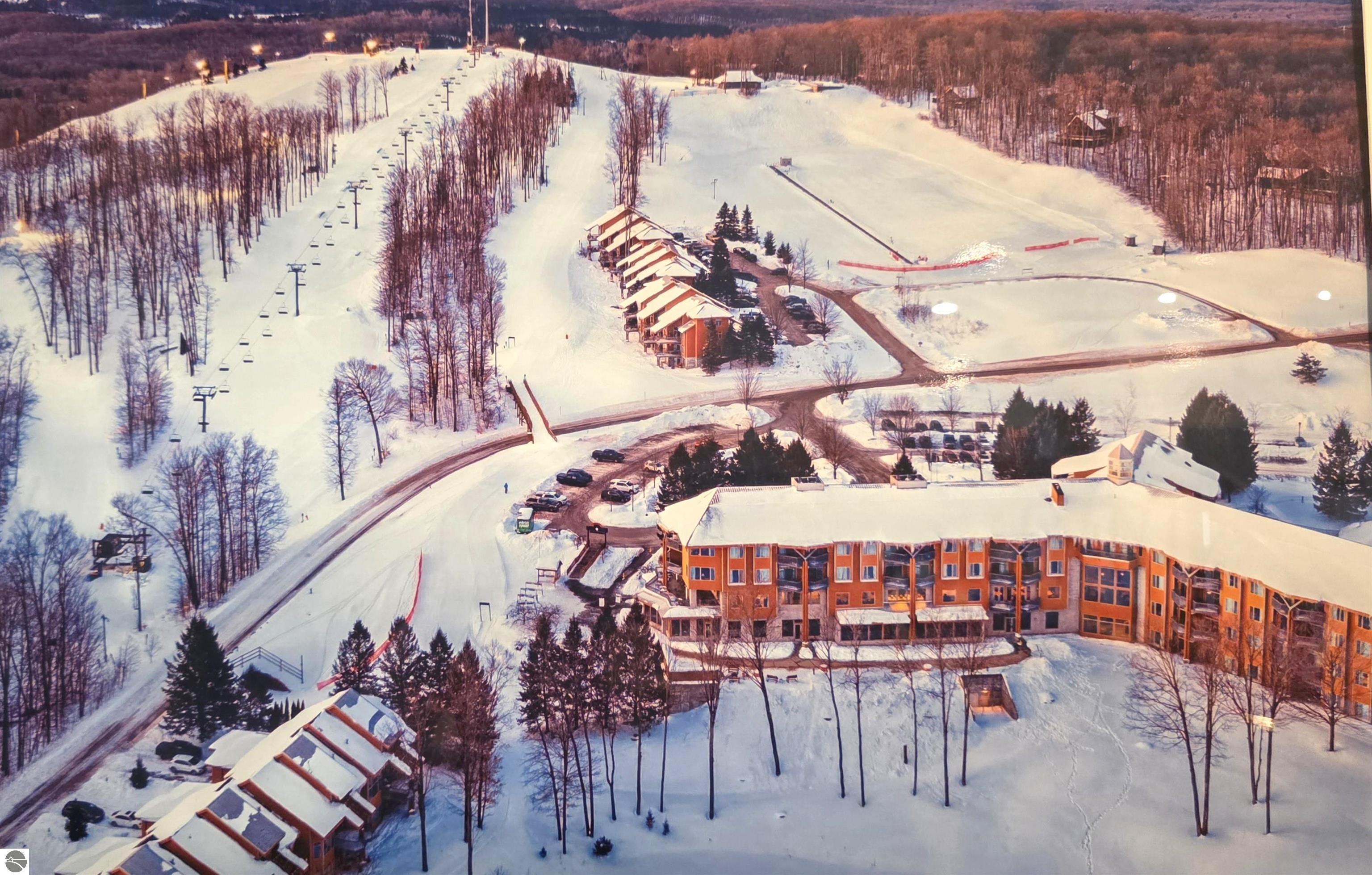 Cedar River Lodge at Shanty Creek Resort. This budget-friendly one-bedroom main-level suite is the ideal space to furnish and decorate just the way you want. Just minutes from the ski hills, golf course, year-round pool and jacuzzi, and the learn-to-ski center, this is the perfect spot for you. Here you will find a vacationers' kitchenette; great for light meals and snacks. Living room has a gas fireplace and birds eye view of the all season pool. Large bathroom with double granite sink, jacuzzi tub, and walk in shower. The Cedar River Lodge is a modern hotel complete with restaurant, game room, all season pool and hot tubs with the unique option to be in or out of the resorts on-site professional rental program. The program provides rental income to help offset expenses while giving you time up north as well. On-rental suite owners can take advantage of the free resort shuttle to the charming Village of Bellaire for a relaxing evening out. The well-managed Association has a dues structure that includes internet services, heat, electricity, cable TV, water, trash and much more.