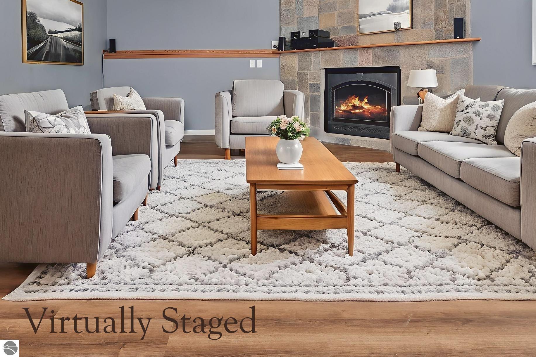 Move-in ready 4-bedroom, 3-bath home. This spacious property features an open floor plan, oak hardwood floors, and a bright kitchen overlooking the living and dining areas. The main-floor primary suite includes a private bath and large closet, with additional bedrooms thoughtfully separated for privacy. Enjoy a finished walkout lower level complete with a stone-accent gas fireplace, wet bar, and flexible living spaces—ideal for a family room, home office, or gym. A main-floor bedroom with private garage entry is perfect for guests or a studio. Outside, relax on the deck with peaceful pond views, or gather around the firepit surrounded by mature trees. With a 3-car garage, quiet streets, and close access to schools, parks, and downtown Kingsley and Traverse City, this home offers comfort, space, and convenience.