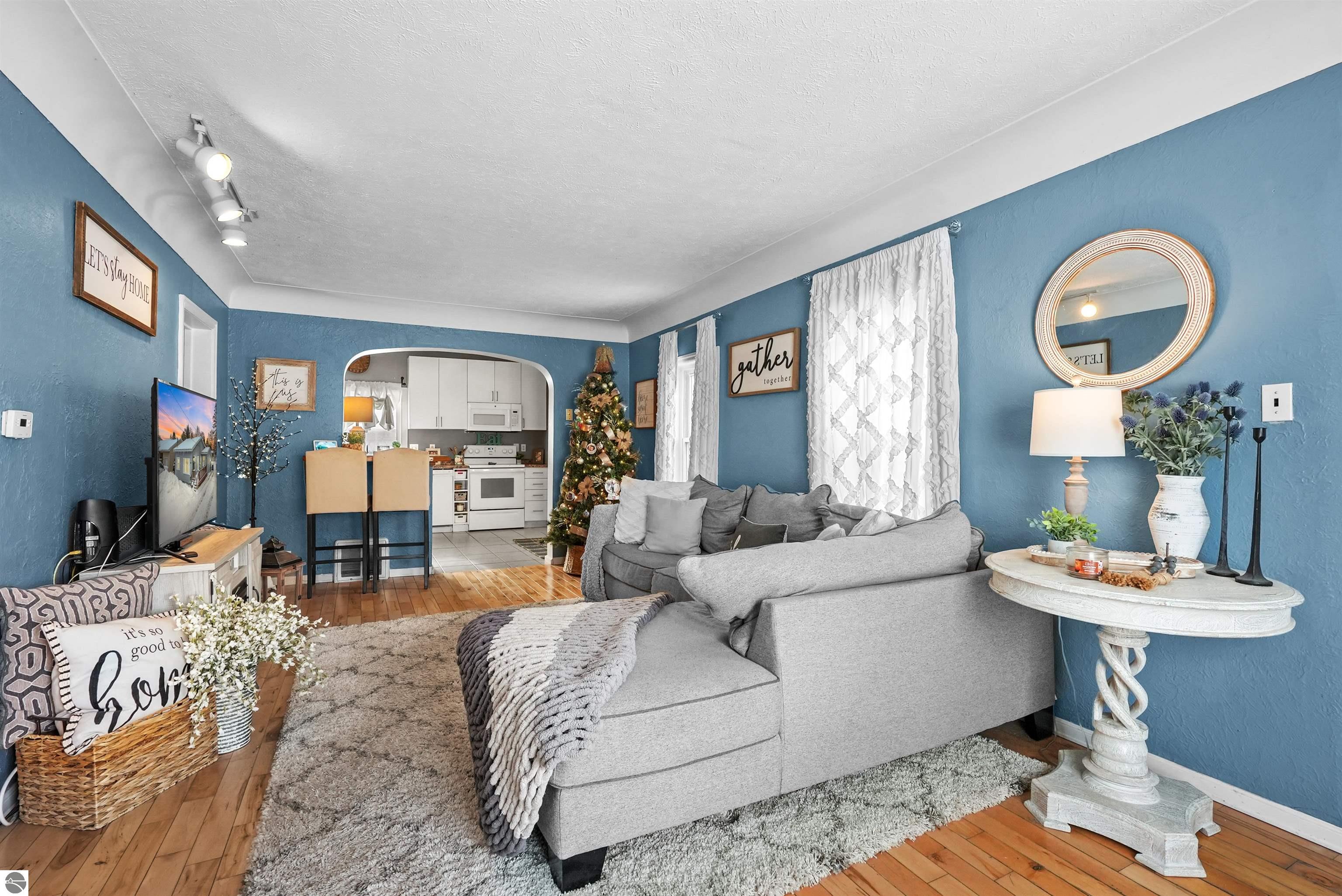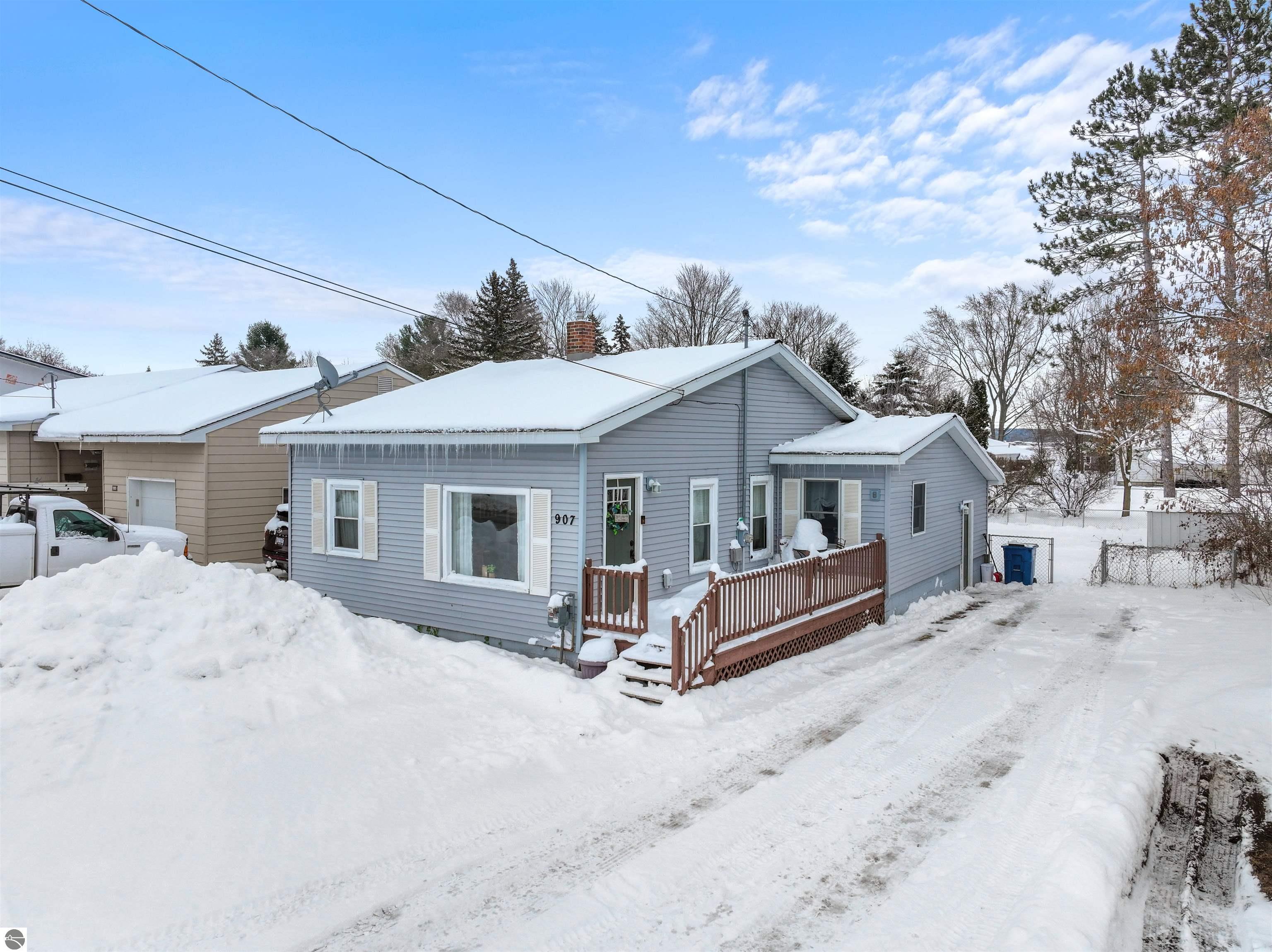 Welcome to this charming 2-bedroom home featuring beautiful maple wood flooring throughout and an inviting open floor plan. The spacious living area offers a vaulted ceiling with recessed lighting, a cozy dining nook, and a bar counter perfect for casual meals or entertaining. A full basement provides ample storage or future finishing potential, while the large mudroom adds everyday convenience. Step outside to enjoy the expansive fenced-in backyard, offering plenty of room for pets, play, or gardens. This prime location is truly unbeatable—walking distance to Lake Cadillac, downtown Cadillac, the lakefront walking path, pickleball courts, and Cadillac High School. Spend your days strolling around beautiful all-sport Lake Cadillac, enjoying local shops and restaurants, or taking advantage of the nearby recreation. A wonderful blend of comfort, convenience, and Northern Michigan lifestyle—don’t miss this one!