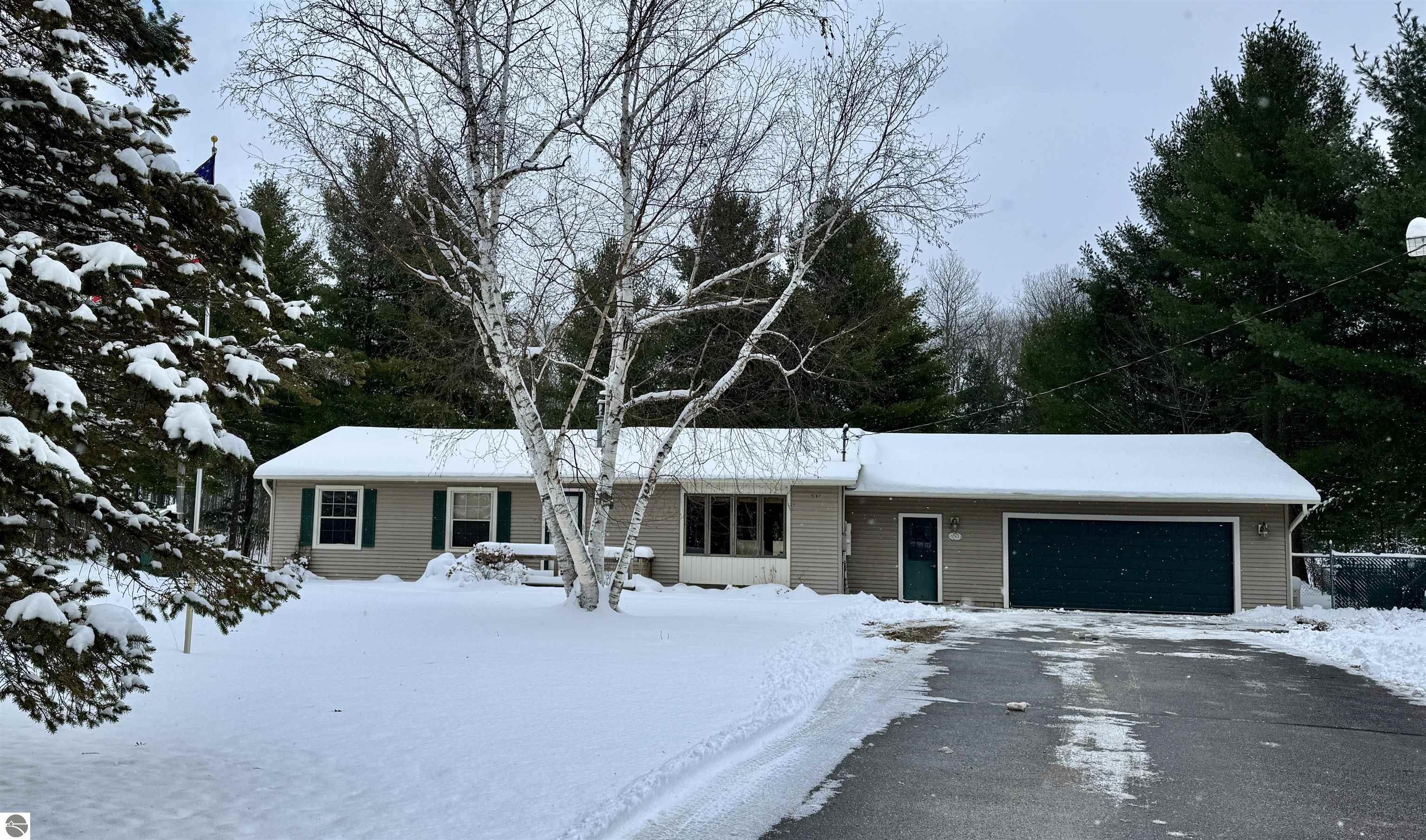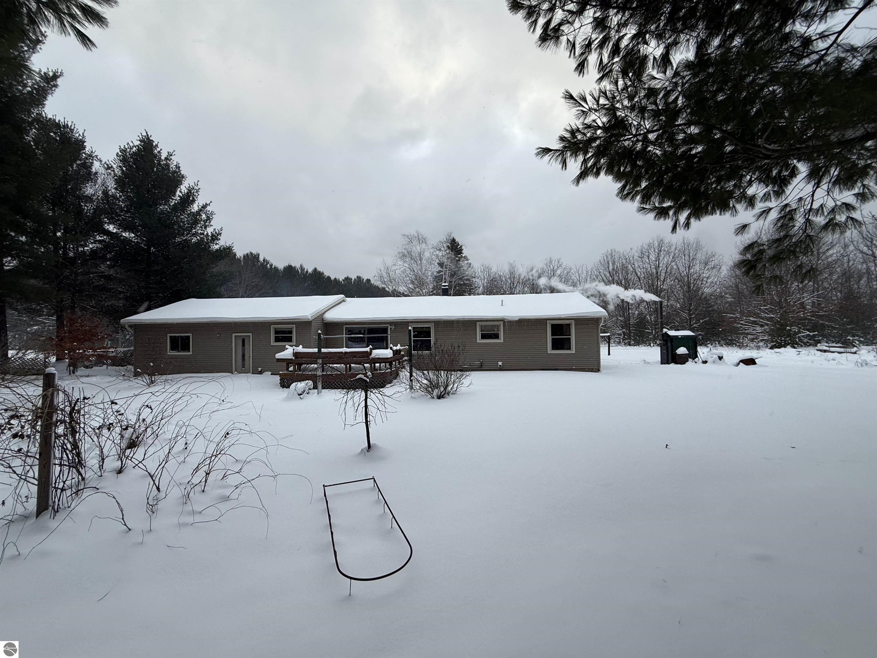 Peaceful countryside setting on 10 acres for this Ranch style home. Open floor plan w/ updated kitchen, new granite counters & cupboards, large island, massive pantry, 3 bedrms & 2 baths. New LVP flooring in the kitchen, dining, living, laundry rms. Heated bathroom floor in main bath. Main floor laundry. Supplemental wood boiler (see specifics in agent comments). Never run out of hot water w/ Rinnai-on- demand hot water heating system. Generac Generator will power entire house. Pole buildings allowed. New roof Oct.-2025. Located near Duck Lake and Interlochen, known for its arts center with various events, culture, lakes, rivers & golf.