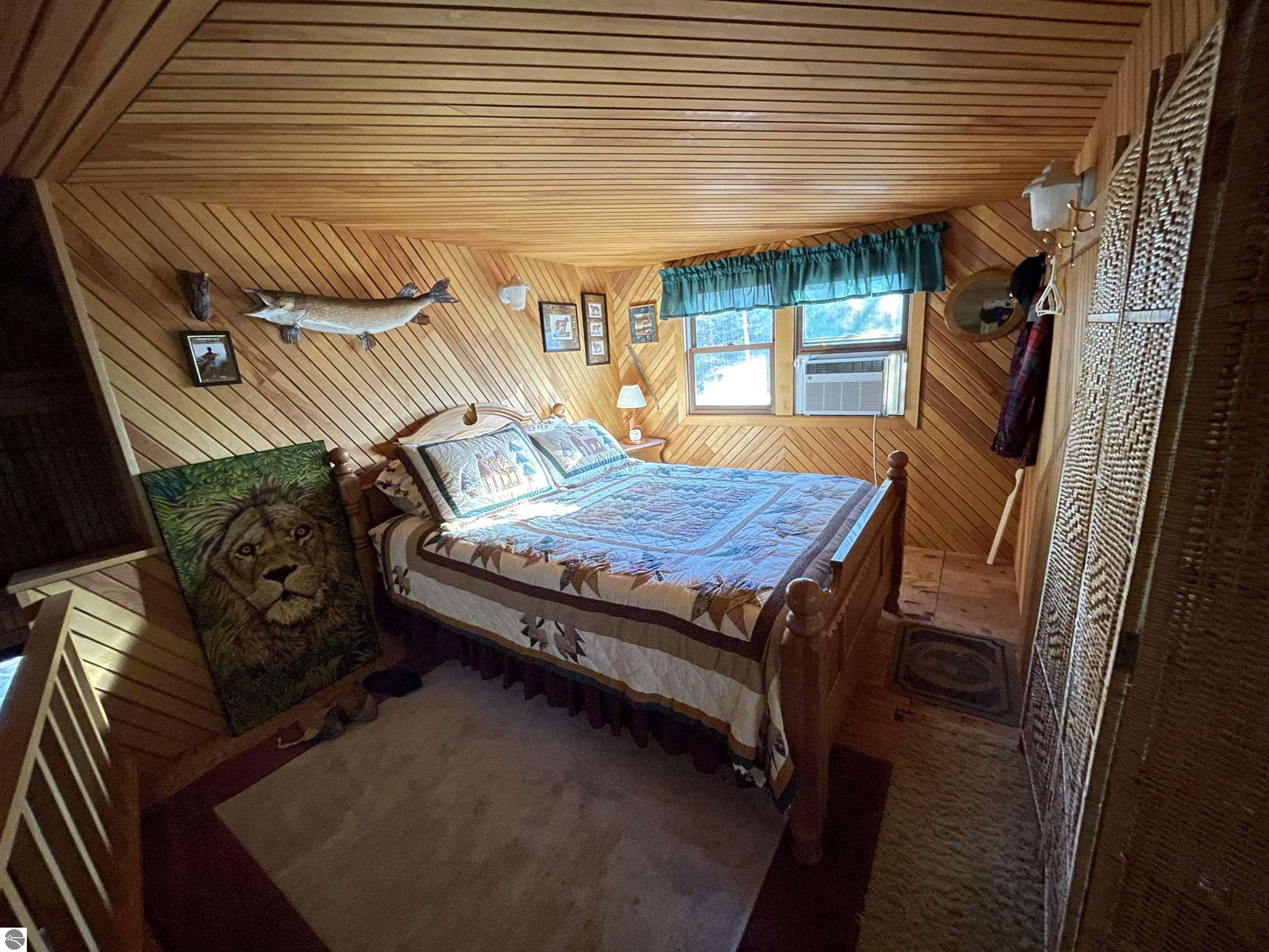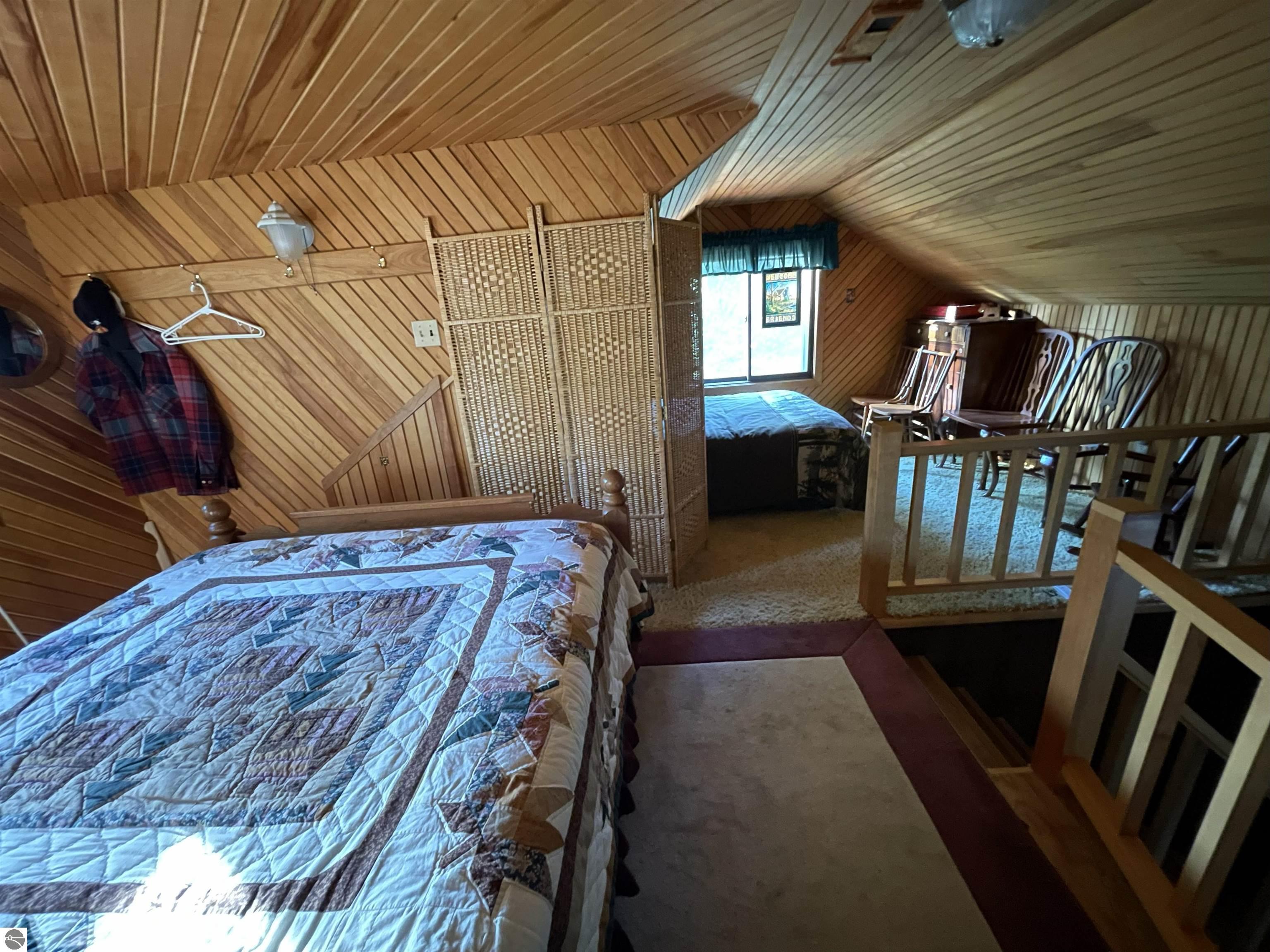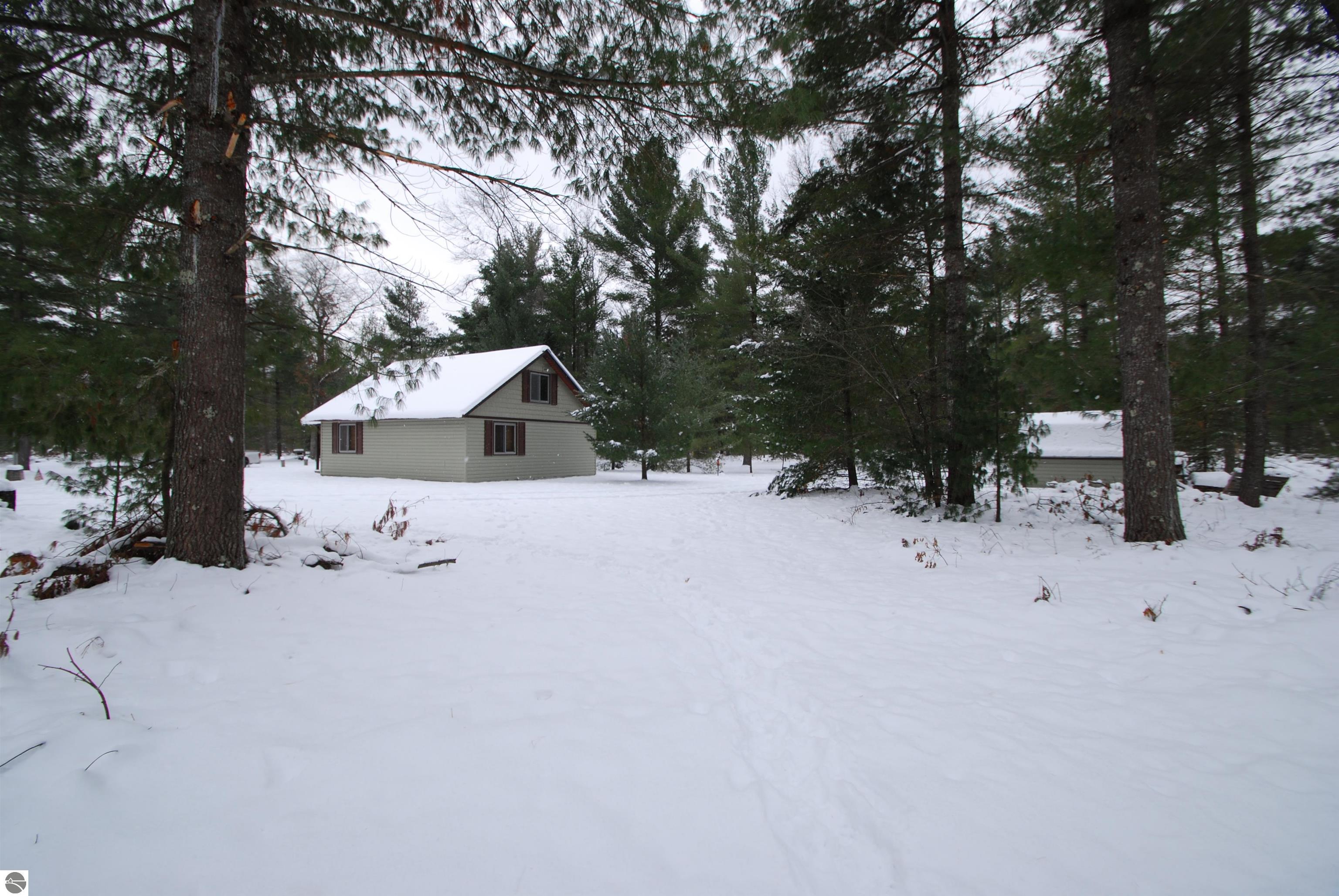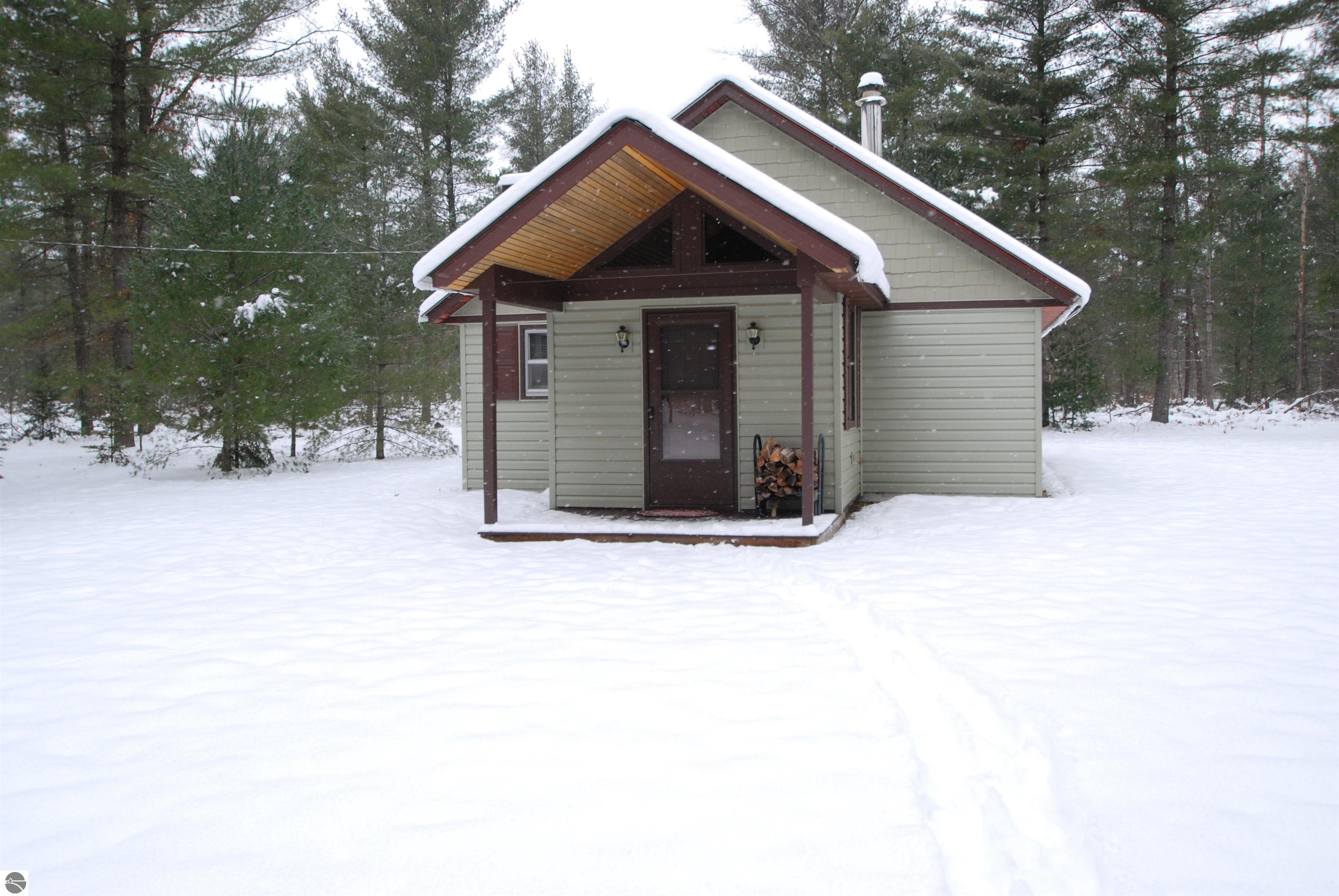 This "one of a kind" hunt camp is waiting for you to take that "Buck" and make memories!!! 20 acres m/l fronting M-33. The well maintained cabin is all set for large gatherings! Covered composite deck leads into a foyer entrance. First thing you will notice is the birch bead board and planking covering the vaulted ceiling and most of the walls. Open living area with spacious kitchen. Living room has a free standing wood stove. Two bedrooms and a 3/4 bath make up the remaining main level. Staircase leads to the loft area with dormer ~extra sleeping space and two spacious bedrooms. Exterior has newer vinyl siding and steel roofing. Enjoy cooking outdoors over the fire pit. Close to the cabin is a garden shed for storage and a small pavilion plus circle drive. Borders 1,000 acres of state land on the north property line. Great location not far from I-75 and approximately 7 miles to West Branch.