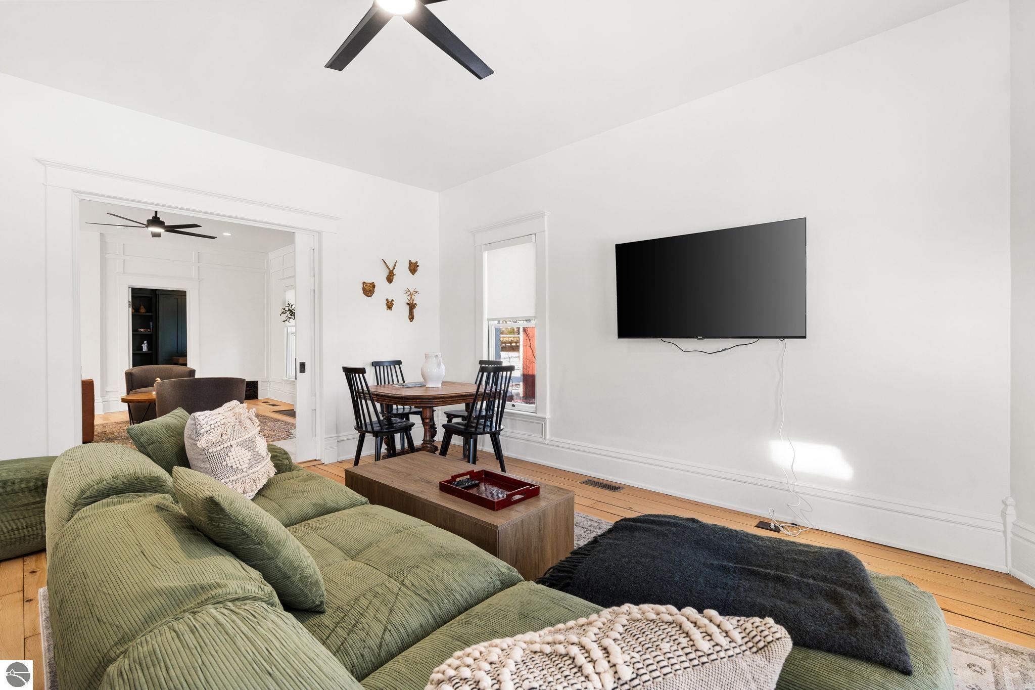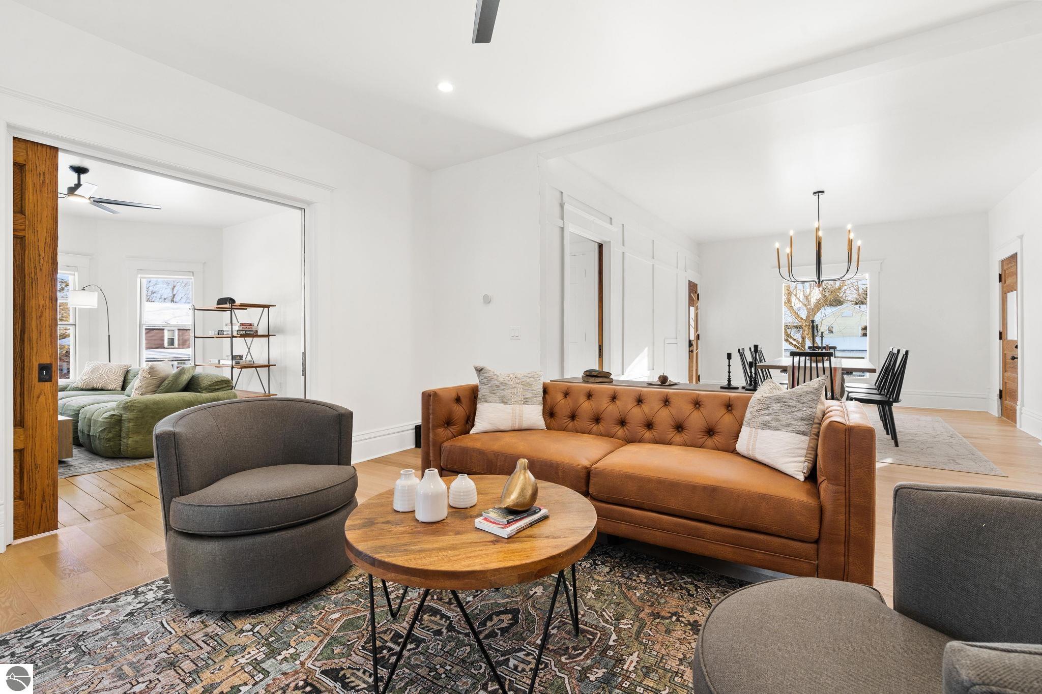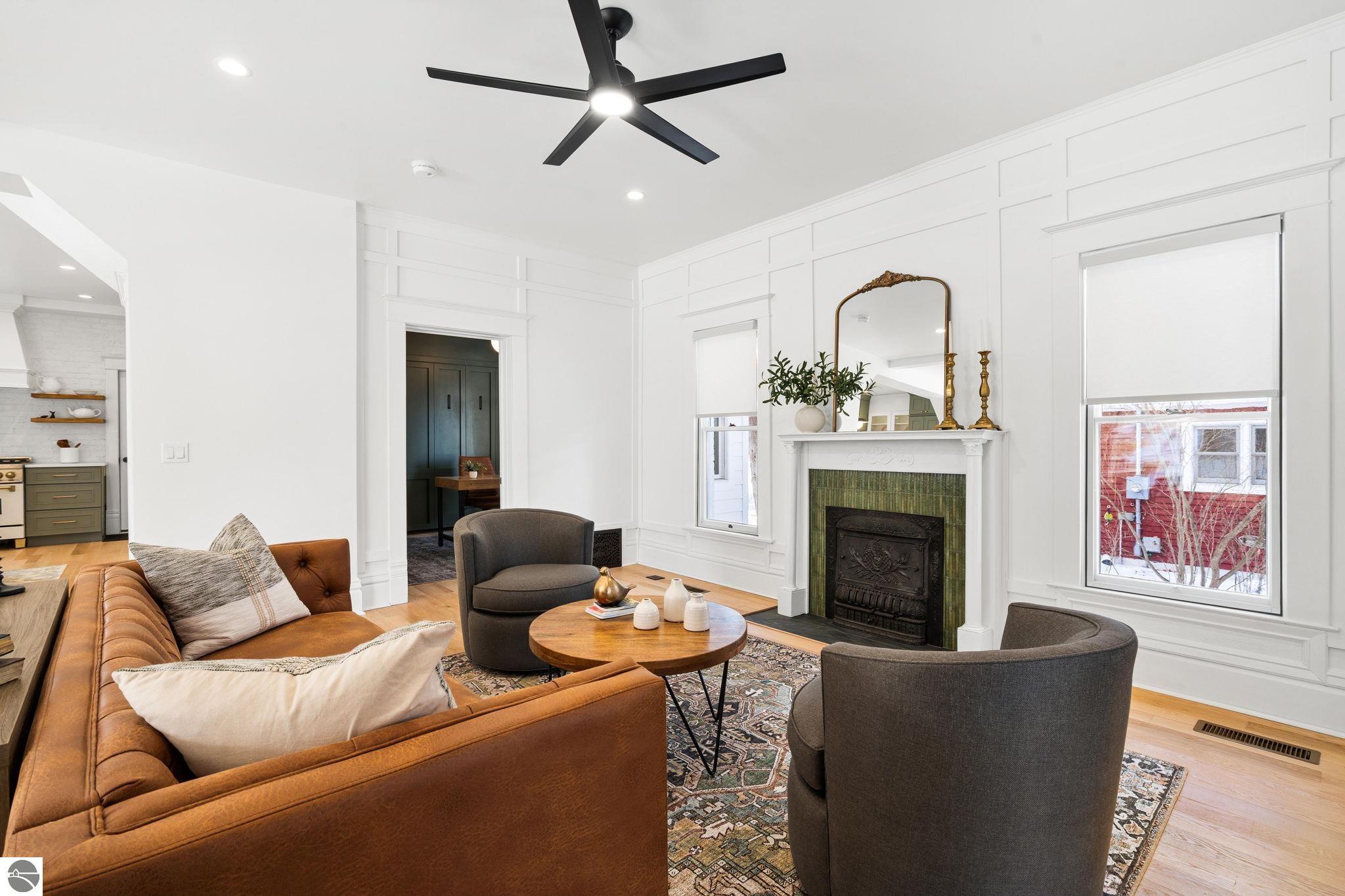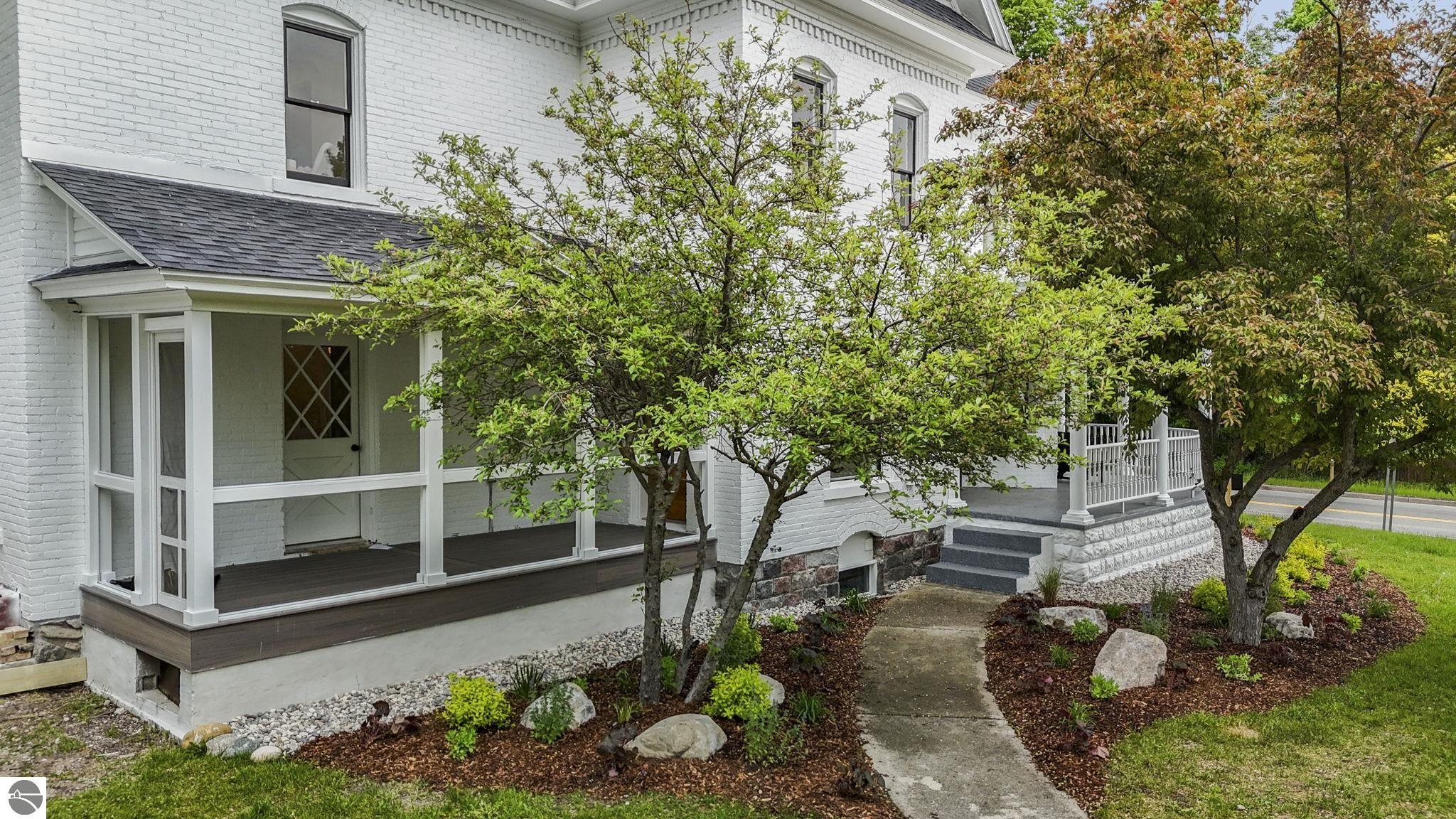 Welcome to this beautifully renewed 1905 Victorian that blends timeless craftsmanship with modern luxury and comfort. This historical home has undergone a complete restoration, ensuring it’s ready for another century of Northern Michigan living. Original features, including pocket doors, the grand staircase, intricate wood trim, doors, and many windows have been meticulously preserved. Behind the charm, every major system has been brought up to today’s standards: new architectural roof shingles, all new electrical and plumbing, two new high-efficiency HVAC systems, and upgraded attic insulation (R-37). The designer kitchen is a standout, equipped with a dual-fuel six-burner range, French-door refrigerator, microwave drawer, dishwasher, and a beverage center. It opens seamlessly to a generous dining area and a living room anchored by the original fireplace. The main level also includes a traditional parlor, a flexible office/guest space with Murphy bed and a full bath behind a hidden door, a powder room, and a spacious laundry/mudroom. The second floor, accessible from both the front staircase and the restored rear stairs, features four bedrooms. The primary suite offers a modern private bath and walk-in closet, while three additional bedrooms and two updated baths complete the level. Outdoor living shines with a wraparound front porch and a newly added screened porch. A large, walk-up attic and basement provide exceptional storage. An attached 2-car garage and separate carriage house adds versatility. Located within walking distance of downtown Bellaire, this home offers easy access to local restaurants, breweries and shops. Bellaire Public Schools are just a block away, making the setting ideal for enjoying everything this vibrant community offers. Property includes a one-year builder’s warranty. Don't miss this opportunity to own a piece of Bellaire history! Whether you're looking for your own retreat or a high-end short-term rental, this one checks all the boxes!