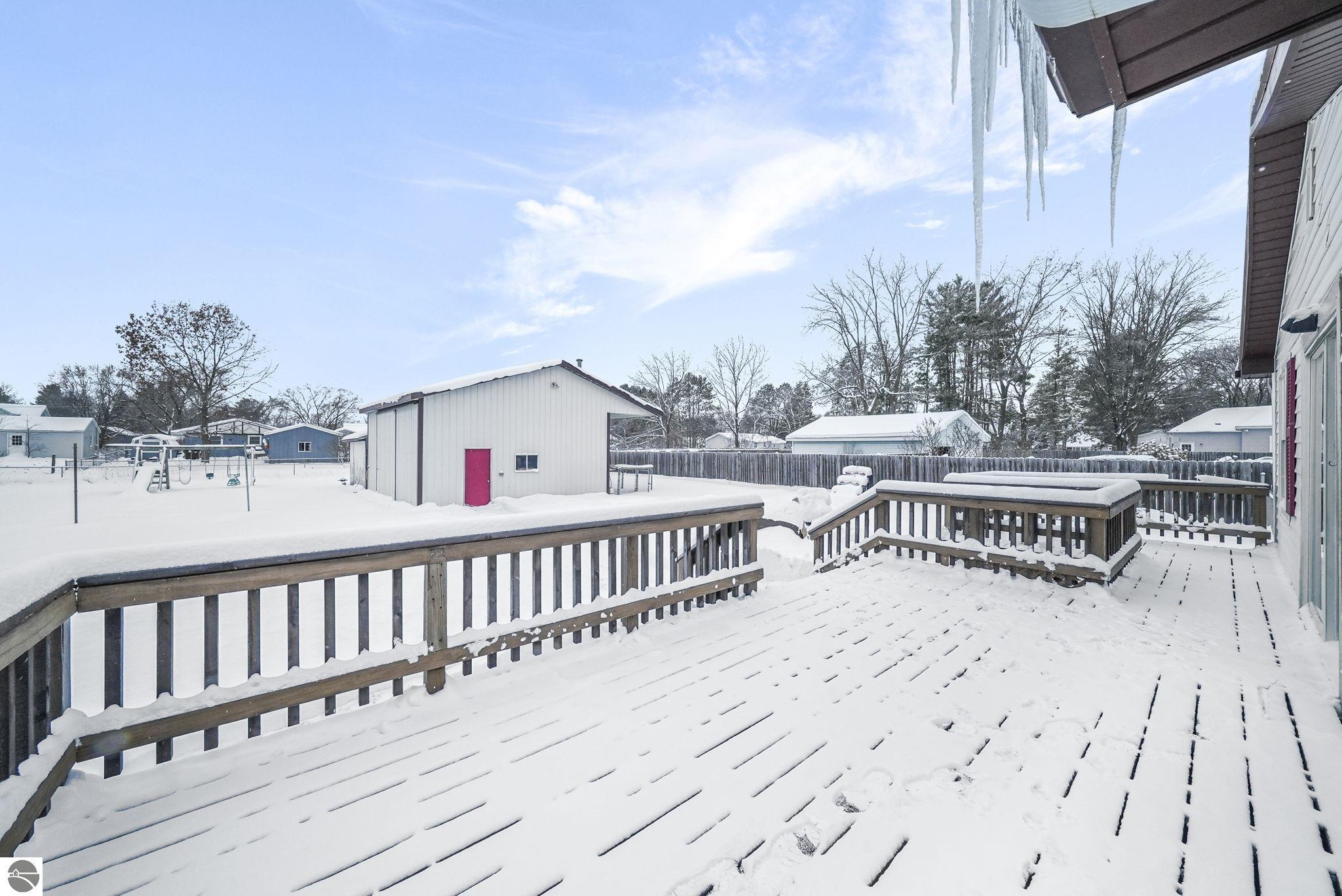 Not too far from Lake Cadillac, Cadillac High School and downtown Cadillac sets this charming 2 bed 1 bathroom home with fully insulated (and heated) pole barn, large fully fenced in yard and ample parking space. There have been a lot of updates made over the years to make this house a home. New flooring, paint, updated bathroom & kitchen and new sewer lines are among the lengthy list! The kitchen area allows for a small dining room area or you can use the large, open concept living room for both dining and living space. The large wrap around deck gives the home that additional touch of grandeur and provides ample space for entertaining. The full unfinished basement leaves options open for more finished square footage and has a beautiful fireplace. With a little work the fireplace can be fully functional. The pole barn has a service door and one very large 16ft x 16ft door that can allow for larger vehicles/boats etc to be brought in with ease from the alleyway behind the property. The overhang served previously as the perfect spot to park an RV. There is 210 AMP service that could be tapped into in the garage. Not only is the pole barn insulated and heated, it also has a large ventilation fan. It is rare to find a gem like this in town. Don't delay!