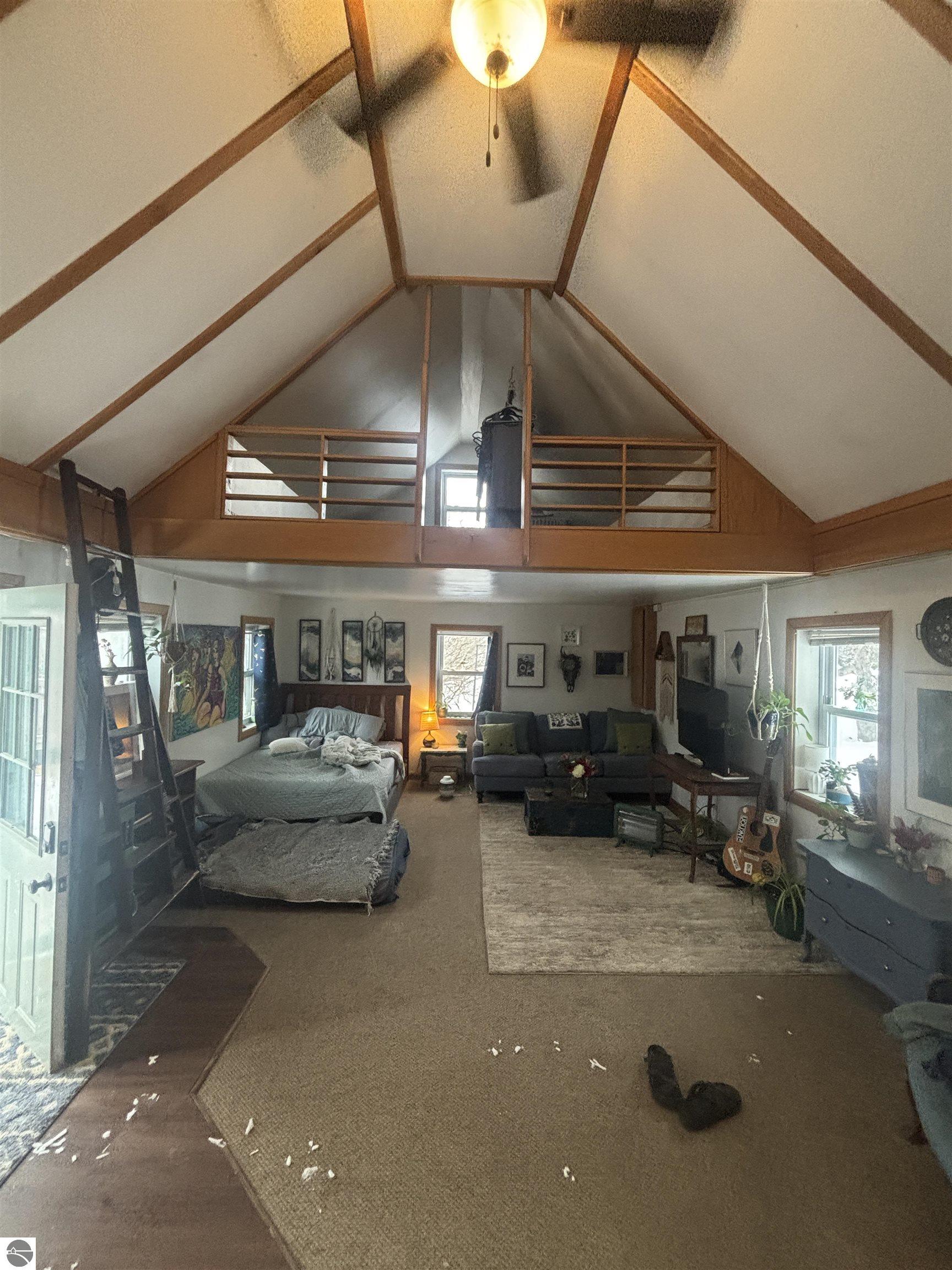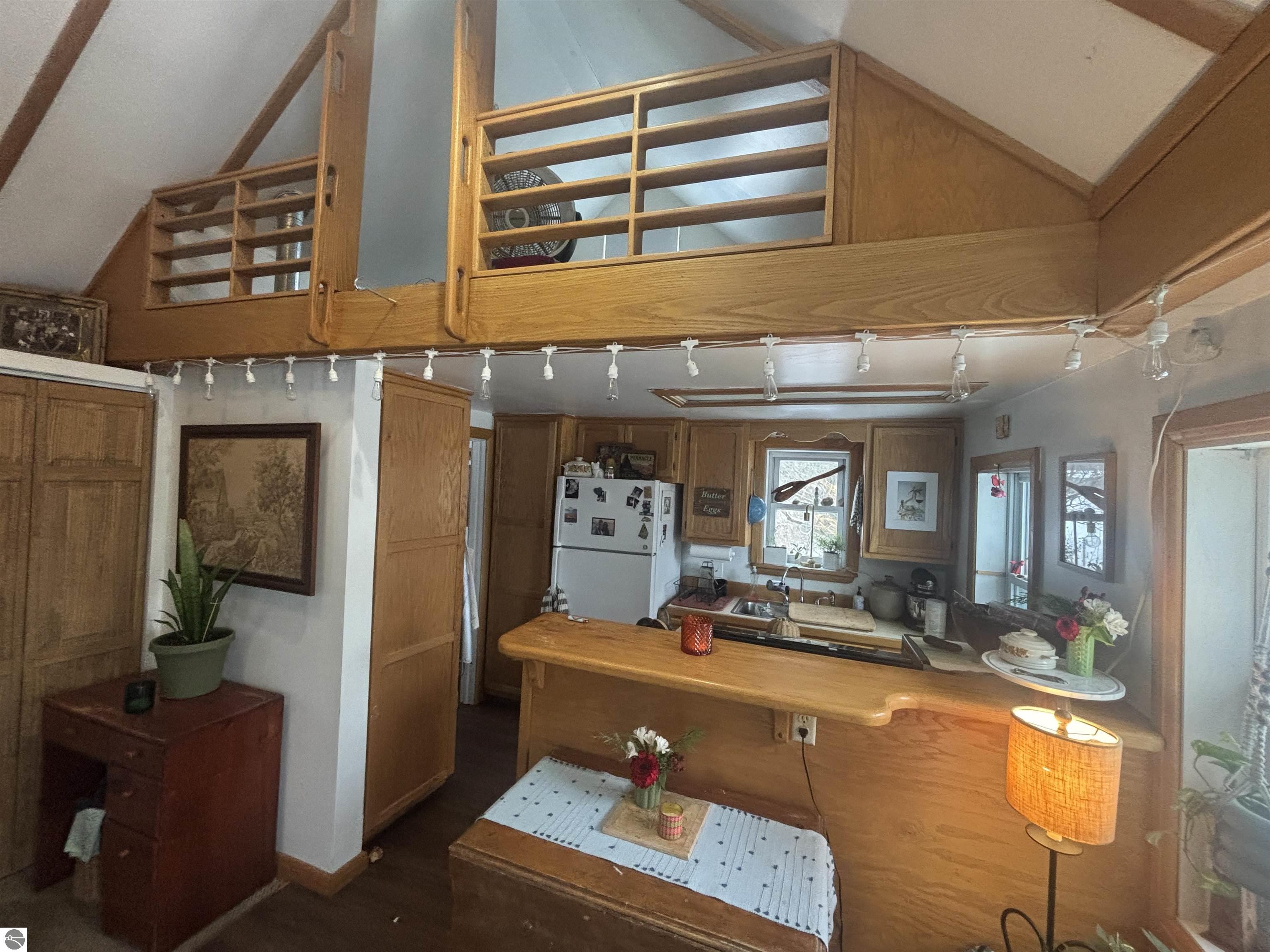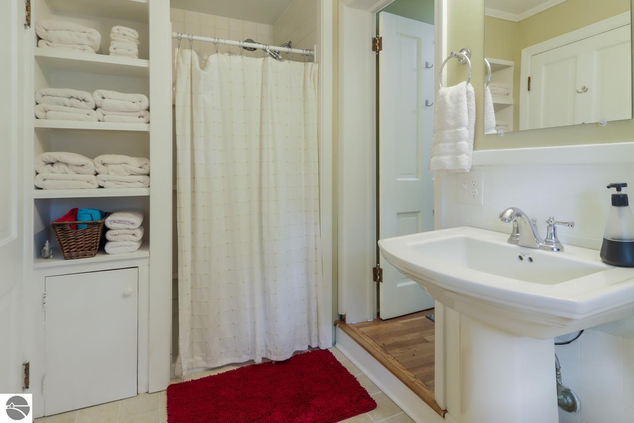 A SERENE SETTING on 1.34 acres. Timeless family home conveniently located between Elk Rapids and Traverse City in desirable, award winning Elk Rapids school district. As you begin your tour discover a comfortable and generously sized living room enhanced by hardwood floors, crown molding and a bay window. Large country kitchen with plenty of cabinetry, stainless appliances; island and hardwood floors. Spacious dining room with large picturesque window. A large, main floor family room with hardwood floors, crown molding, custom built-ins and a fireplace with brick surround. Main floor primary suite with wood floors, ceiling fan and plenty of windows for natural light. Additional amenities include 4 bedrooms, 2 baths; built in bookcase; architectural details; nice woodwork; mud room; nice size laundry/office room; over 2,406 sq. ft. of living space; underground sprinklers. Your friends and family will appreciate having their own space in the guest house. Relax on the covered porch and enjoy your peaceful setting and professionally landscaped grounds.
