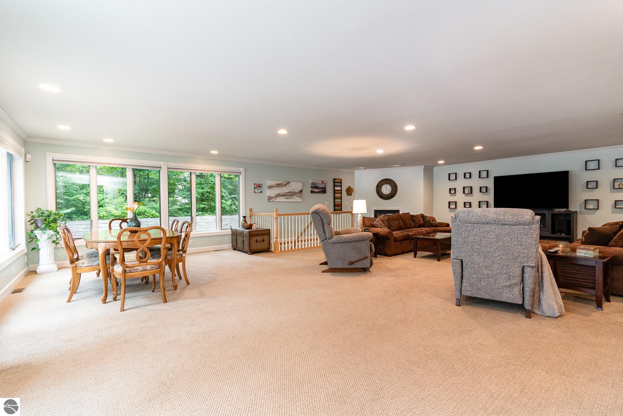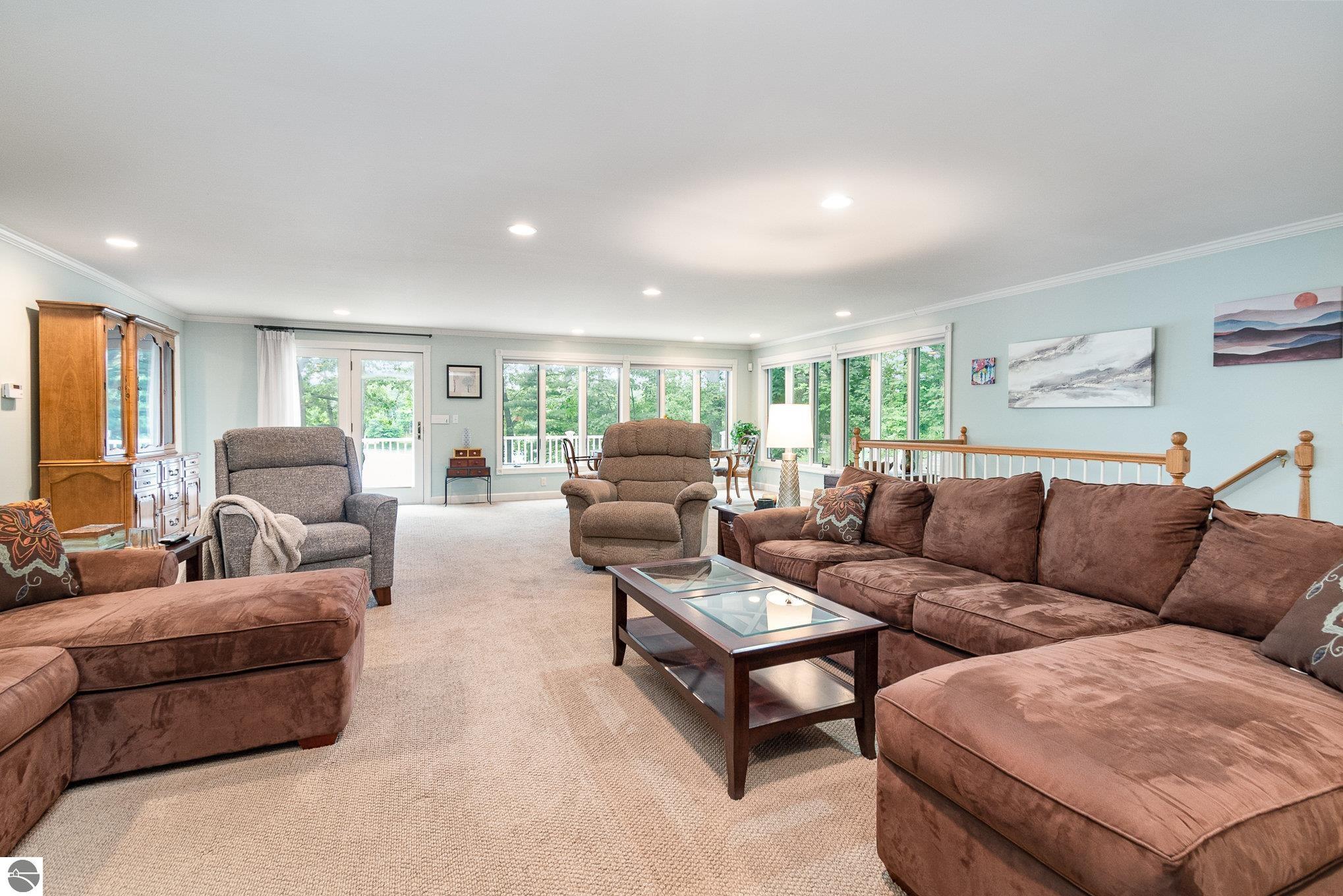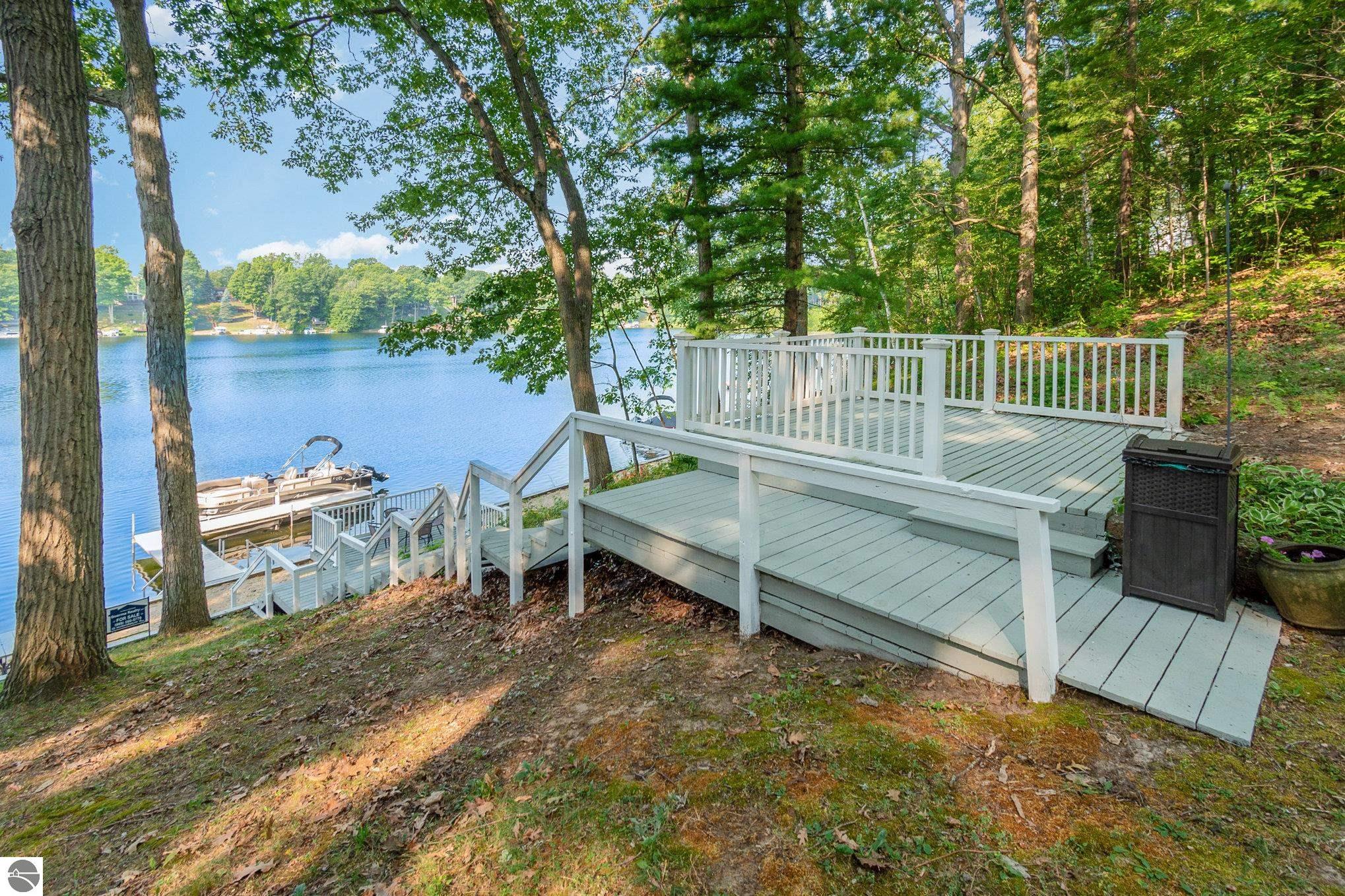 Welcome to this stunning lakeside retreat at 7670 Five Lakes Dr, Farwell, MI! Nestled on over an acre of picturesque waterfront land, this enchanting 4-bedroom, home offers lakefront living with over 105 feet of water frontage and mesmerizing lake views. Step inside to be greeted by a spacious, sunlit kitchen adorned with rich, dark wood cabinetry, sleek stainless-steel appliances (chef’s stove), and a stylish countertop island. A cozy family room with wood-burning fireplace. The huge living room, featuring a warm fireplace (gas), provides a perfect place for relaxation and enjoyment with the extended family. The inviting multi-level deck, seamlessly accessible from the living areas, provides an idyllic space for outdoor entertaining with serene lake views as your backdrop. Imagine evenings by the outdoor fire pit, with lush green trees all around. Additional features of this impressive property include a 24 kw Generac generator (2022), two new furnaces (2024), two new central air units (2024), roof (2018), and a newer water treatment system. A relaxing spa adds a touch of luxury to this already impressive home. Two wooded lots across the street offer opportunities for additional building. Surrounded by beauty and designed for comfort, this captivating lakeside home is one of the largest on Five Lakes which is an all sports lake. Experience the perfect blend of nature and modern living at this charming Lakehouse. This home is ADA accessible with Chair lifts (negotiable) and grab bars. Don’t miss your chance to call this tranquil retreat your own.