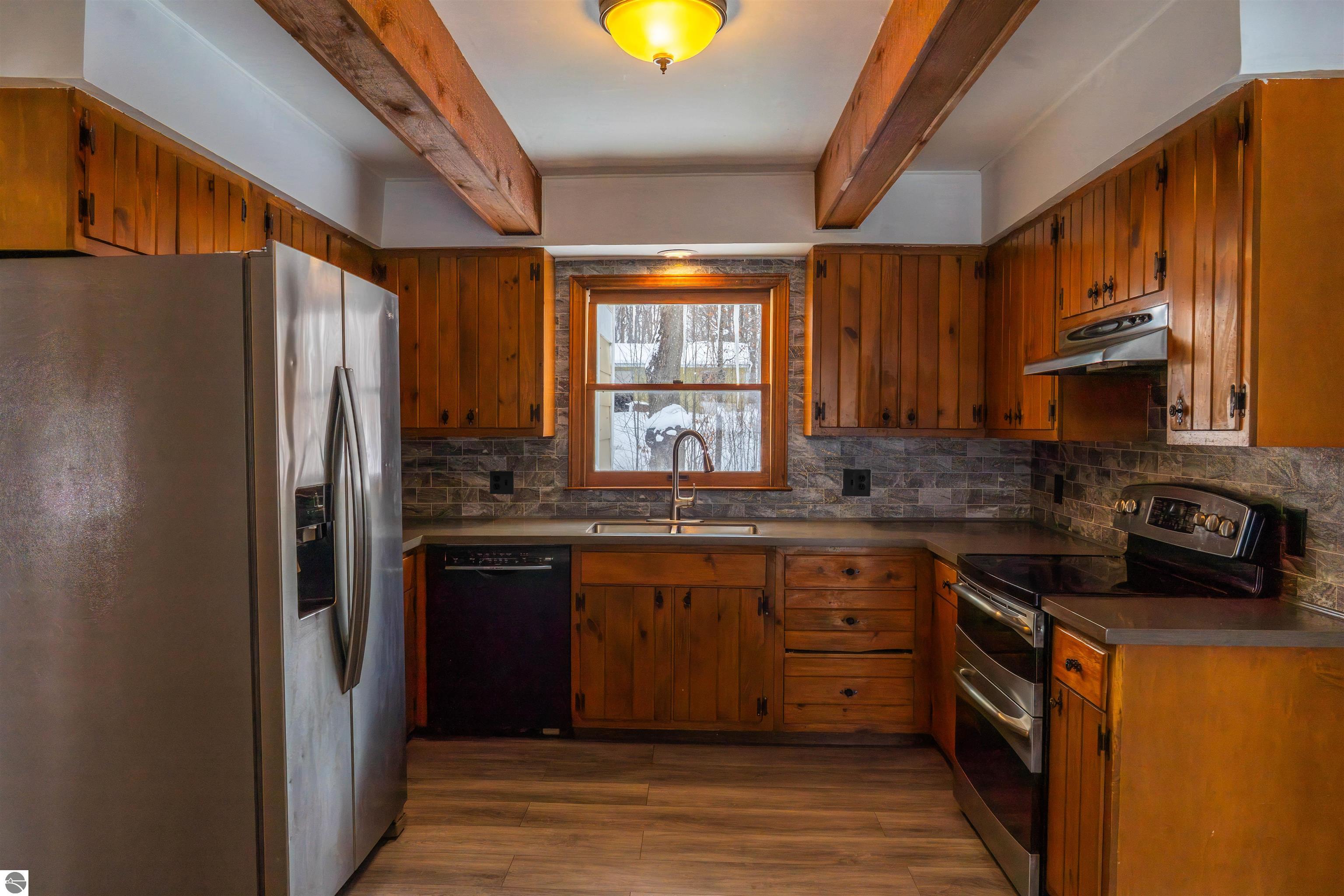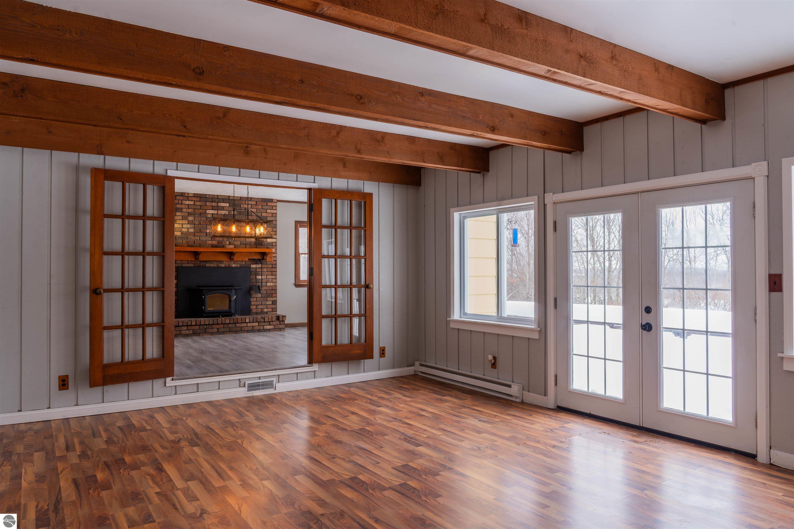 This beautiful home offers breathtaking seasonal views, with a well-known color tour route right outside your door. Inside, you’ll find a thoughtfully designed floor plan ideal for family gatherings and entertaining, featuring tall ceilings accented by striking wood beams, abundant natural light from numerous windows, and elegant French doors that open to a wrap-around deck—perfect for cookouts, relaxing evenings, and making memories. The home offers generously sized bedrooms, 2.5 baths, and multiple heating options for year-round comfort, including propane, electric, and a cozy wood stove/fireplace. The property is dotted with maple trees and surrounded by nature, where deer, foxes, and turkeys are frequent visitors. Located just minutes from Center Lake, enjoy swimming, kayaking, fishing, and lakeside family fun, all while being only 10 minutes from Cadillac and 10 minutes from Tustin—offering the best of peaceful country living with convenient access to town. This property is the perfect blend of comfort, character, and Northern Michigan charm, with endless potential for entertaining and everyday enjoyment.