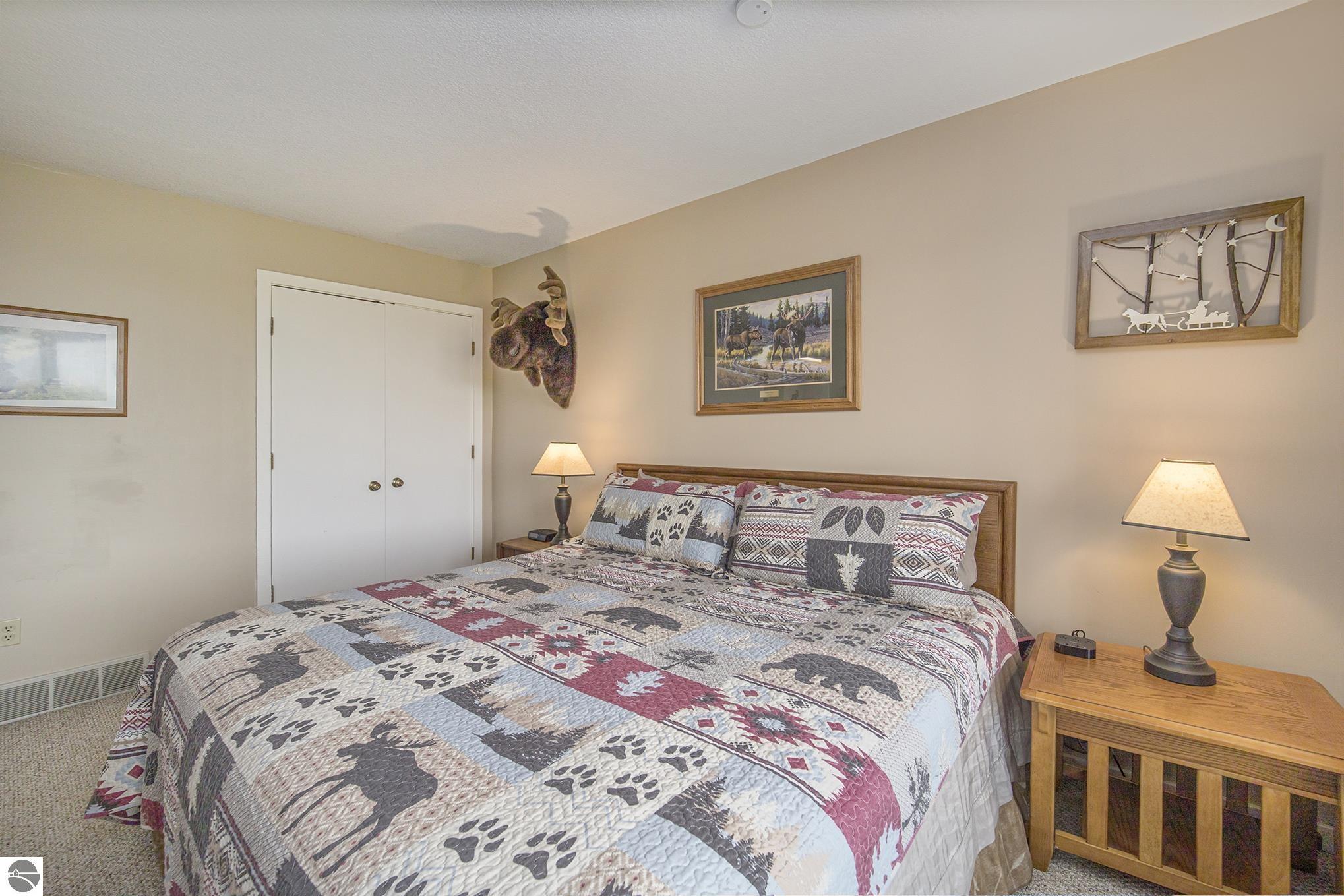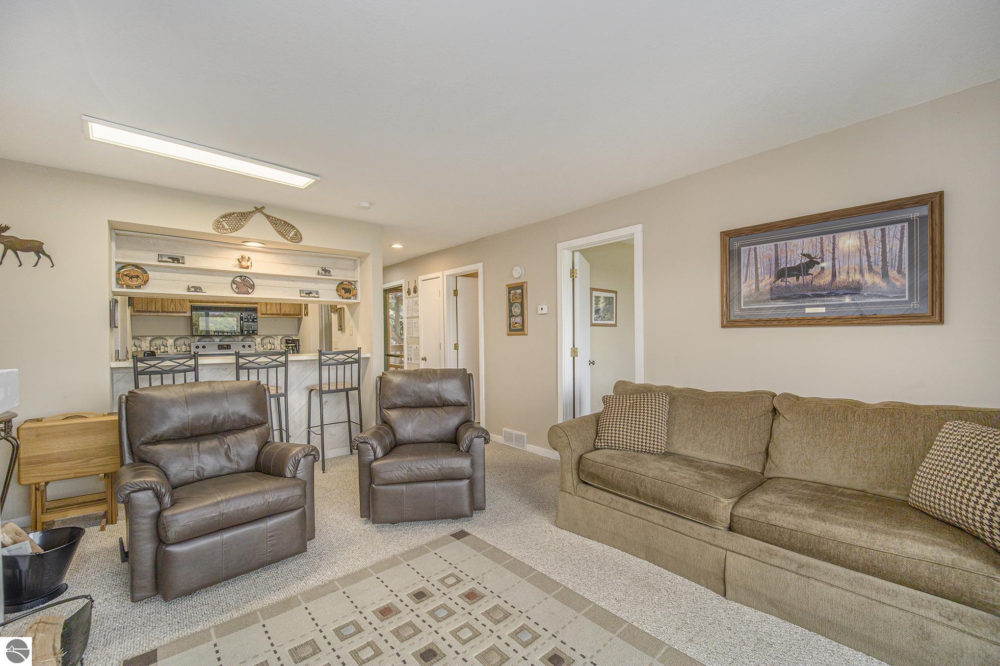 Get ready for summer! This property has a full kitchen, living room, and deck with stairs leading to the spacious yard. Facing west, you’ll enjoy spectacular sunsets along with a partial view of Lake Bellaire. The sizeable bedroom has a king bed and large windows. Enjoy the close proximity to the Lakeview Hotel with coffee bar, swimming pools, tubing hill, golf courses, restaurant and more. Summer days at the beach are even better with access to the property owners club on Lake Bellaire, featuring a sandy shoreline, pickleball, volleyball, a clubhouse, and so much more. Property is a successful short term rental and sold furnished. This place features a wood-burning fireplace, natural gas, and central air. The association fee of $434 per month covers snow removal, lawn care, firewood, trash service, beach club access, and use of the Snowshoe outdoor pool during the summer.