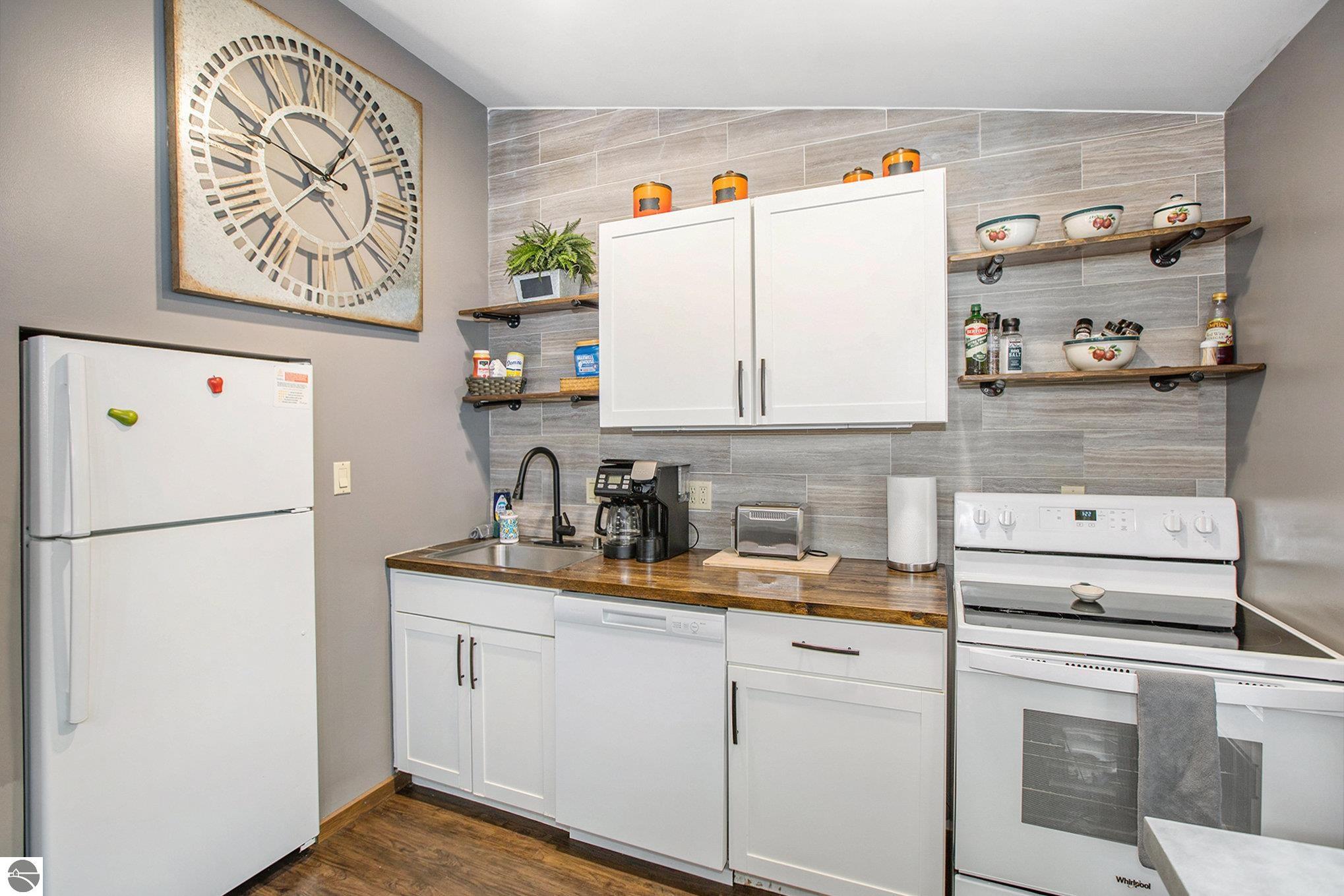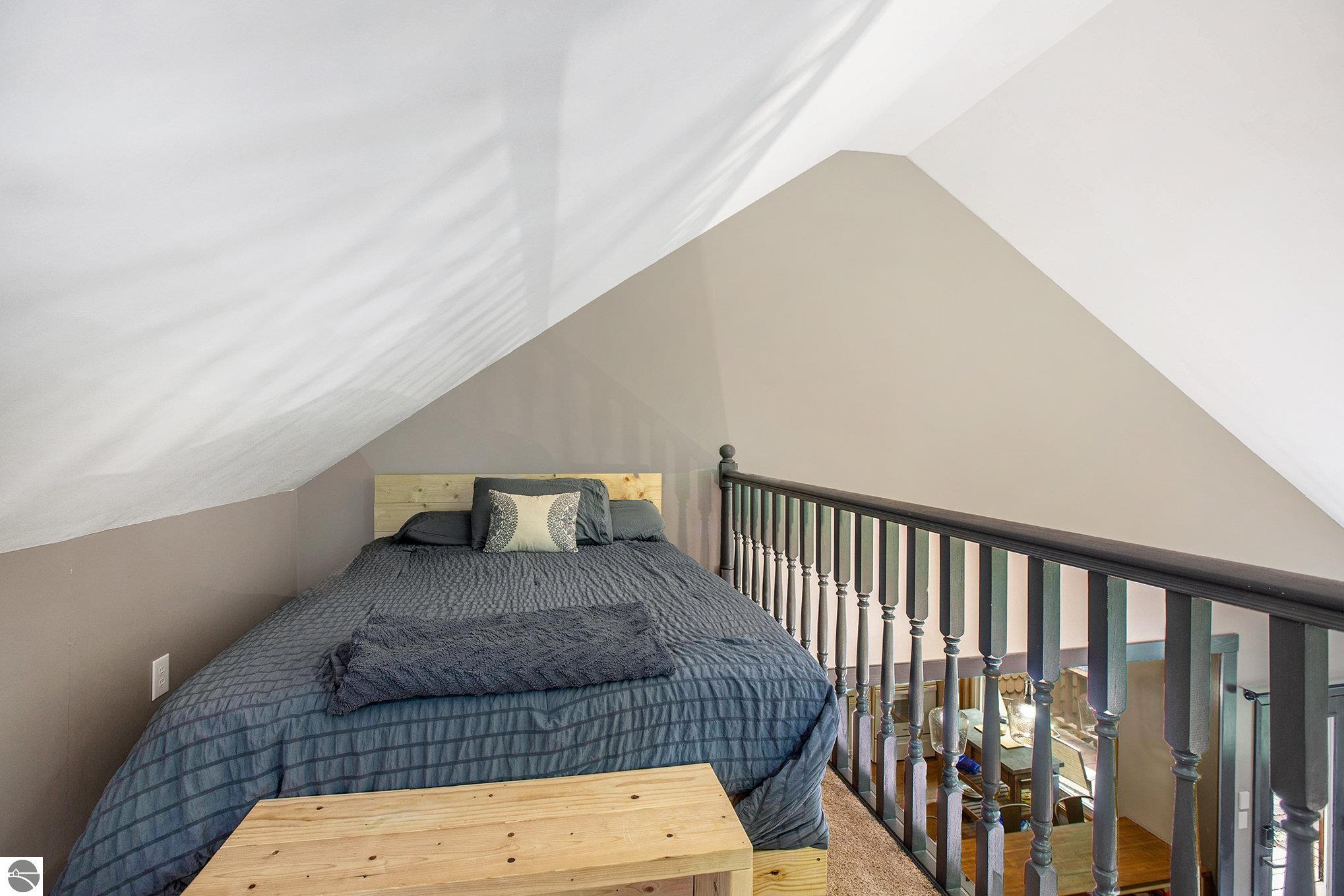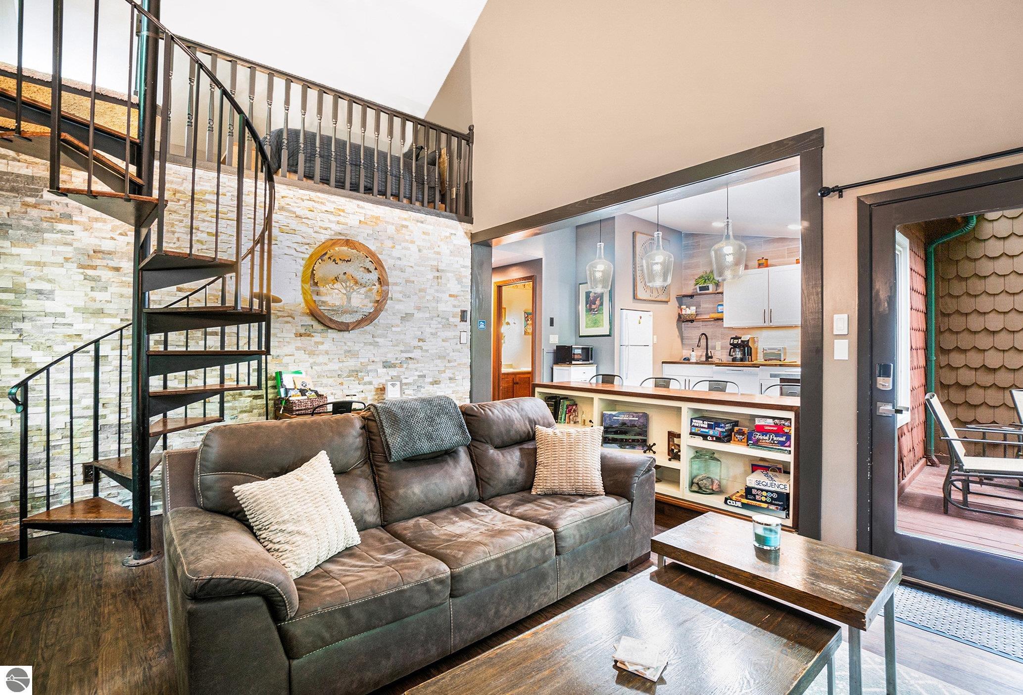 Just under a mile from the Schuss ski slopes at Shanty Creek, this cozy 2-bedroom, 2-bath condo with loft is tucked away in the woods. It features a spacious open living room with a wood-burning fireplace, stacked stone wall, luxury vinyl floors, and a vaulted ceiling with a stylish loft and spiral staircase. Gorgeous wood beam ceilings in the bedrooms, mini split system installed in 2022 and roof in 2023. Association dues are only $201 per month and include access to the Sudendorf summer pool, firewood, trash disposal, and snow removal. This is a very successful short term rental and the property is completely furnished. Seller is a licensed broker in the State of Michigan.