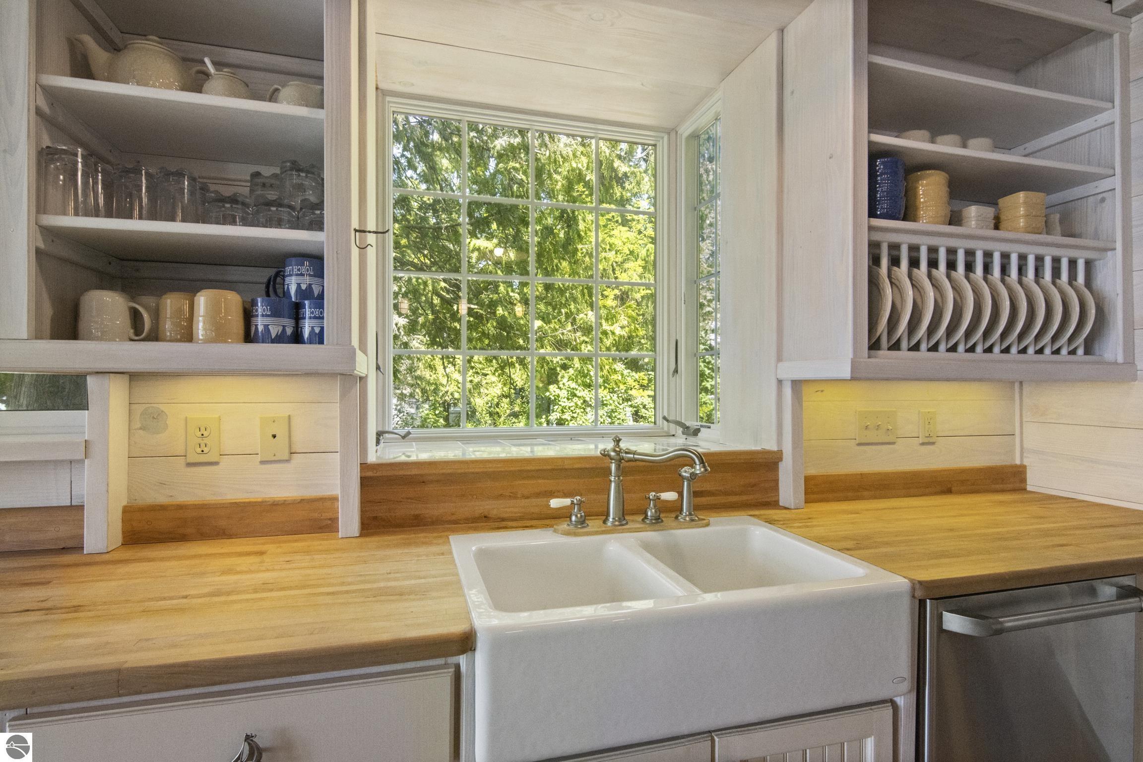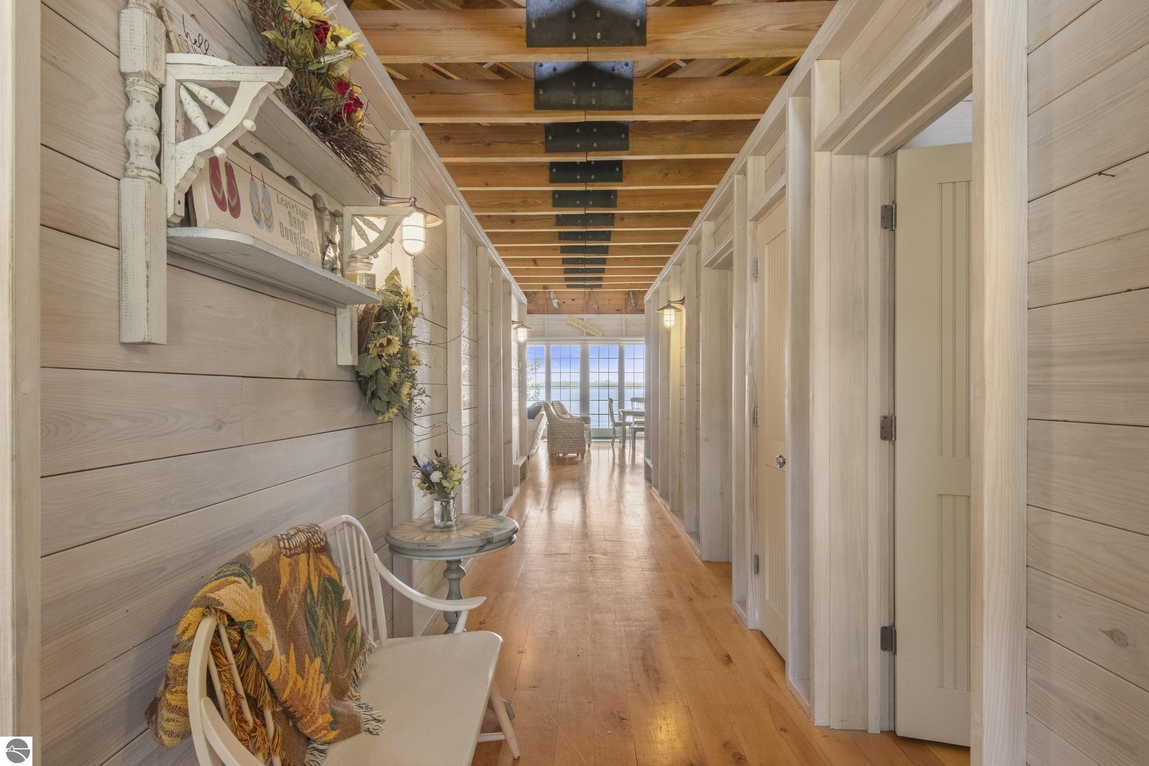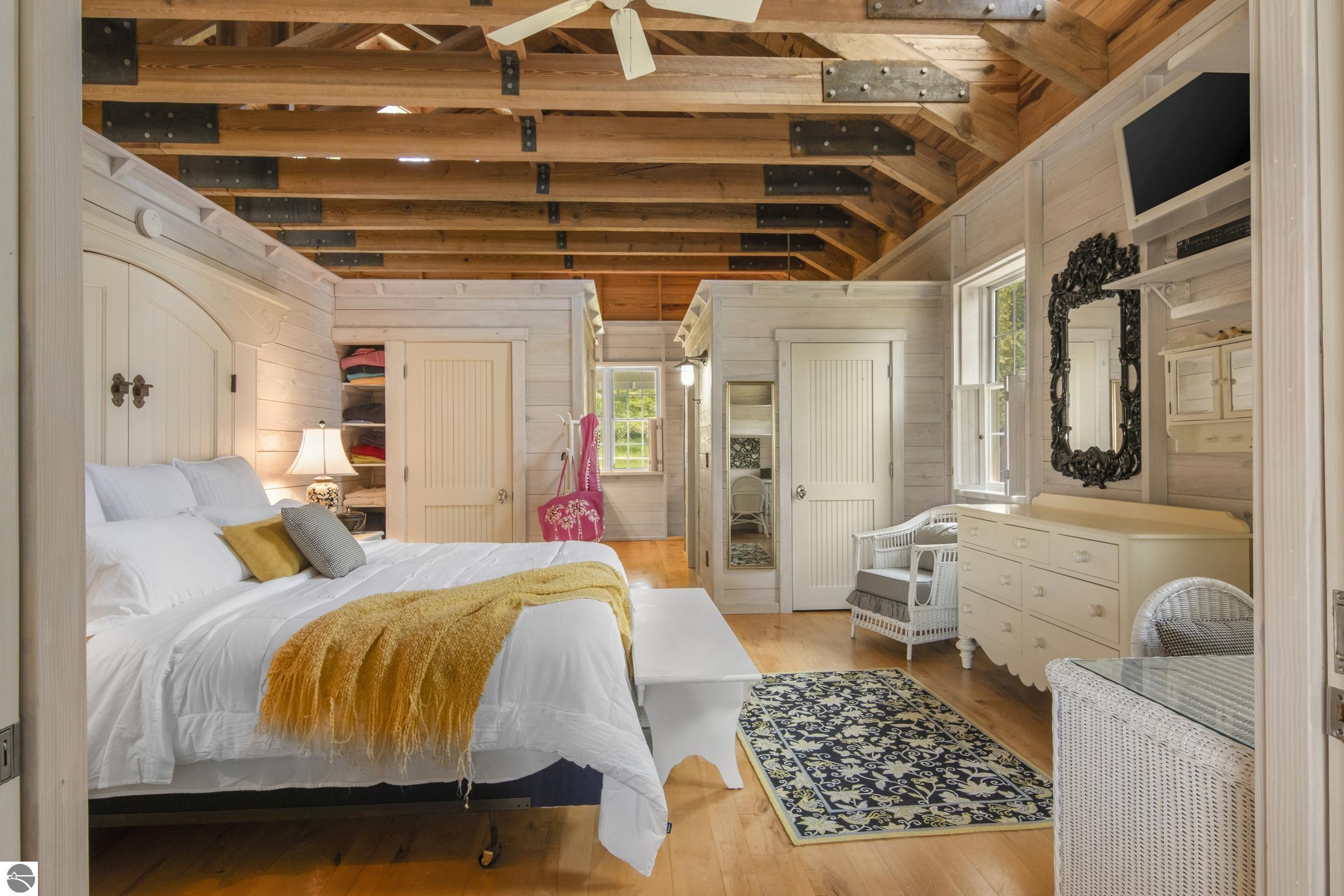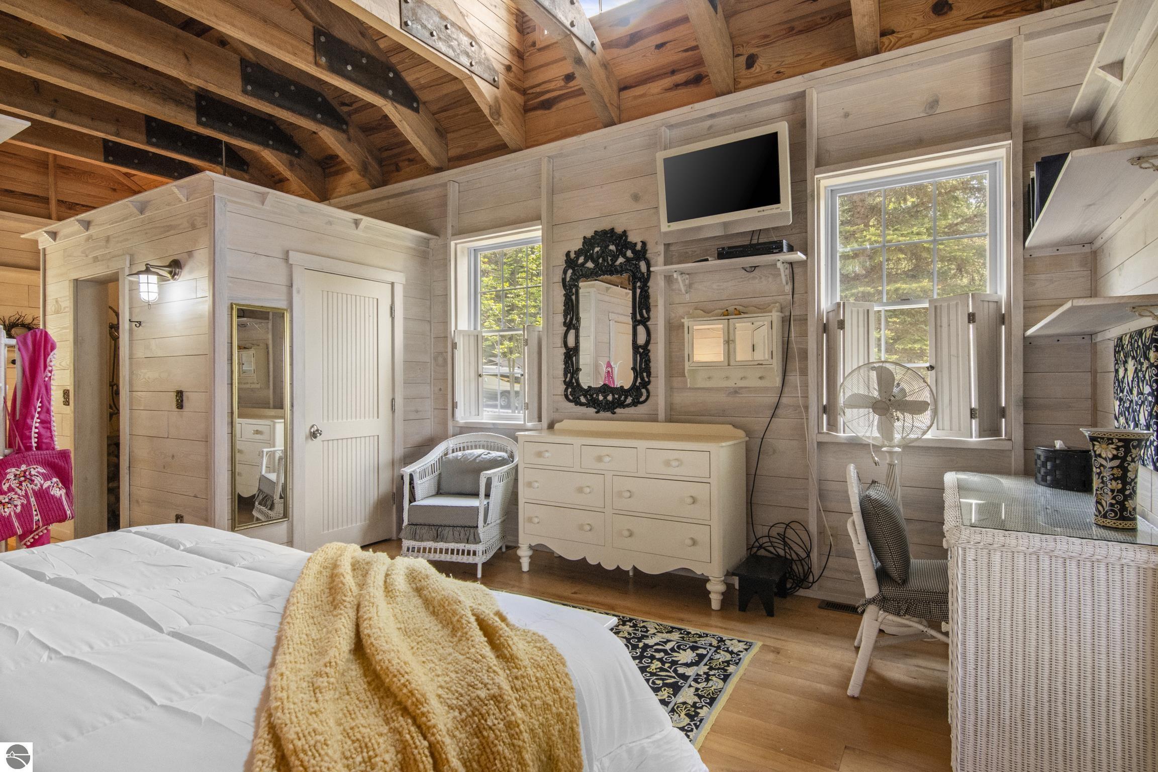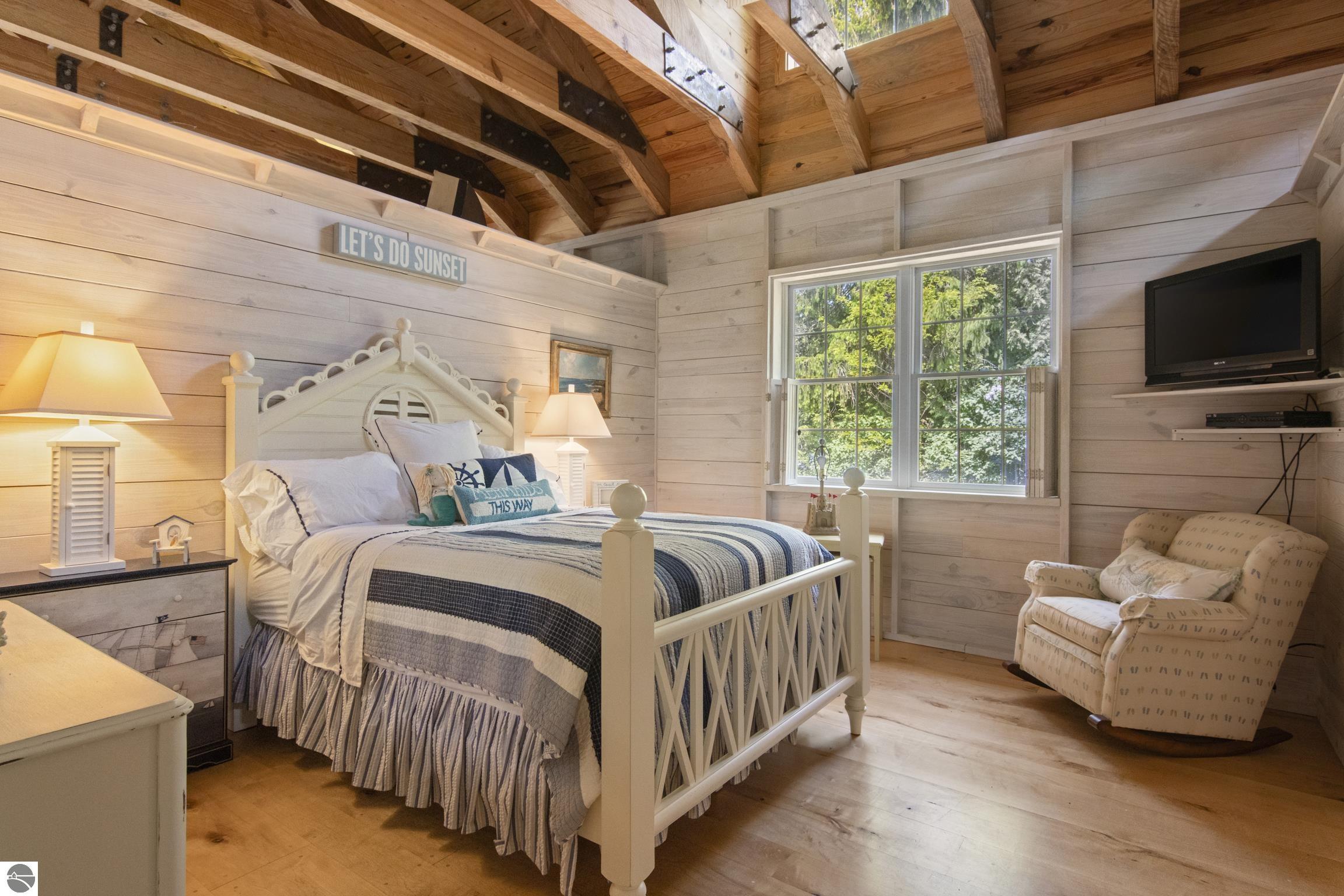 TORCH LAKE IS WAITING for you to come enjoy the waterfront lifestyle. Get ready to enjoy world class watersports on the entire Chain-of-Lakes, swimming, sailing, power boating or just sitting back to watch the sunset over your 89’ of private frontage. This “Up North” cottage style home has been thoughtfully designed, decorated, and beautifully maintained to be your four season get-a-way retreat or year around home. A covered front porch will be the place to relax and greet your guests as they arrive to your piece of paradise on the shores of Torch Lake. Step into the foyer and imagine yourself creating memories with your family in this home. The light filled living room is enhanced by a stone fireplace; massive beams of Florida Pine grace the ceilings, gorgeous Maple hardwood floors and views of the lake. The kitchen/dining area will be the place to create your culinary delights featuring an island with bar seating; unique lighting; stainless appliances; two dishwashers; farmhouse sink; butcher block countertops; built-ins; and walk-in pantry. French doors lead you to the covered back porch where you can dine alfresco or listen to the loons sing. The primary bedroom with dual cedar lined closets and bath with unique fieldstone shower. Both bedrooms are ensuite, feature hardwood floors and are generously sized. Large laundry room with plenty of storage space and cabinetry. Additional details include a low maintenance steel roof; stone accents on the exterior; large car port with architectural; detailing; beautiful mature trees; and central air. Golf, ski resorts, recreational trails, shopping, dining, quaint waterfront communities are just a short drive away.