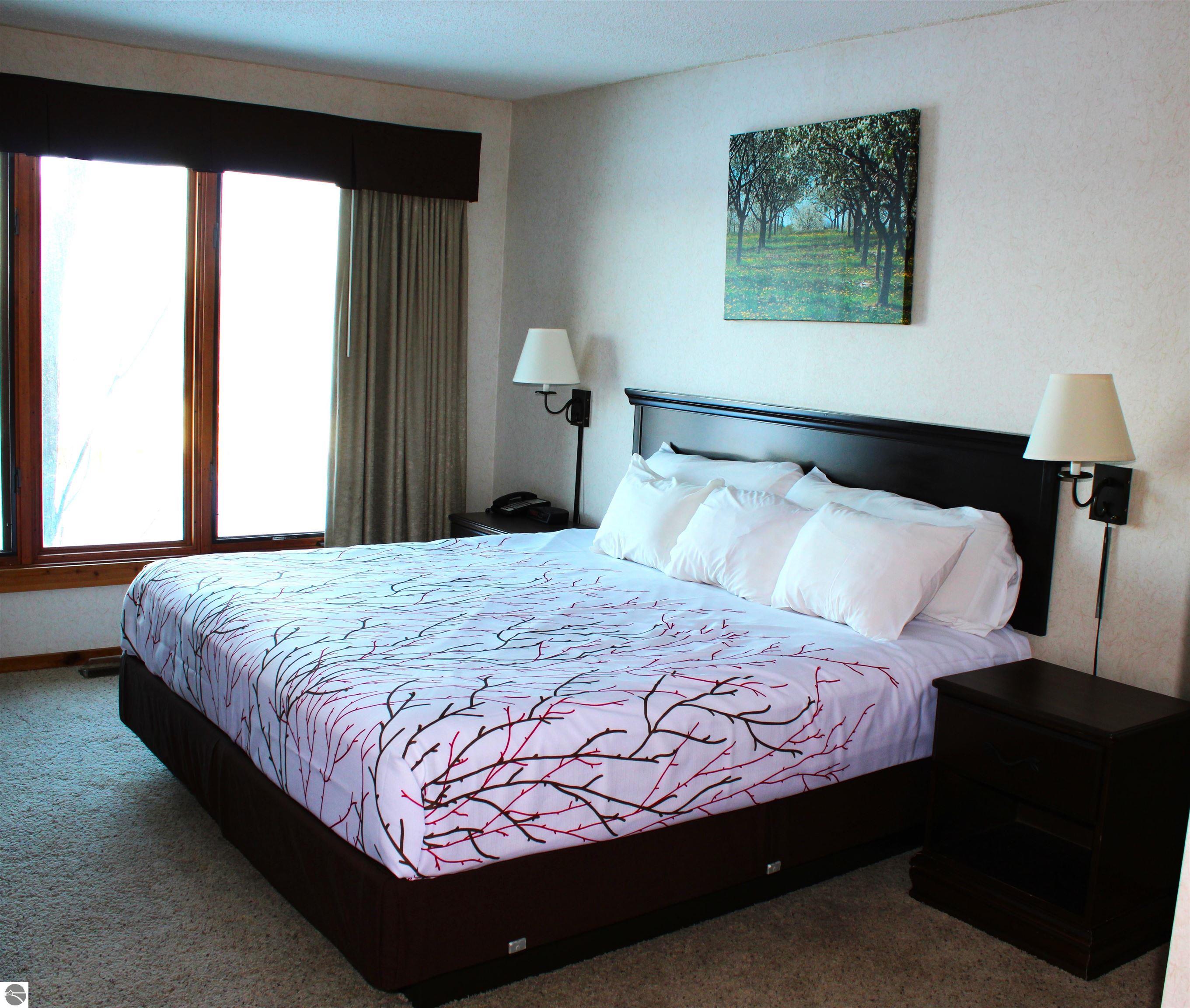West-Facing Condo with Stunning Sunset & Lake Bellaire Views Welcome to your Up North base camp. This charming west-facing condo captures beautiful sunsets and sweeping countryside views over Lake Bellaire, creating the perfect setting for year-round Northern Michigan living. Inside, you’ll find a full kitchen and a cozy living room anchored by a wood-burning fireplace, ideal for relaxing after a day on the slopes or golf course. Step out onto the private outdoor deck — perfect for enjoying fresh air and open space. The sizeable bedroom features a king bed and large windows that bring in natural light and tranquil views. Convenient main-floor access means no stairs, making arrival and everyday living easy. Association dues of $434 per month include snow removal, lawn care, firewood, trash service, beach club access, and use of the summer Snowshoe outdoor pool. Whether you’re looking for a personal retreat, an income property, or the perfect four-season getaway, this is your chance to own a true Northern Michigan base camp with unforgettable sunset views.