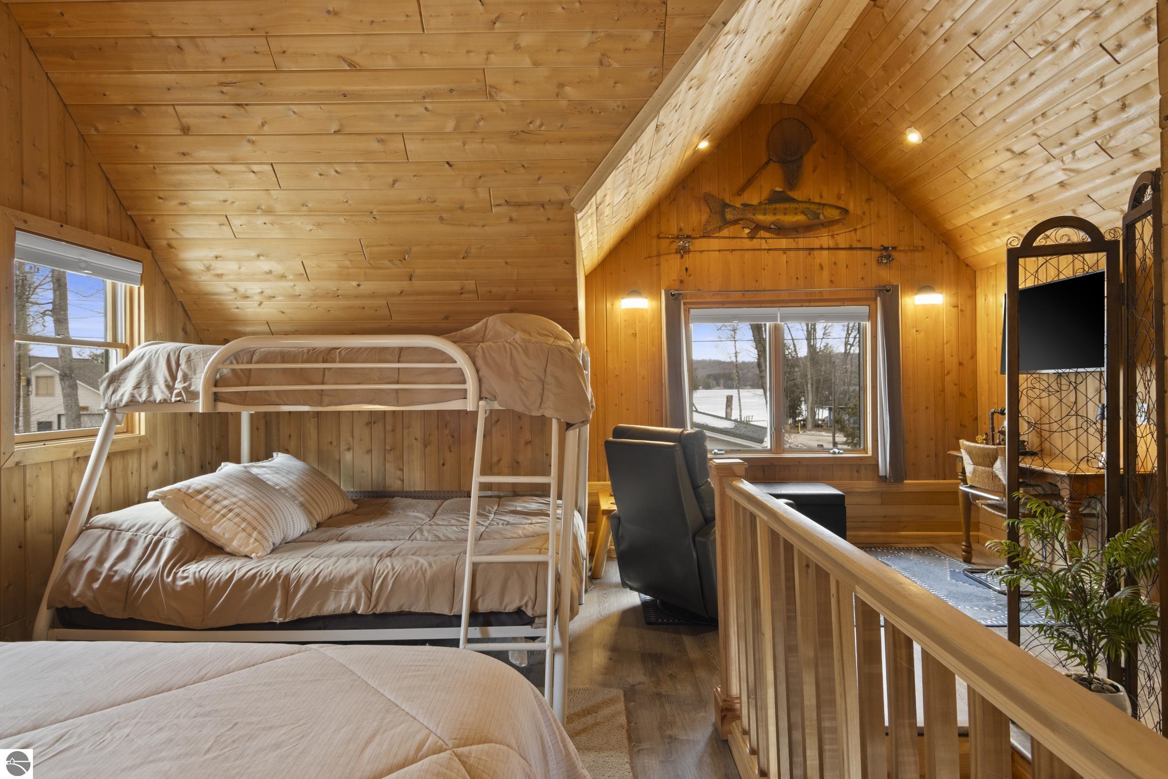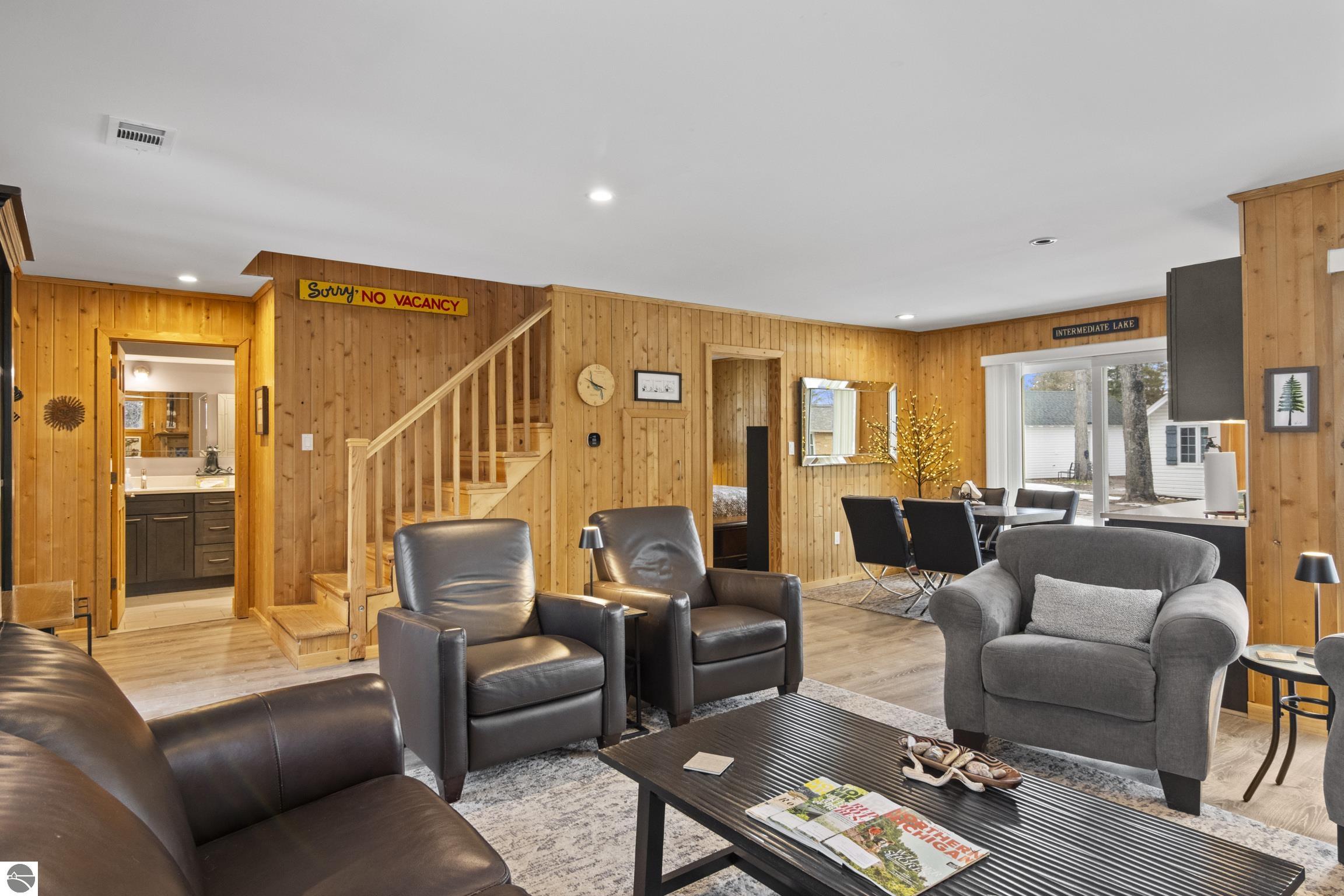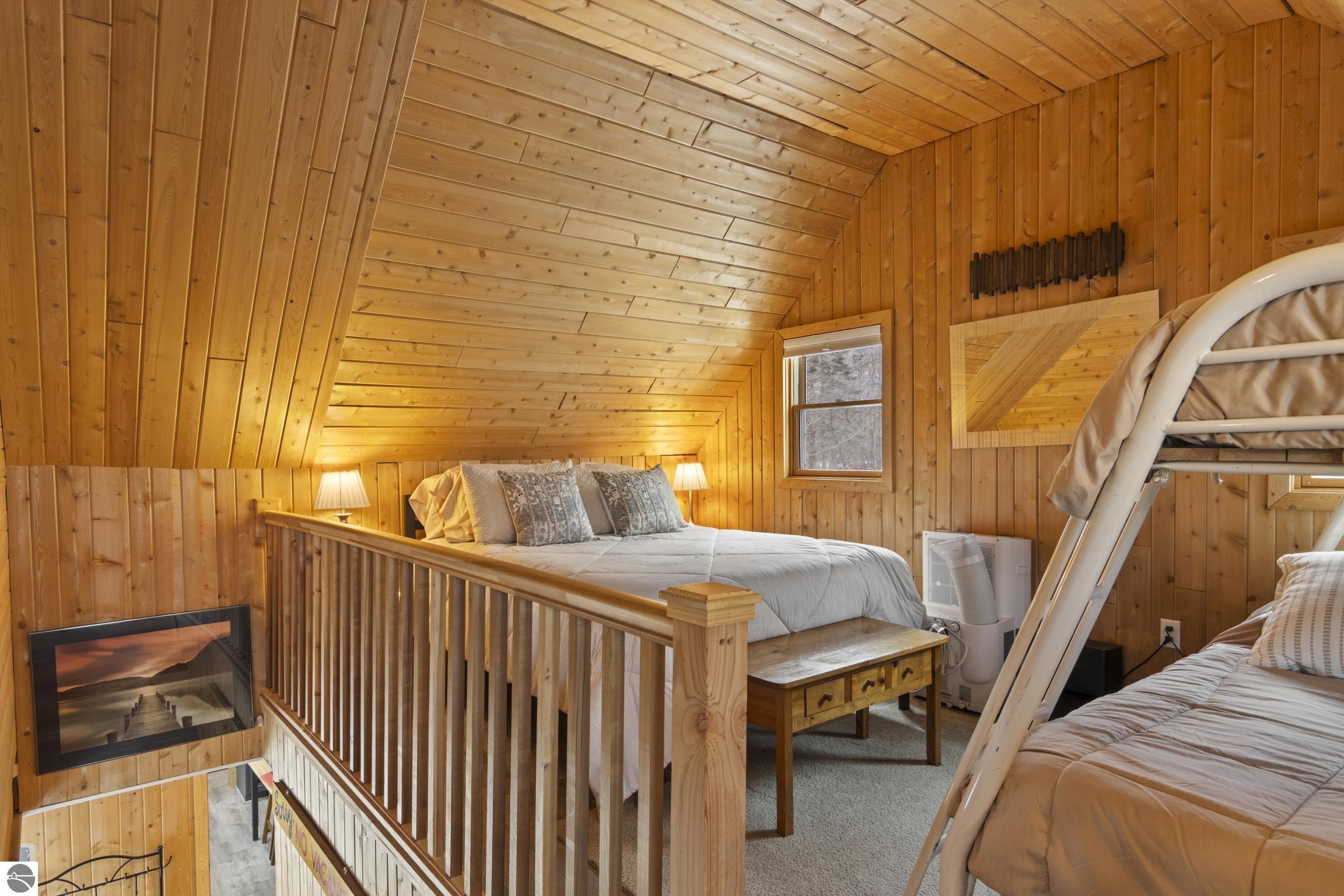This pristine 3 bedroom, 2 bath cottage offers a peaceful retreat in northern Michigan, perfect as a full-time or vacation home. Enjoy access to the shared lakefront park on Intermediate Lake and scenic water views. Extensively remodeled with premium finishes, while retaining the natural tongue and groove wood touches for that Up North feel, it is ready for you to move in and enjoy. A spacious living room is appointed with gas fireplace, luxury vinyl plank flooring, abundant natural light and a dining area highlighted by a wet bar, and access to the deck – great when you entertain. The kitchen offers an efficient layout with premium cabinets, stainless appliances, quartz counters, tile backsplash and LVP flooring. You’ll appreciate the natural light and access to the private back yard. Outside, the patio provides space for gatherings and, with a covered cedar gazebo, allows you to enjoy your surroundings even in inclement weather. The main floor includes a bedroom and the bath is appointed with ceramic tile, quartz counters, tile shower and linen closet. Upstairs you may want to relax in the sitting nook while you enjoy the lake views. The primary suite features an ensuite bath with premium finishes and creative storage. The loft serves as a third bedroom. Additional highlights include a laundry with an all-in-one washer/dryer, a garage with space for your vehicle, a generator hookup and, with built in shelving, plenty of storage. Enjoy comfort, quality and beautiful surroundings in this inviting Up North cottage!
