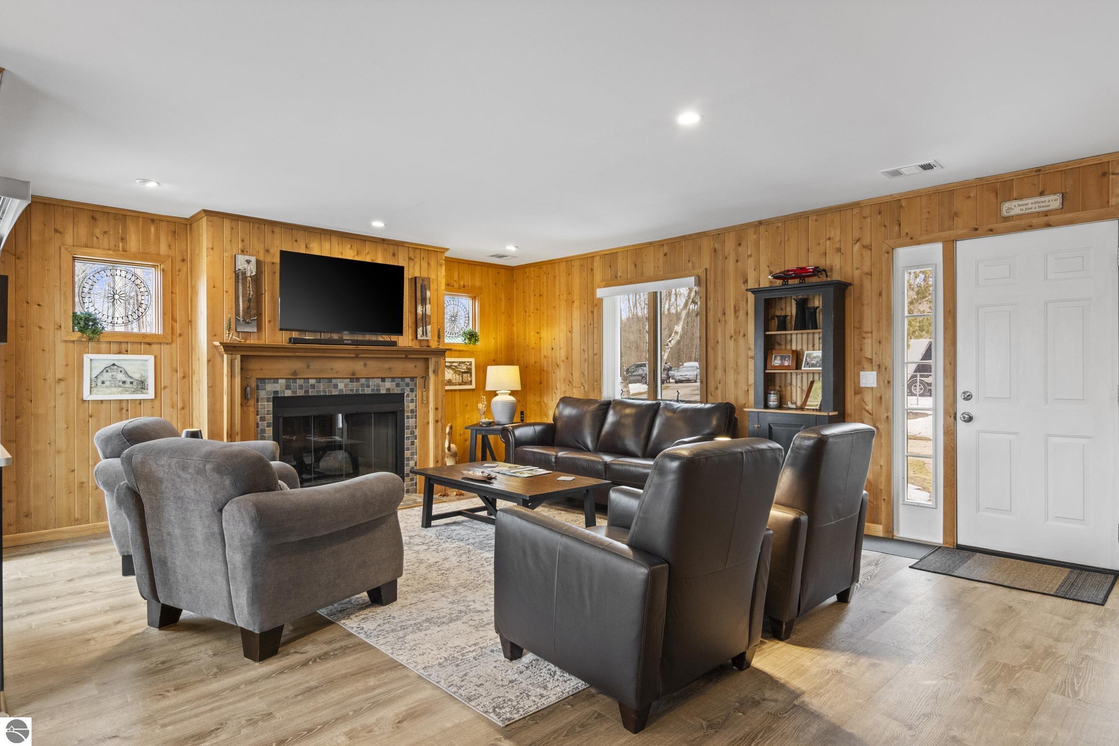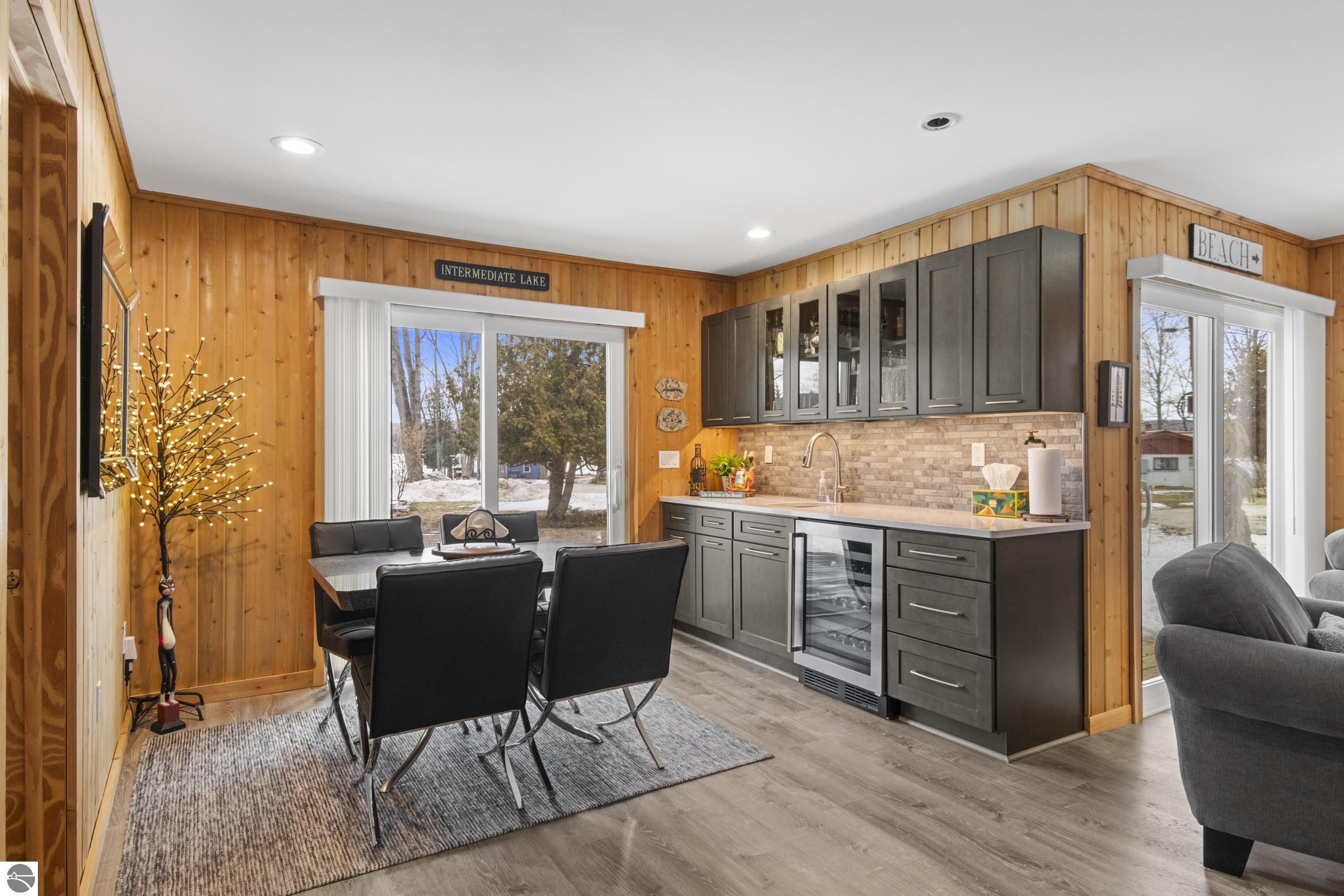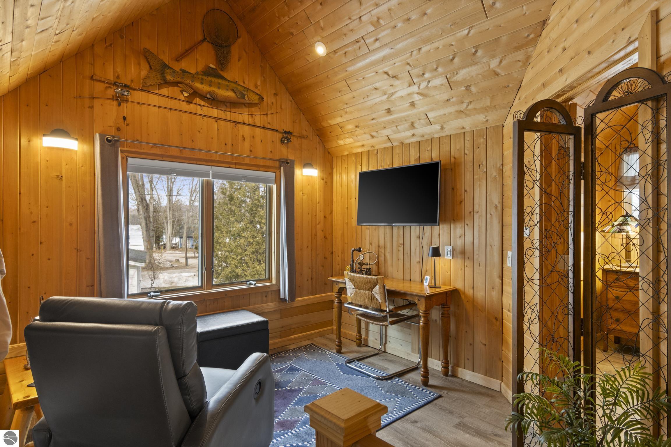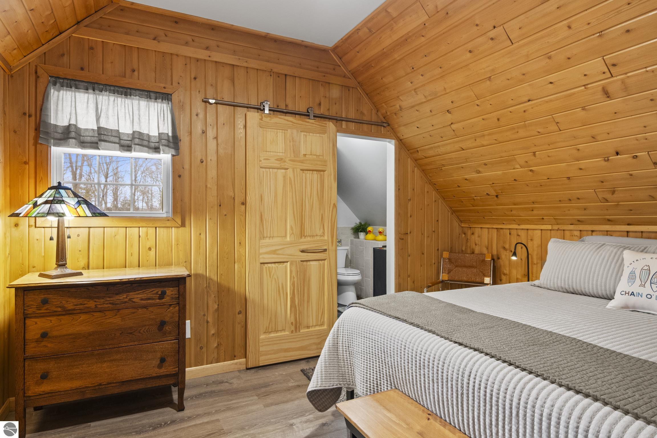 This pristine 3 bedroom, 2 bath cottage offers a peaceful retreat in northern Michigan, perfect as a full-time or vacation home. Enjoy access to the shared lakefront park on Intermediate Lake and scenic water views. Extensively remodeled with premium finishes, while retaining the natural tongue and groove wood touches for that Up North feel, it is ready for you to move in and enjoy. A spacious living room is appointed with gas fireplace, luxury vinyl plank flooring, abundant natural light and a dining area highlighted by a wet bar, and access to the deck – great when you entertain. The kitchen offers an efficient layout with premium cabinets, stainless appliances, quartz counters, tile backsplash and LVP flooring. You’ll appreciate the natural light and access to the private back yard. Outside, the patio provides space for gatherings and, with a covered cedar gazebo, allows you to enjoy your surroundings even in inclement weather. The main floor includes a bedroom and the bath is appointed with ceramic tile, quartz counters, tile shower and linen closet. Upstairs you may want to relax in the sitting nook while you enjoy the lake views. The primary suite features an ensuite bath with premium finishes and creative storage. The loft serves as a third bedroom. Additional highlights include a laundry with an all-in-one washer/dryer, a garage with space for your vehicle, a generator hookup and, with built in shelving, plenty of storage. Enjoy comfort, quality and beautiful surroundings in this inviting Up North cottage!