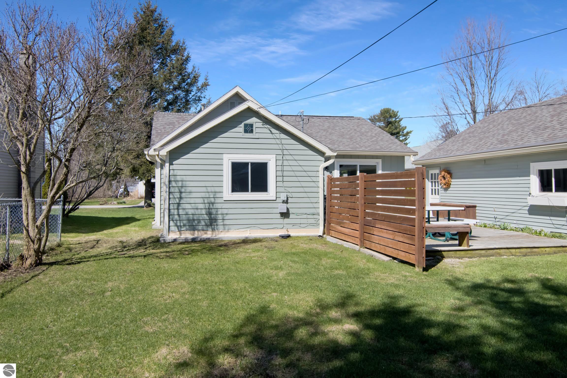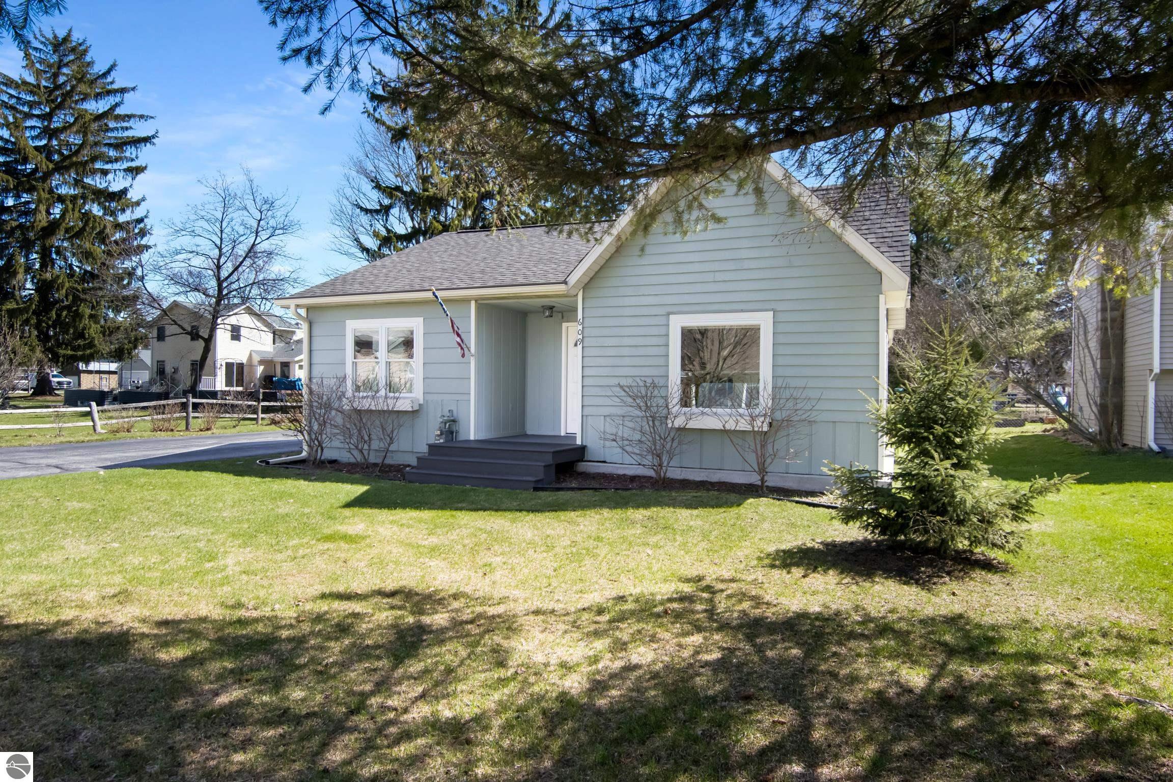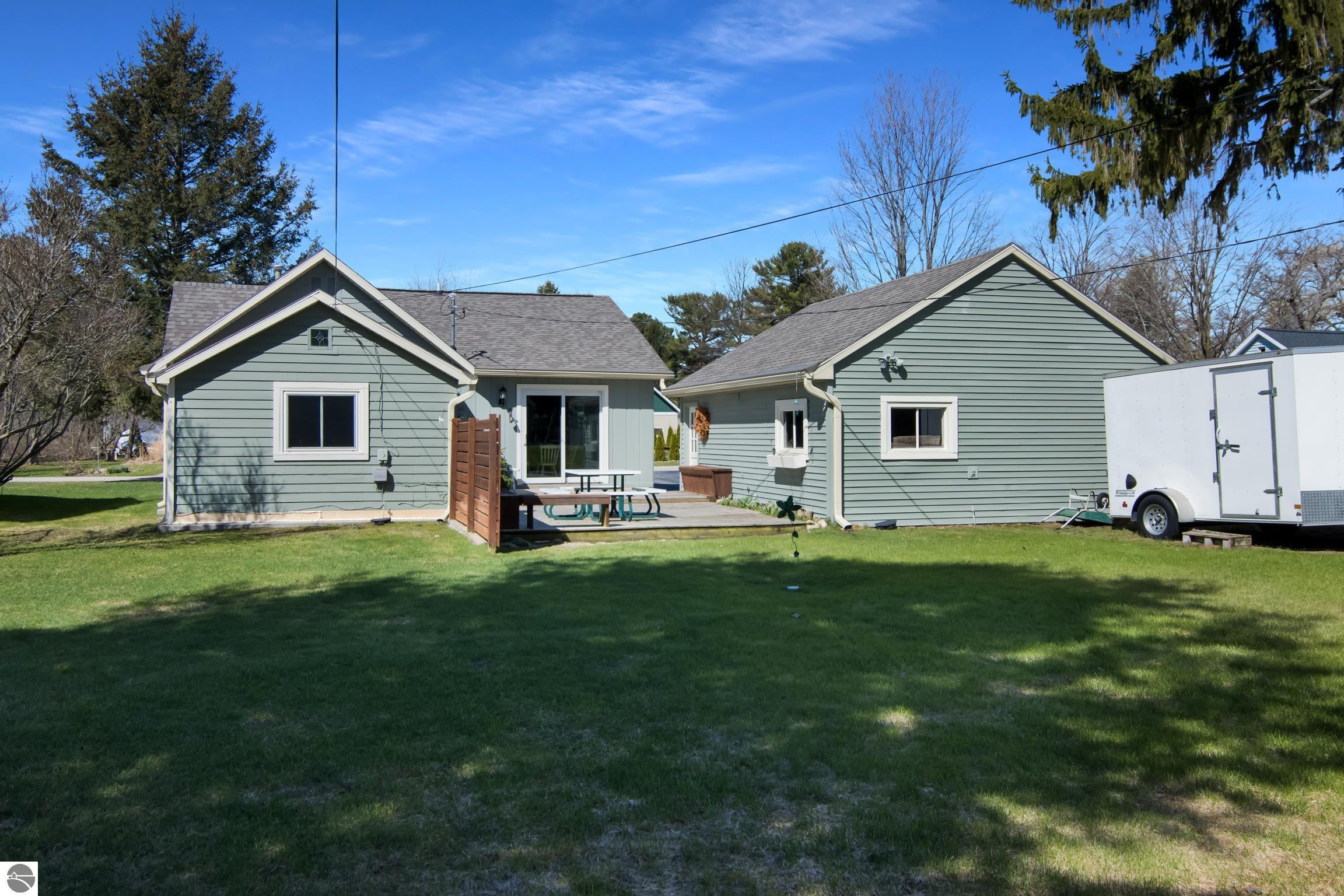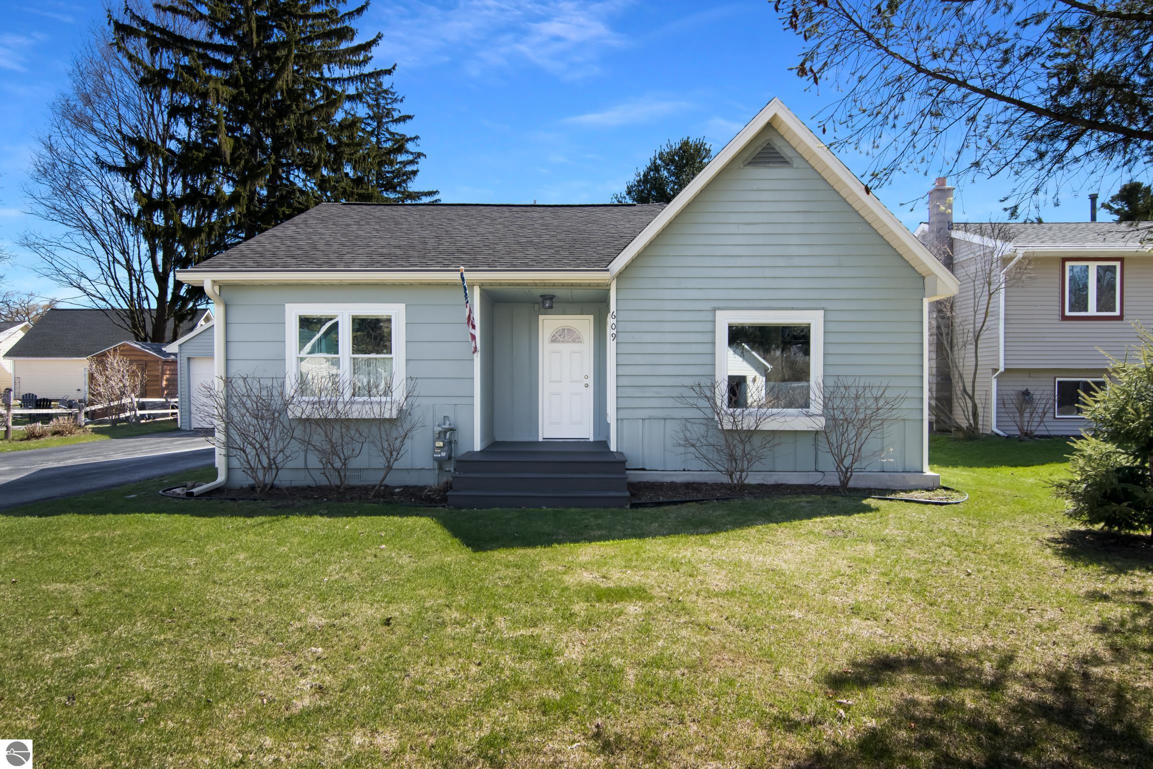 THE DESIRABLE WEST SIDE of Elk Rapids is waiting to welcome you home to this newly listed bungalow. As you begin your tour you will discover generously sized windows in the living spaces offer plenty of natural light. The chef in your family will appreciate the kitchen with lots of updated features; stainless appliances, bar seating; beautiful cabinetry; and more. The dining area with a slider which leads you to the deck for al fresco meals and outdoor entertaining. Spacious primary suite with cathedral ceilings, natural wood ceiling and walls, dual closets, the sitting area will be the perfect reading nook or home office. Additional amenities include a laundry room, central air conditioning, 2-car detached garage, landscaped setting, and more. The window boxes are waiting for you to fill with your favorite colorful blooms. Get ready to make cherished memories in the quaint Village of Elk Rapids, where you can walk or ride your bike to the beach, parks, marina, downtown shops, theater and restaurants. Small town living at its finest, where your neighbors will greet you with a smile and a hello while you stroll the tree lined streets.