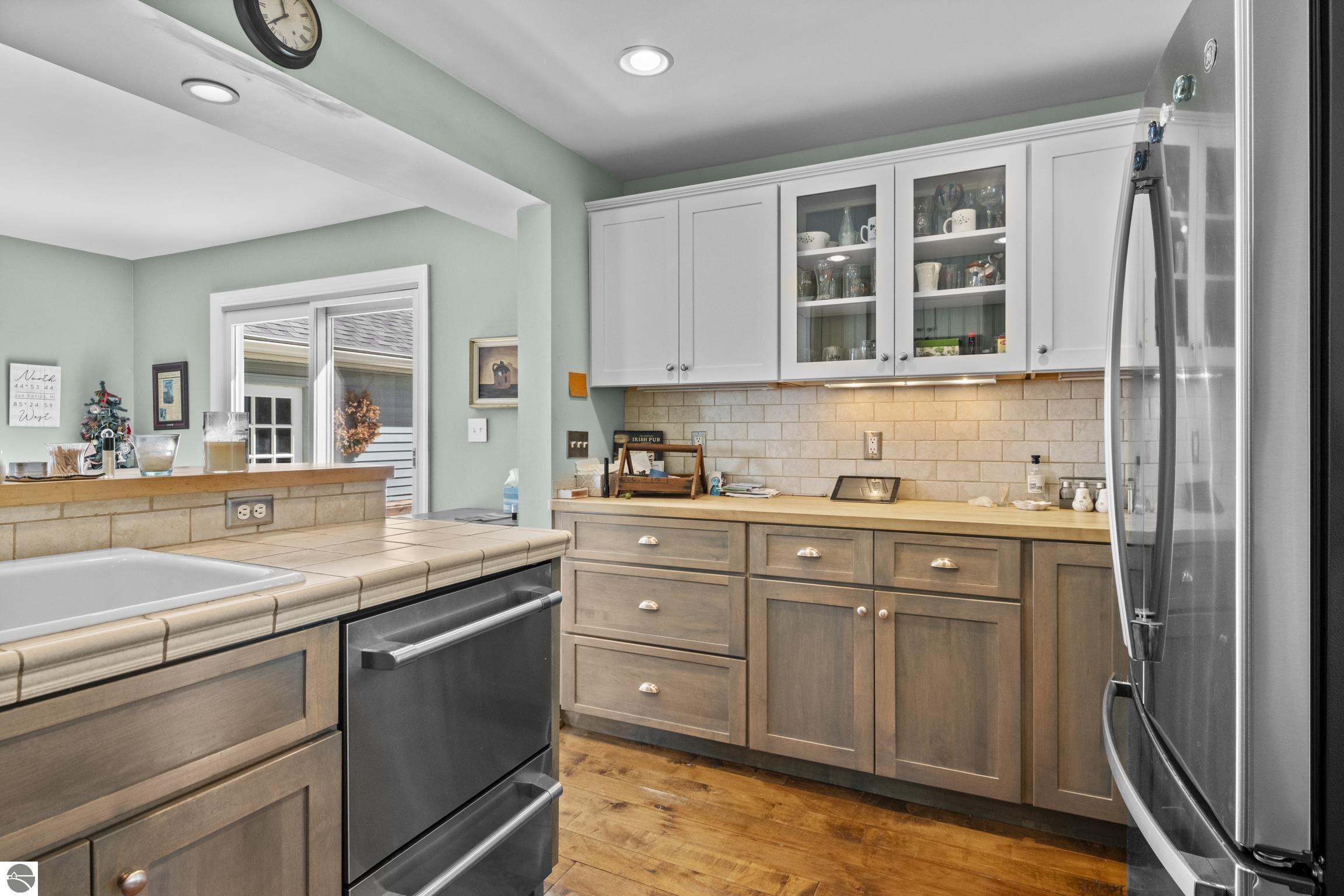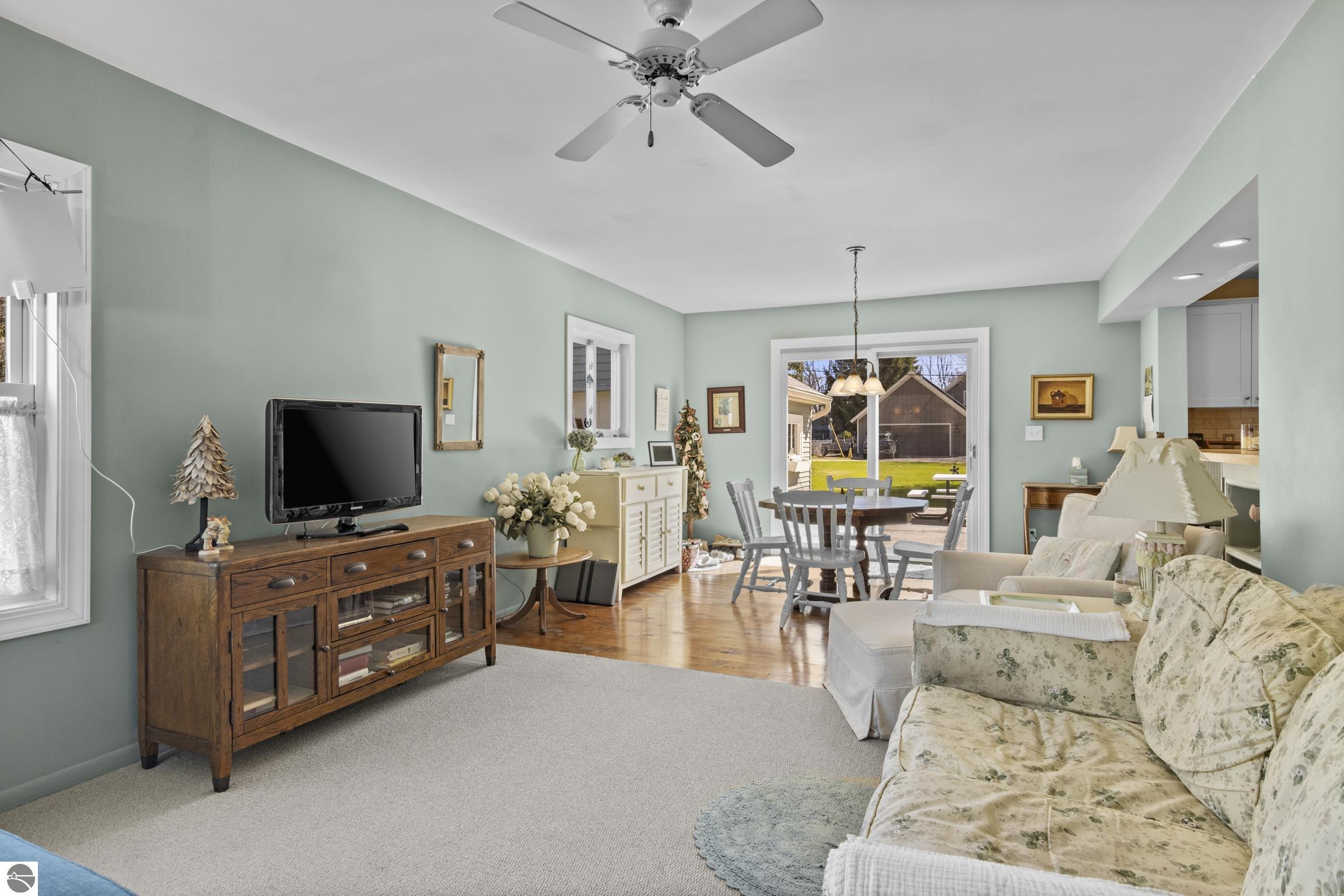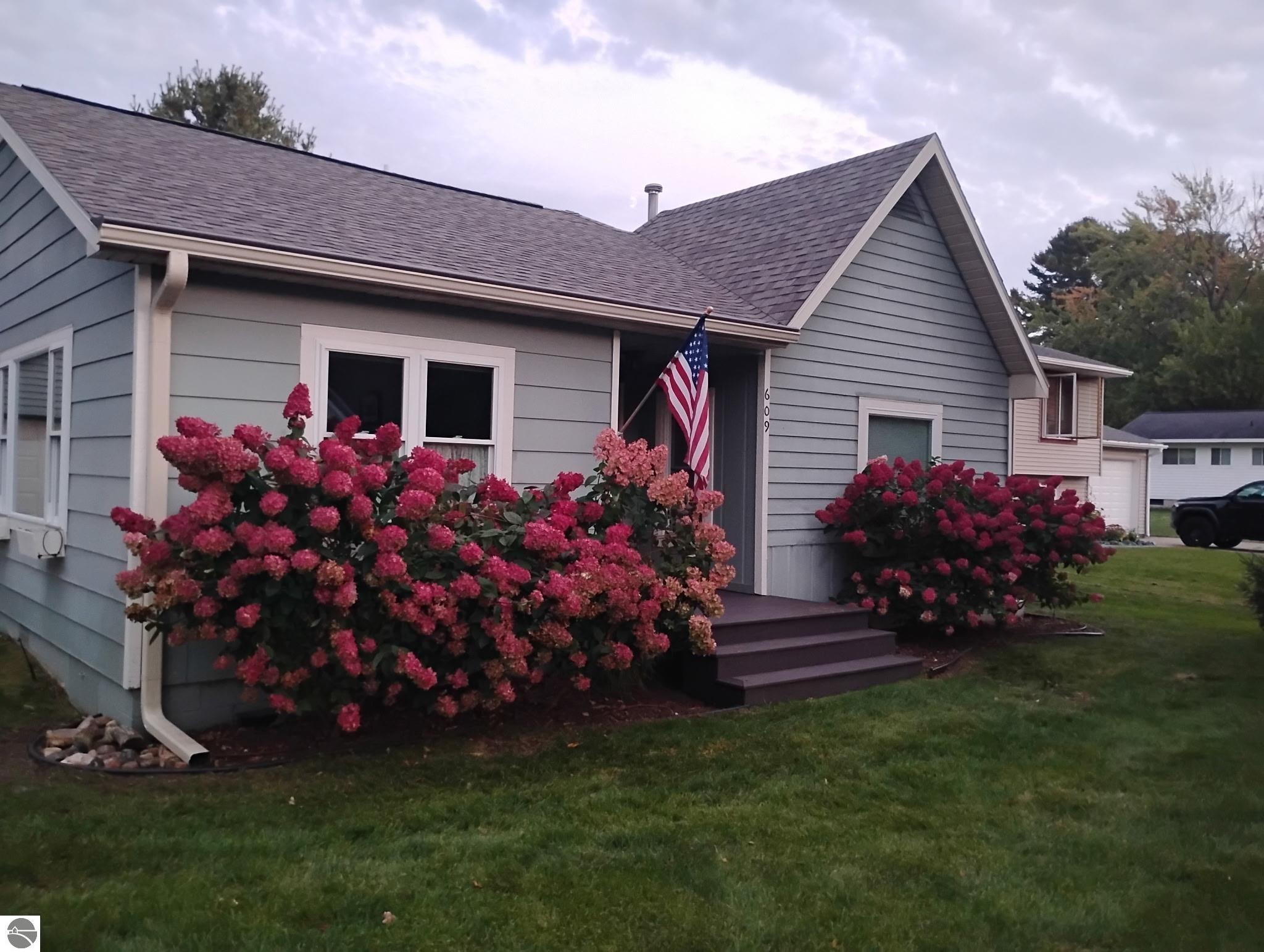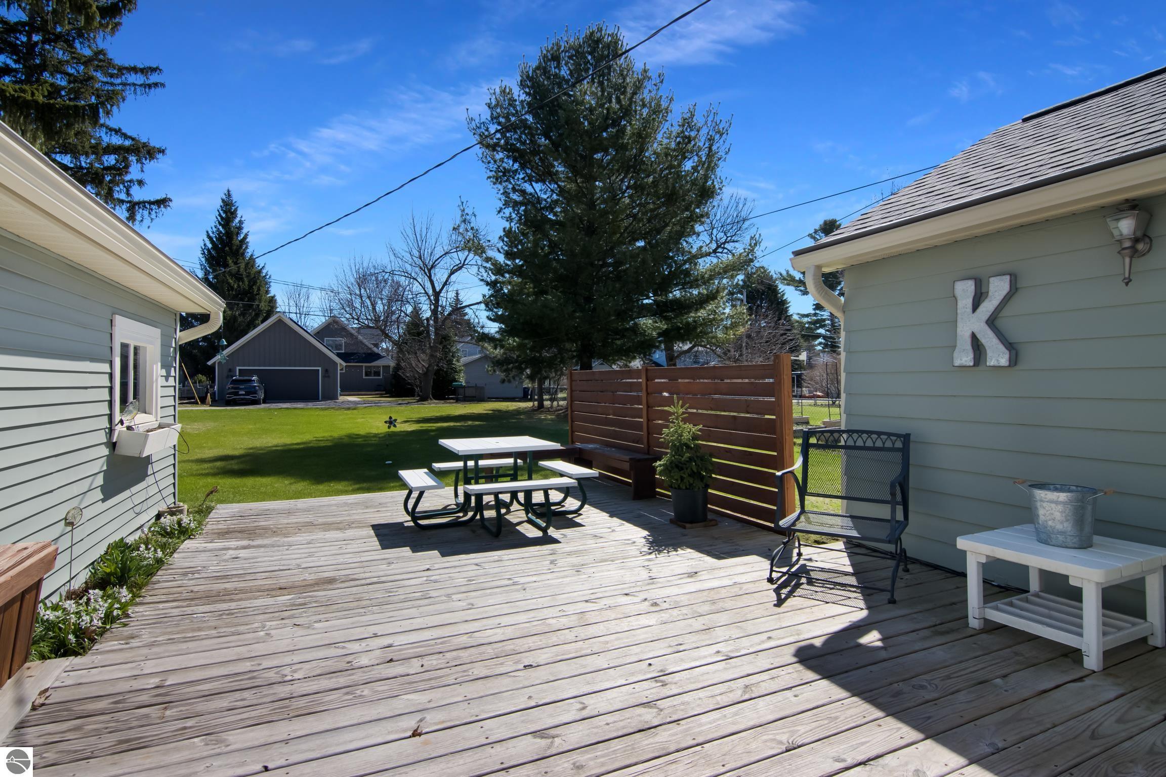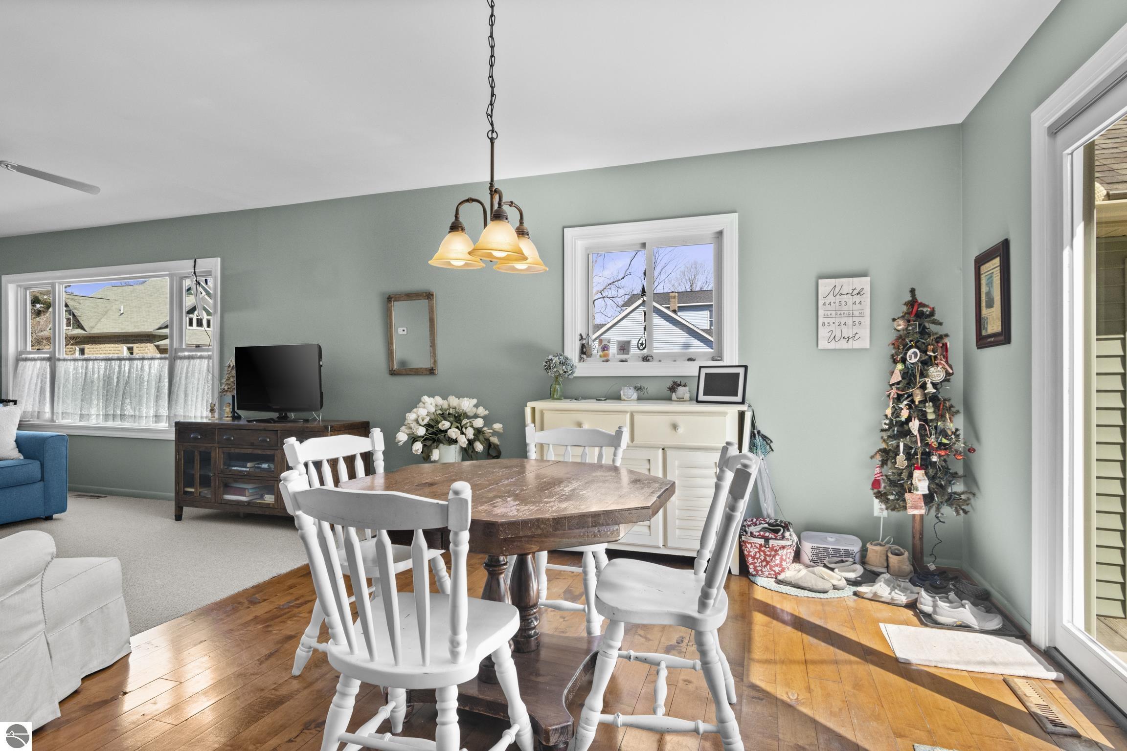 THE DESIRABLE WEST SIDE of Elk Rapids is waiting to welcome you home to this newly listed bungalow. As you begin your tour you will discover generously sized windows in the living spaces offer plenty of natural light. The chef in your family will appreciate the kitchen with lots of updated features; stainless appliances, bar seating; beautiful cabinetry; and more. The dining area with a slider which leads you to the deck for al fresco meals and outdoor entertaining. Spacious primary suite with cathedral ceilings, natural wood ceiling and walls, dual closets, the sitting area will be the perfect reading nook or home office. Additional amenities include a laundry room, central air conditioning, 2-car detached garage, landscaped setting, and more. The window boxes are waiting for you to fill with your favorite colorful blooms. Get ready to make cherished memories in the quaint Village of Elk Rapids, where you can walk or ride your bike to the beach, parks, marina, downtown shops, theater and restaurants. Small town living at its finest, where your neighbors will greet you with a smile and a hello while you stroll the tree lined streets.