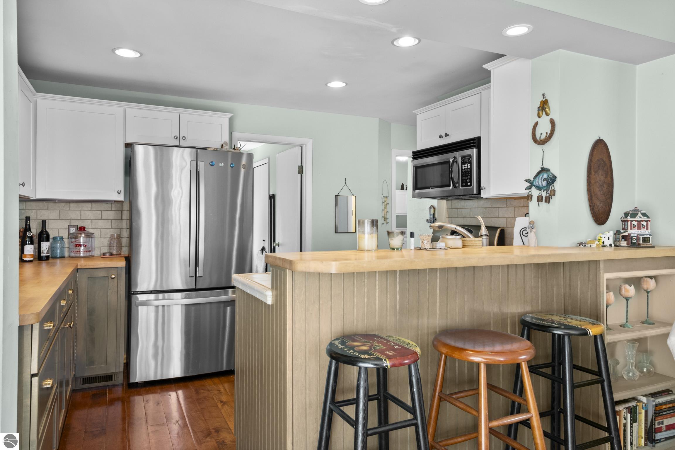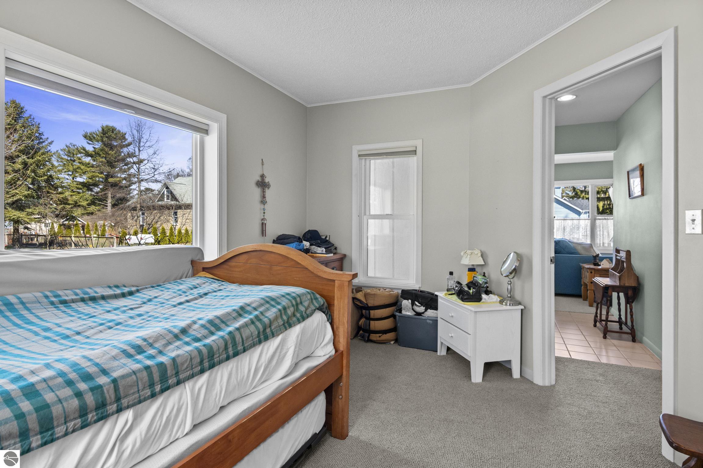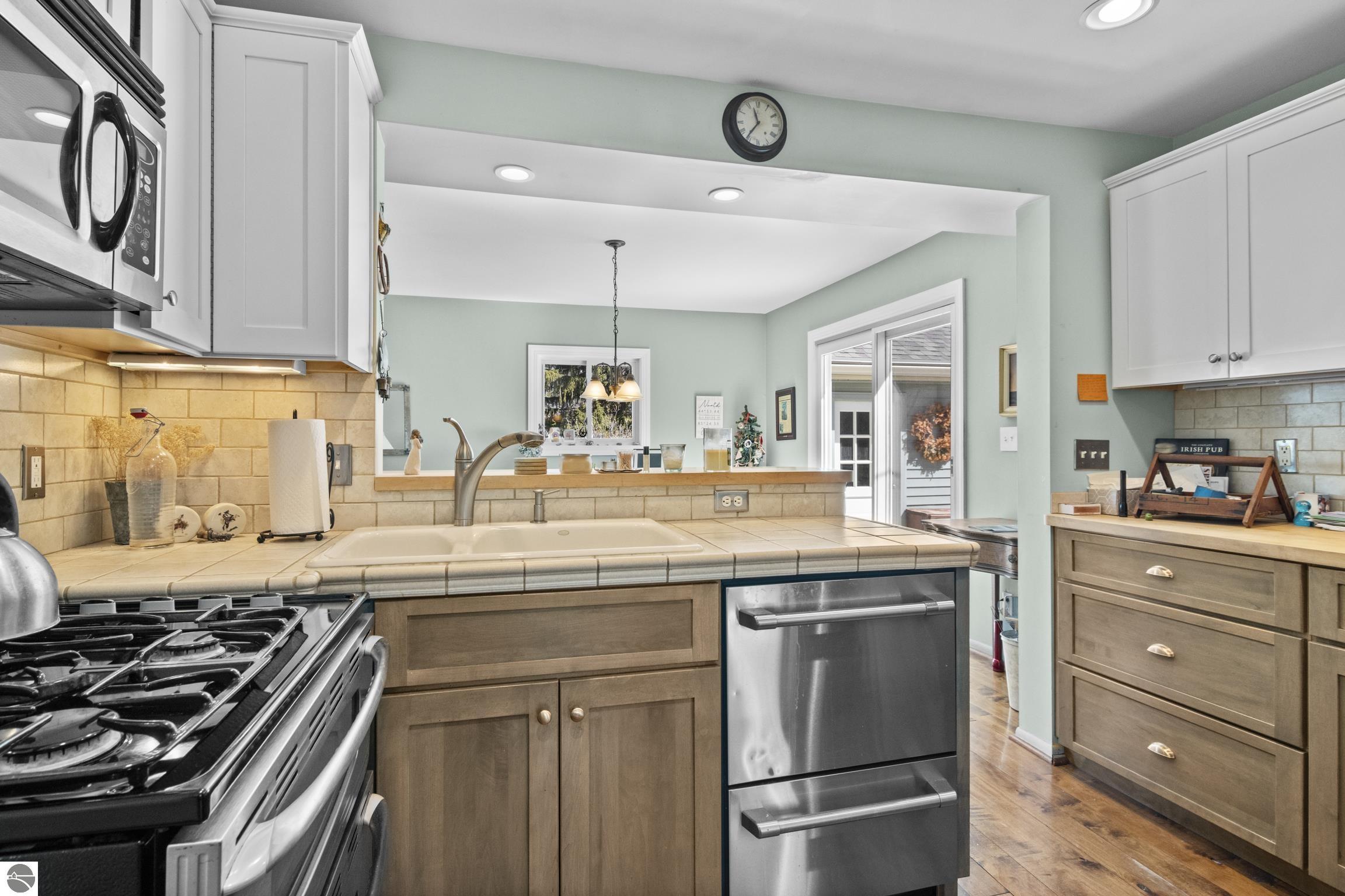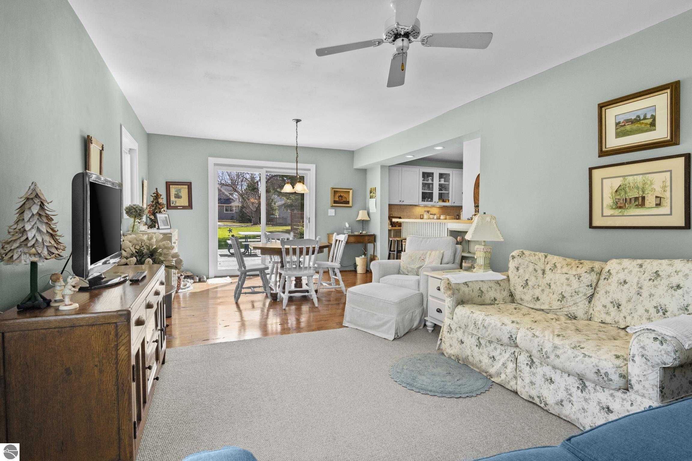 THE DESIRABLE WEST SIDE of Elk Rapids is waiting to welcome you home to this newly listed bungalow. As you begin your tour you will discover generously sized windows in the living spaces offer plenty of natural light. The chef in your family will appreciate the kitchen with lots of updated features; stainless appliances, bar seating; beautiful cabinetry; and more. The dining area with a slider which leads you to the deck for al fresco meals and outdoor entertaining. Spacious primary suite with cathedral ceilings, natural wood ceiling and walls, dual closets, the sitting area will be the perfect reading nook or home office. Additional amenities include a laundry room, central air conditioning, 2-car detached garage, landscaped setting, and more. The window boxes are waiting for you to fill with your favorite colorful blooms. Get ready to make cherished memories in the quaint Village of Elk Rapids, where you can walk or ride your bike to the beach, parks, marina, downtown shops, theater and restaurants. Small town living at its finest, where your neighbors will greet you with a smile and a hello while you stroll the tree lined streets.