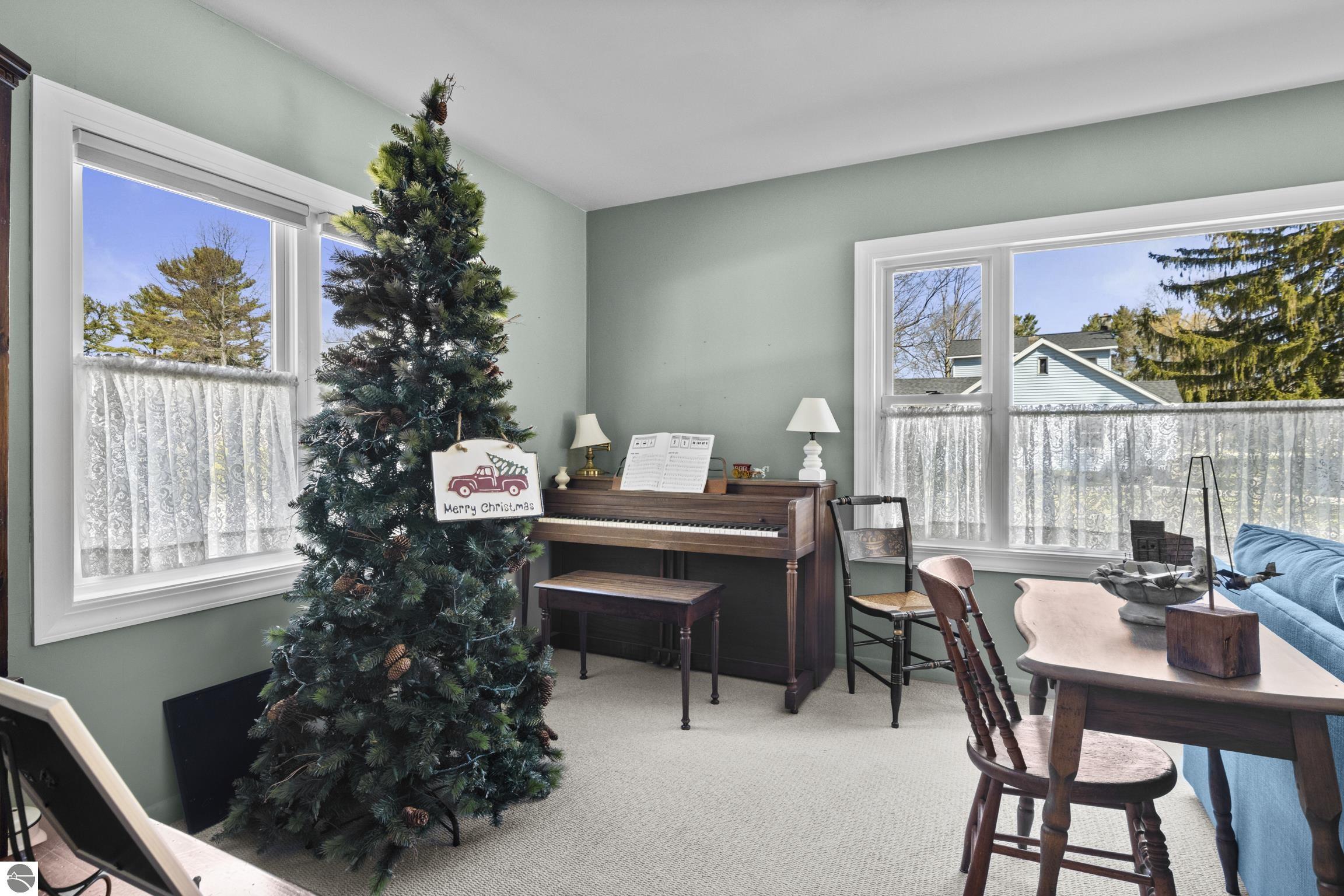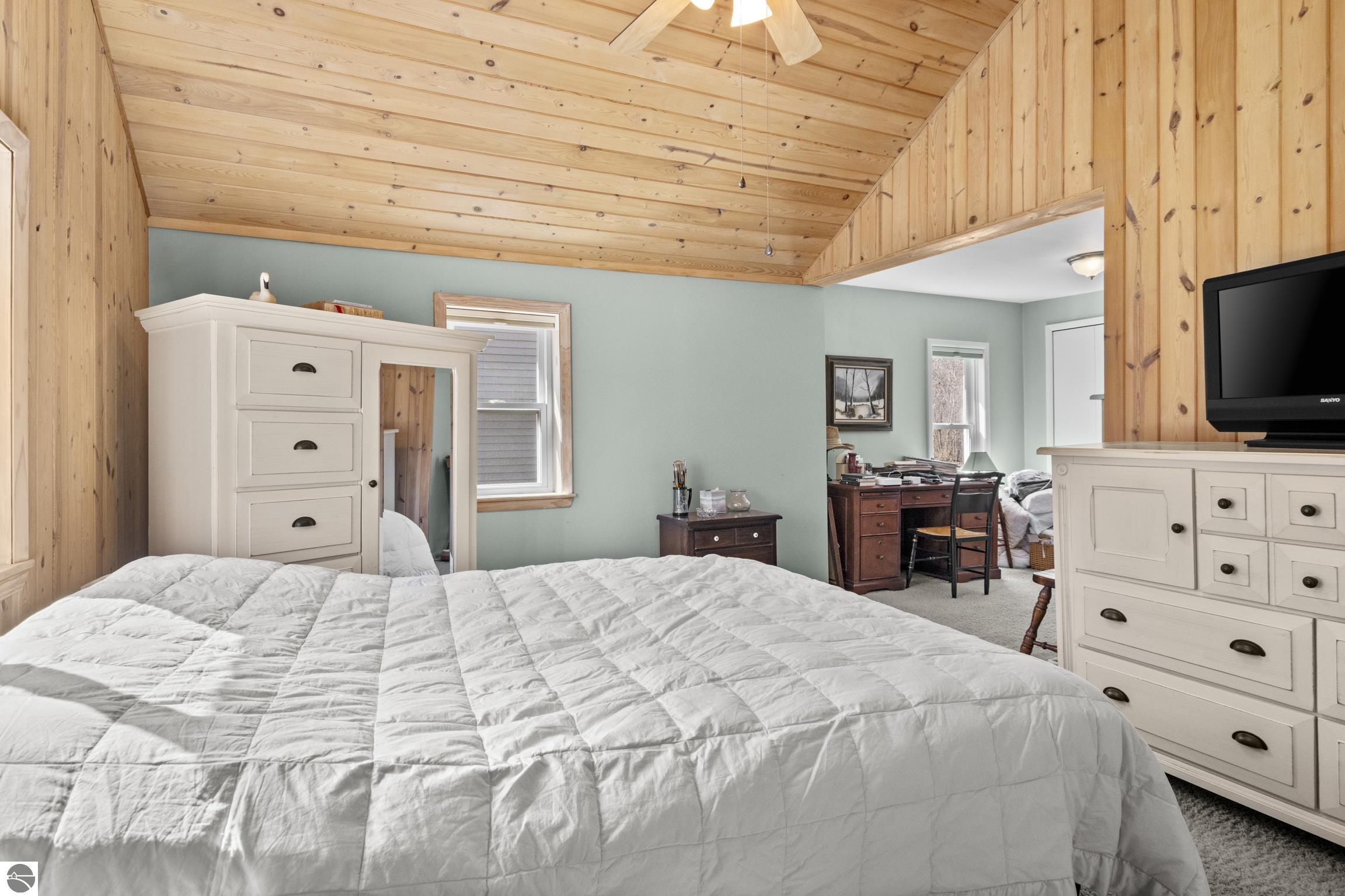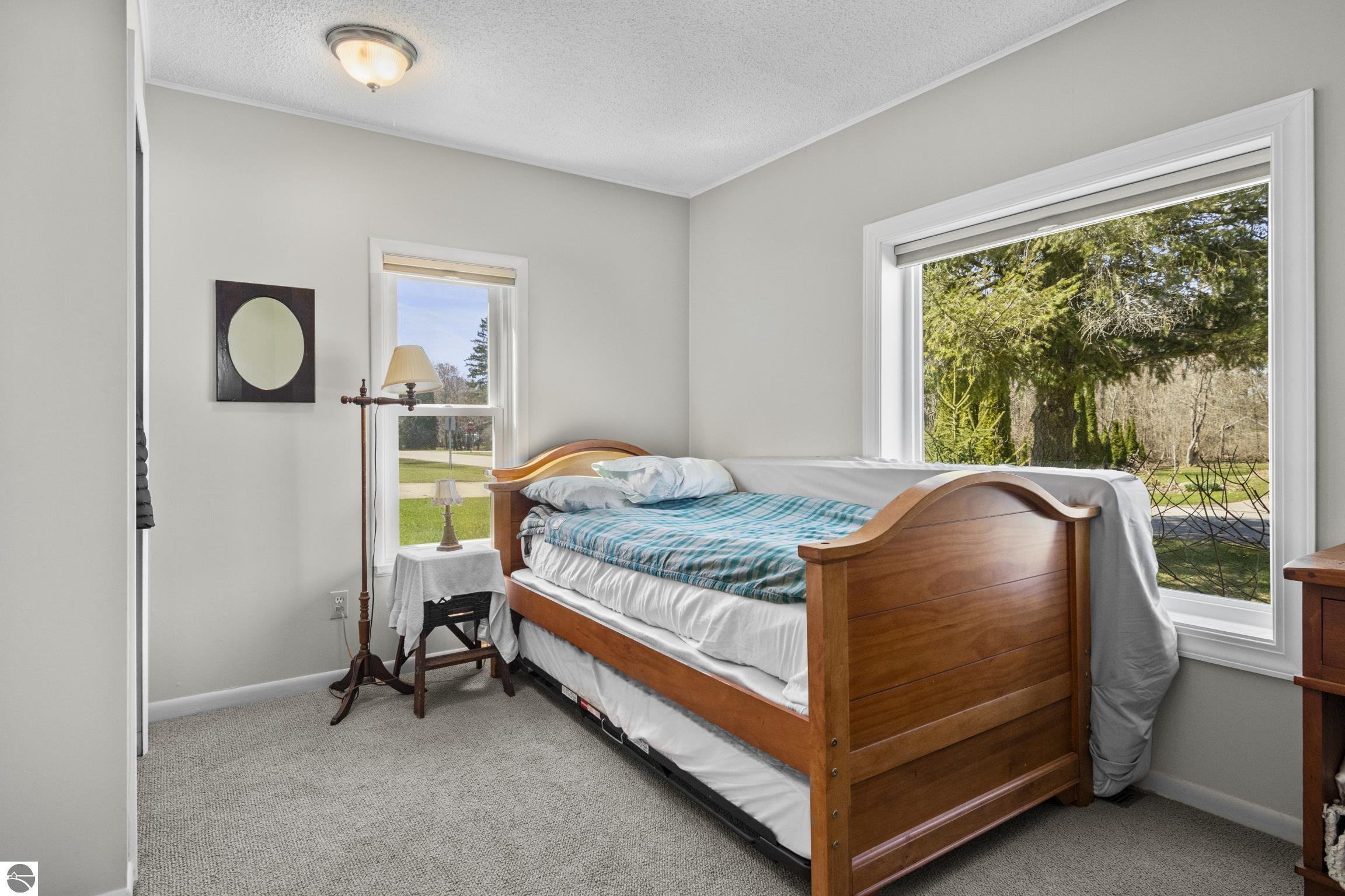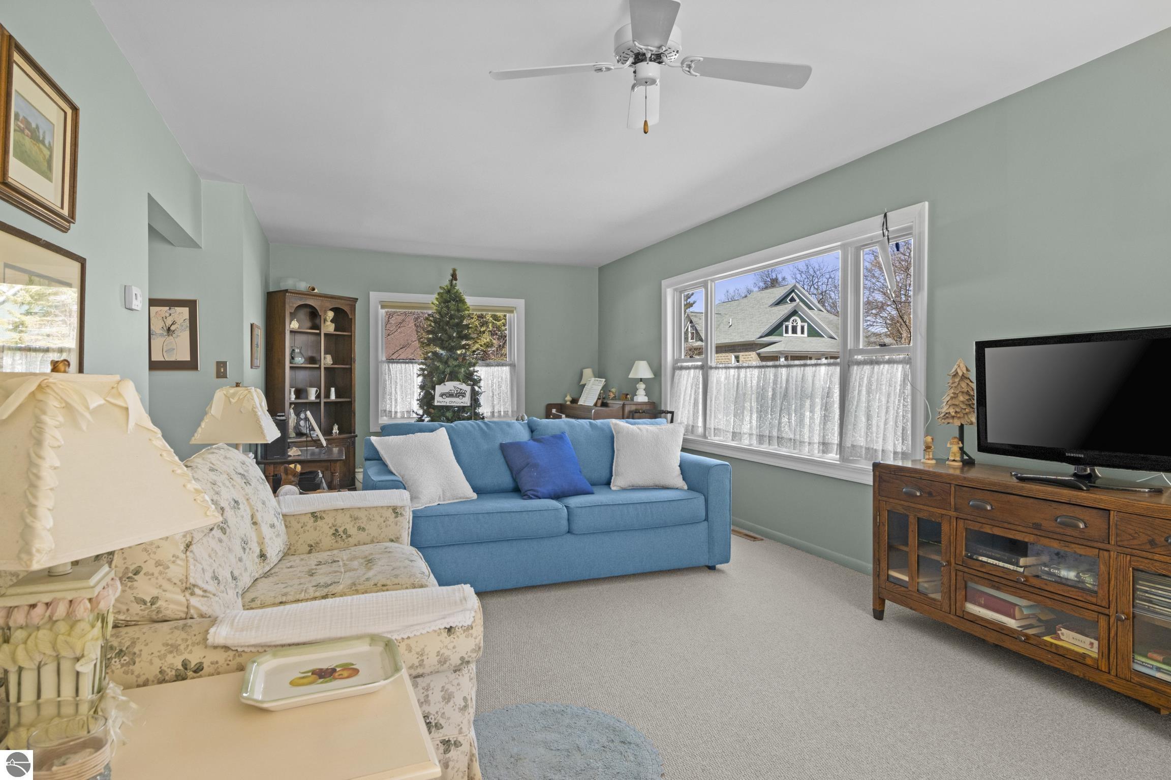 THE DESIRABLE WEST SIDE of Elk Rapids is waiting to welcome you home to this newly listed bungalow. As you begin your tour you will discover generously sized windows in the living spaces offer plenty of natural light. The chef in your family will appreciate the kitchen with lots of updated features; stainless appliances, bar seating; beautiful cabinetry; and more. The dining area with a slider which leads you to the deck for al fresco meals and outdoor entertaining. Spacious primary suite with cathedral ceilings, natural wood ceiling and walls, dual closets, the sitting area will be the perfect reading nook or home office. Additional amenities include a laundry room, central air conditioning, 2-car detached garage, landscaped setting, and more. The window boxes are waiting for you to fill with your favorite colorful blooms. Get ready to make cherished memories in the quaint Village of Elk Rapids, where you can walk or ride your bike to the beach, parks, marina, downtown shops, theater and restaurants. Small town living at its finest, where your neighbors will greet you with a smile and a hello while you stroll the tree lined streets.